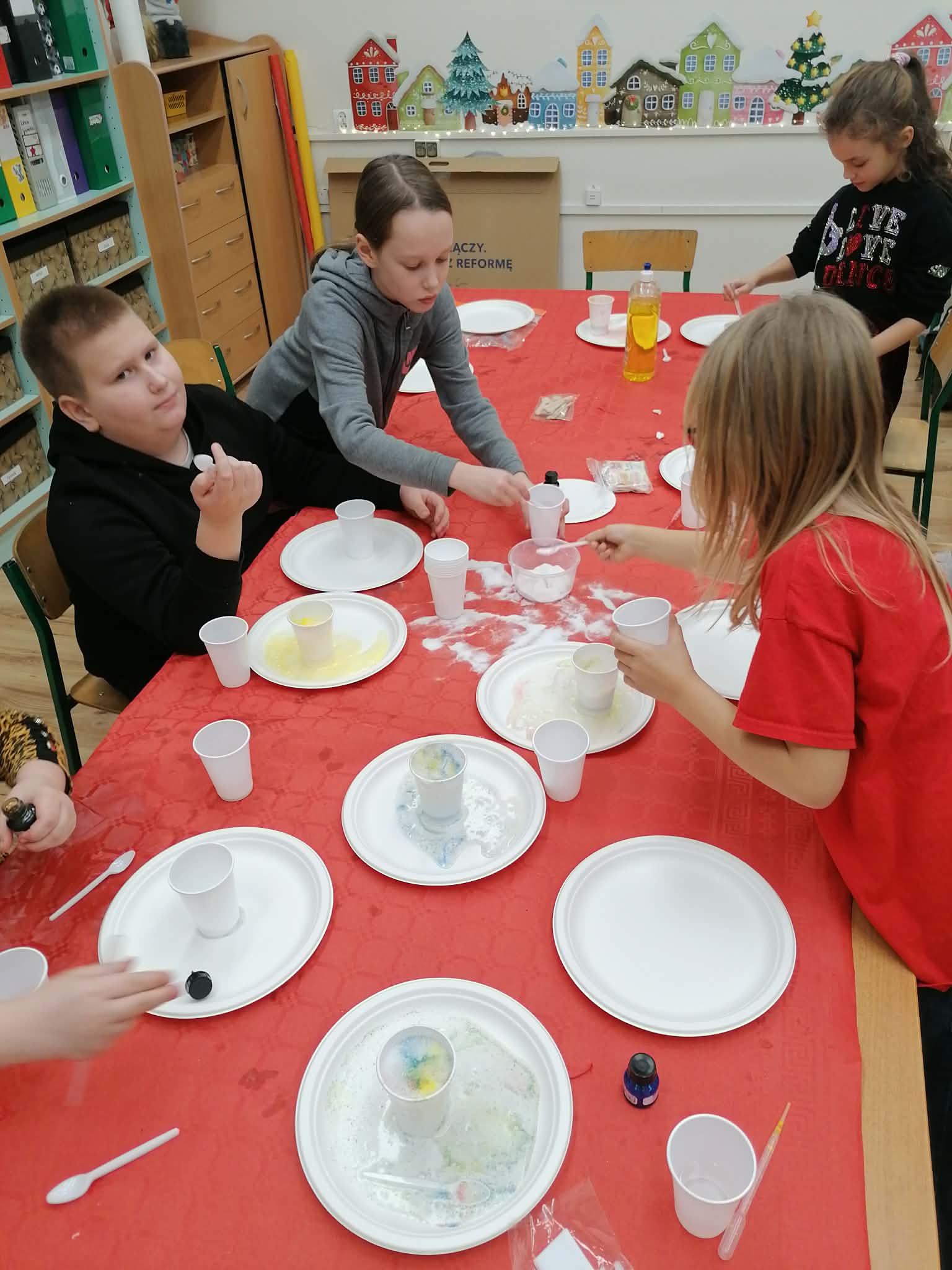 W poniedziałek 15 grudnia odbyły się zajęcia integracyjne Eksperymenty w ramach programu "Sieć wsparcia migrantów w powiecie malborskim". W trakcie zajęć uczniowie mieli możliwość wykonać ciekawe i barwne doświadczenia,które wzbudziły wiele emocji rozwijając kreatywność oraz współpracę w grupie. Wielką frajdę przyniosła sportowa rywalizacja w spodniach animacyjnych.
