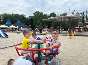 Klasy 1a i 1c spędziły wyjątkowy dzień na wycieczce w Gdyni. Pierwszym punktem programu była sala zabaw „Amazonia”, gdzie na dzieci czekało mnóstwo atrakcji – zjeżdżalnie, zjazdy na pontonach, baseny z kulkami, trampoliny i karuzele. Radości i śmiechu było co niemiara! Następnie udaliśmy się na Skwer Kościuszki, a potem na plażę, gdzie dzieci mogły pobawić się w piasku i nacieszyć widokiem morza. Ostatnim punktem wycieczki był plac zabaw – idealne miejsce na chwilę relaksu i wspólne spędzenie czasu na świeżym powietrzu. To był dzień pełen radości, nowych wrażeń i letniej atmosfery!