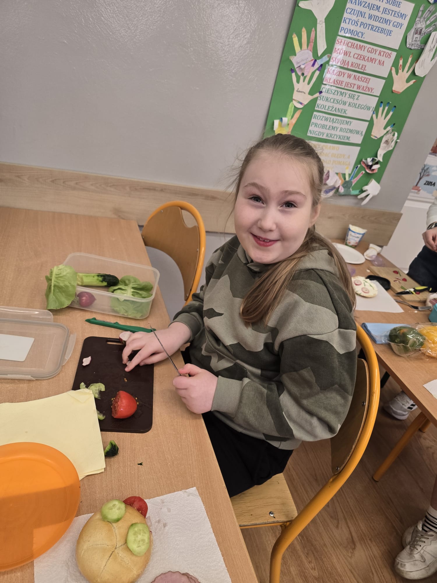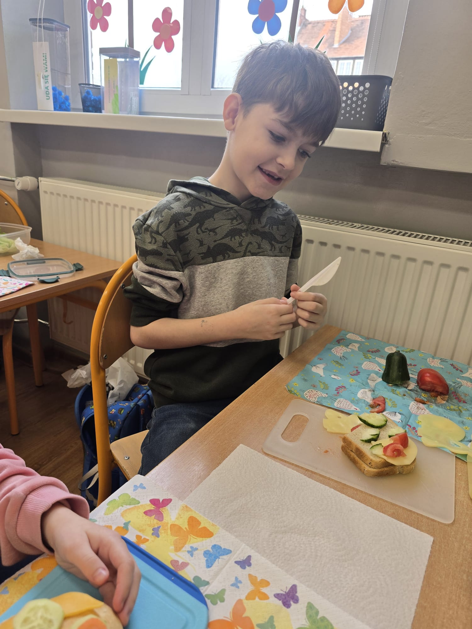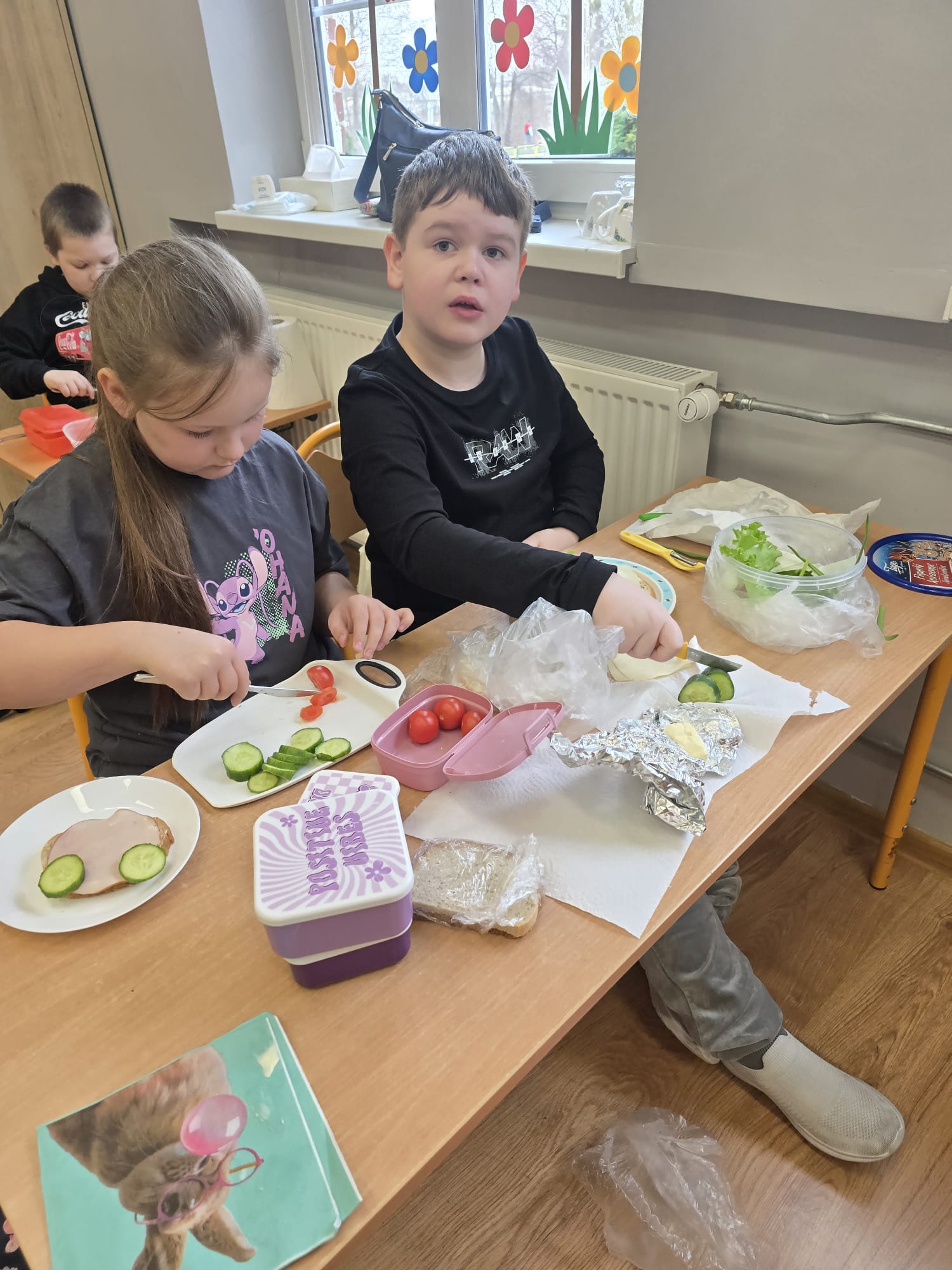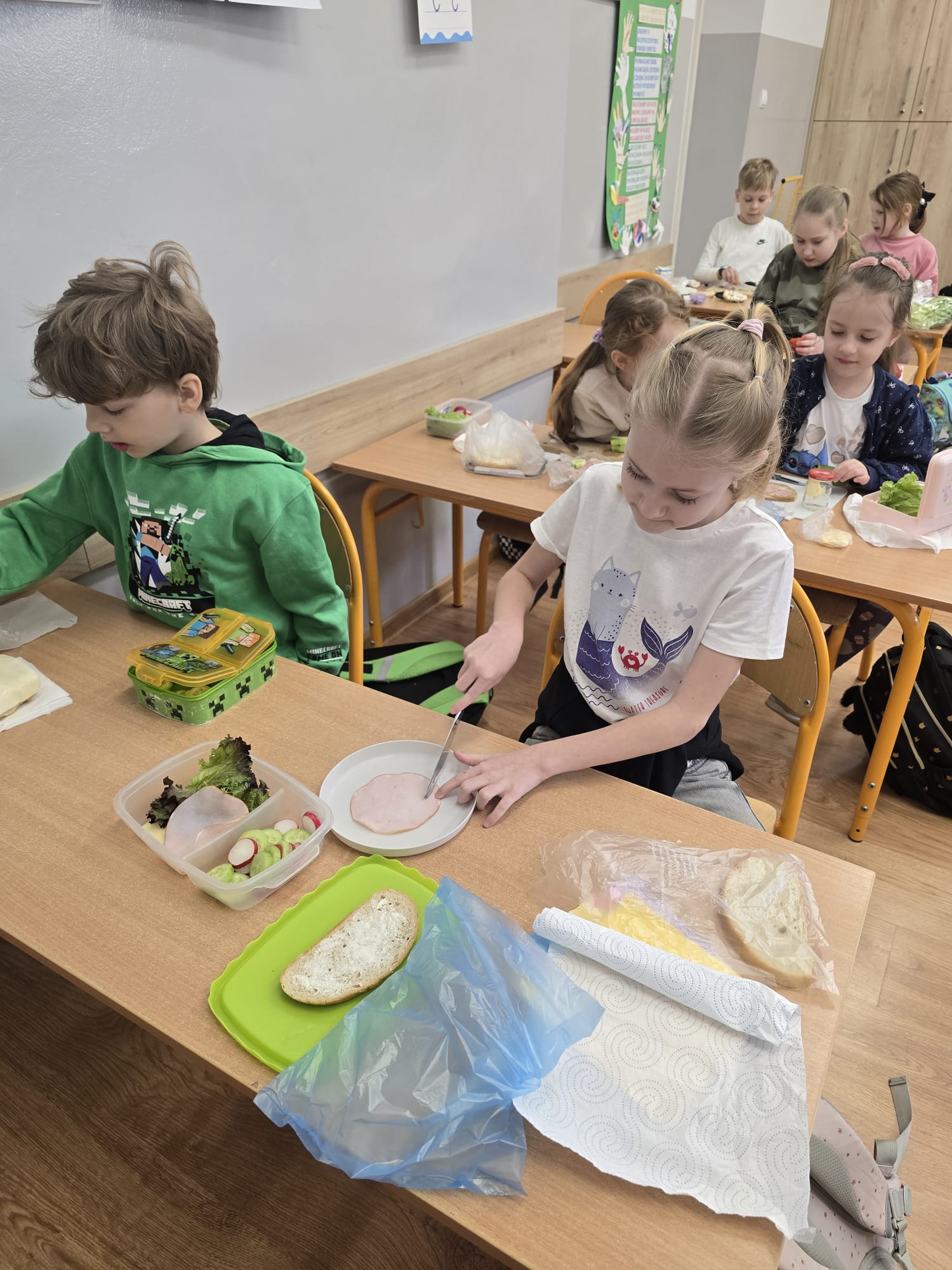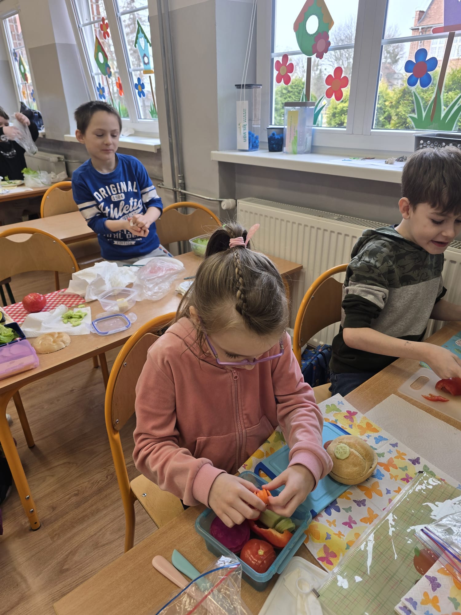 Wraz z nadejściem wiosny uczniowie z klasy I b pozwolili sobie na to aby wiosna zawitała również w ich posiłkach. Dzieci przygotowały II śniadanie według własnego pomysłu z ulubionych i zdrowych produktów. Poznały również zasady związane z piramidą zdrowego żywienia.