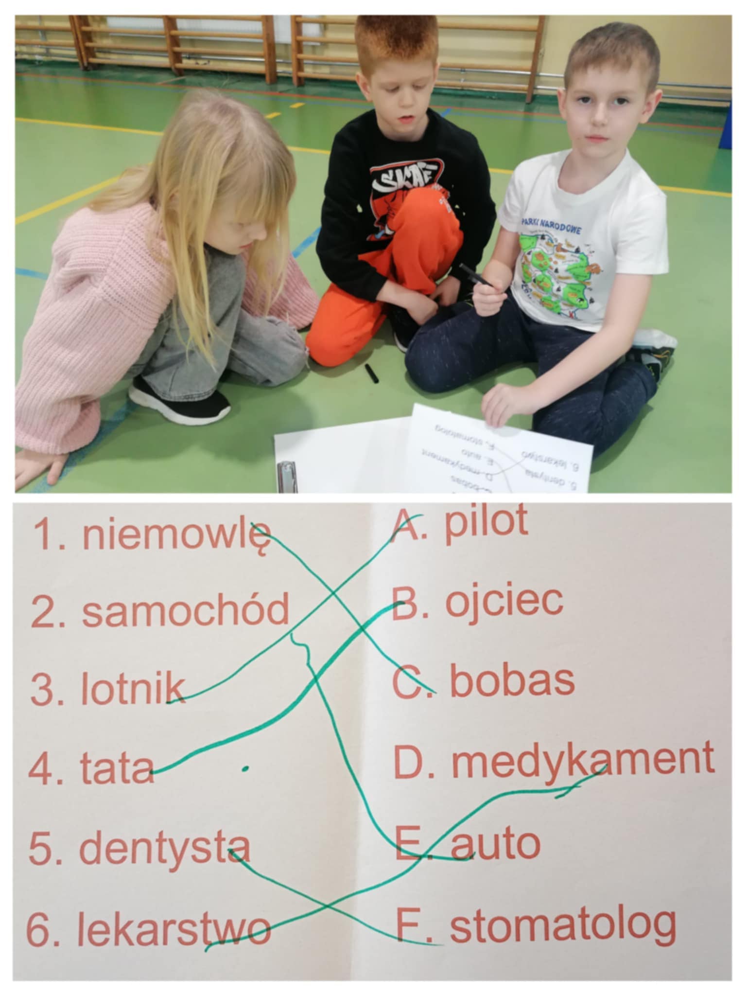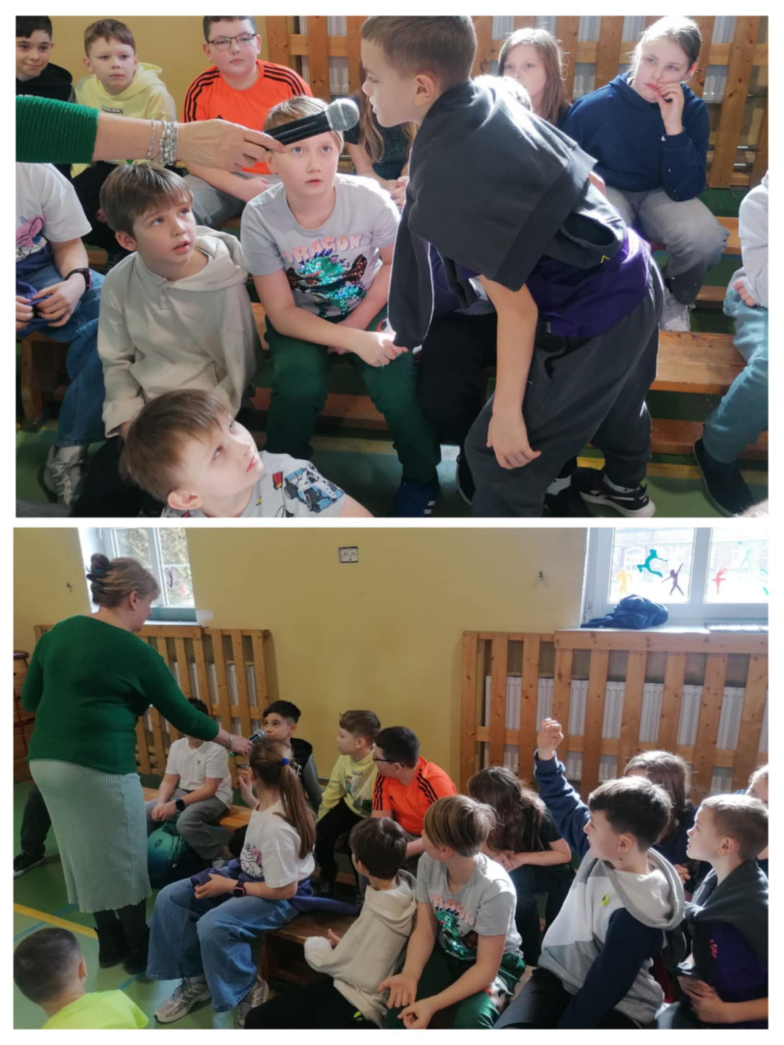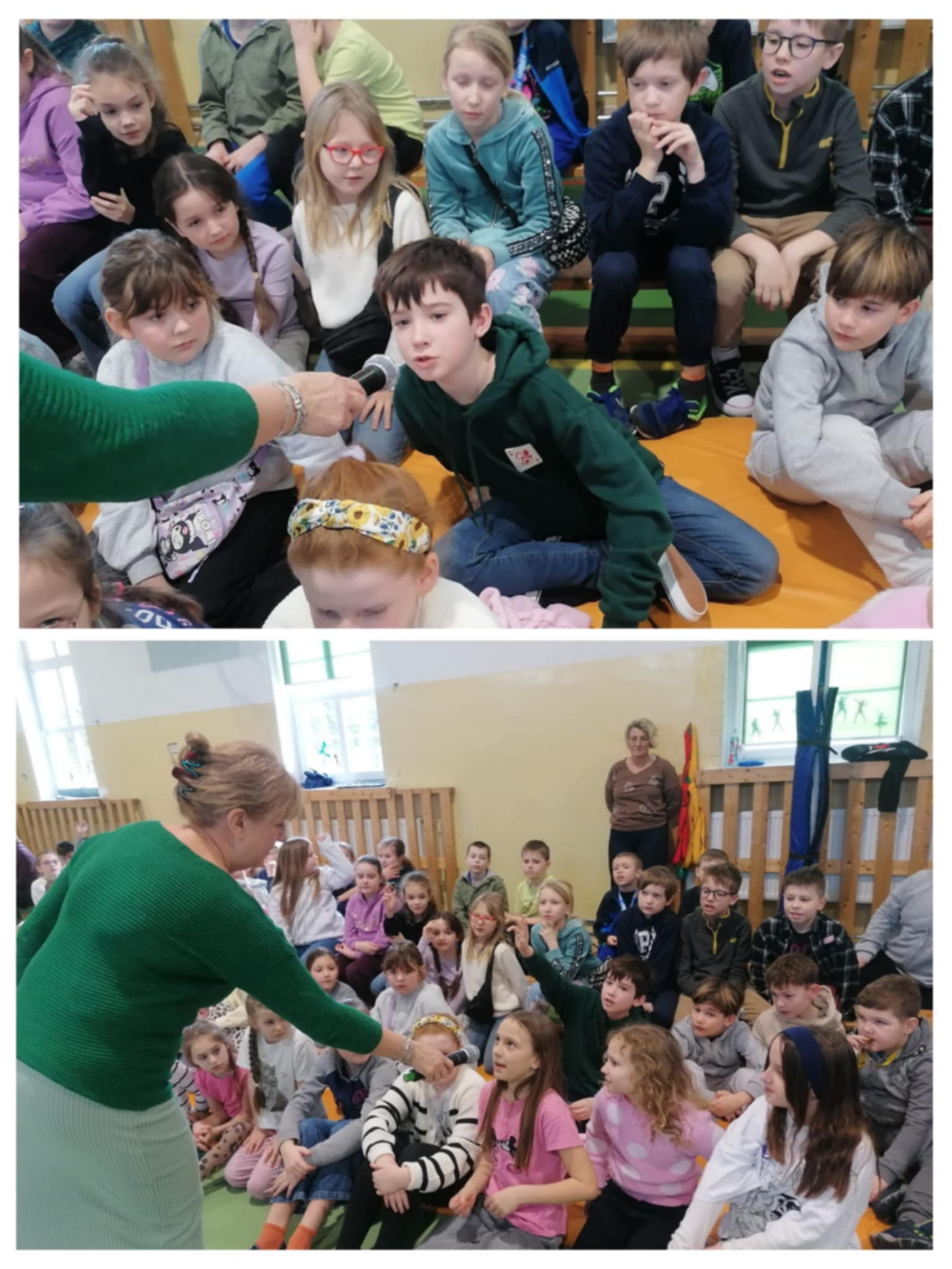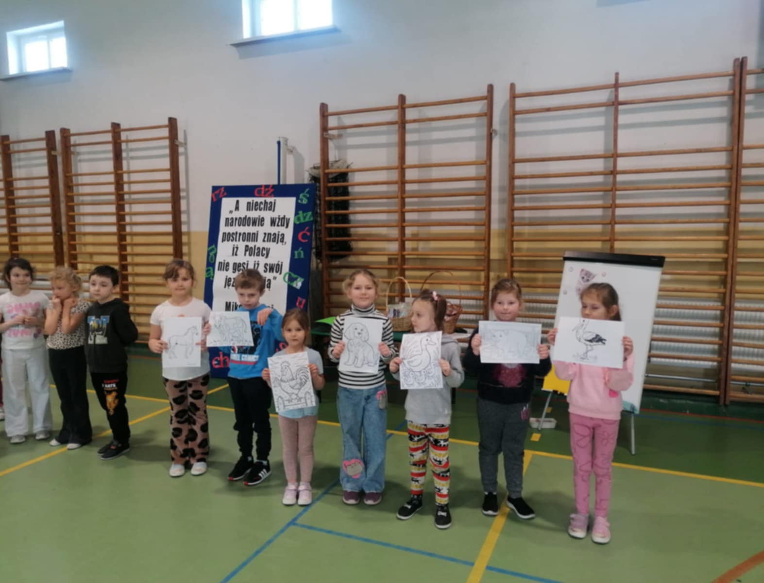 W piątek 20 lutego w grupie wiekowej 0-3 odbyły się szkolne zabawy językiem polskim z okazji "Międzynarodowego Dnia Języka Ojczystego". Uroczystość poprowadziły p.Magdalena Karch oraz p.Emilia Łęczkowska. Tego dnia w sali gimnastycznej zrobiło się gwarno i wesoło. Dzieci z oddziału przedszkolnego miały do wykonania dwa zadania - pierwsze zadanie pn."Literkowe figury", które polegało na ułożeniu na podłodze kształt wylosowanych liter "L", "T", "O" przy użyciu własnych ciał. Druga zabawa to zabawa w kalambury dźwiękowe, w której dzieci losowały kartki z obrazkiem zwierząt i musiały przekonać grupę, kim są, używając wyłącznie dźwięków jakie wydają zwierzęta. Wszystkie klasy w przerwach między poszczególnymi klasami recytowały hasło przewodnie spotkania, które brzmiało "Język polski nasz ojczysty każdy dźwięk jest barwny, czysty, szeleścimy, rymujemy i polszczyznę miłujemy". Klasy pierwsze musiały zmierzyć się z zabawą pt. "Sałatka literowa"- z rozsypanych liter układali jak najwięcej nazw zwierząt w określonym czasie. Kolejne zadanie jakie mieli do wykonania pierwszoklasiści to był tak zwany "Łańcuch", czyli tworzenie łańcucha wyrazów poprzez dopisywanie wyrazu zaczynającego się na ostatnią literę poprzedniego. Kolejna konkurencja polegała na kończeniu przez uczniów danej klasy wersu ze znanego wierszyka. np. "Nad rzeczką opodal krzaczka…", "Na tapczanie siedzi leń...". Klasy drugie musiały zmierzyć się z zabawą "To samo, ale inaczej", czyli połączeniu w pary słowa o tym samym znaczeniu. np. ubranie-strój, lotnik-pilot, bobas-niemowlę czy dentysta-stomatolog. Druga zabawa dla drugoklasistów nosiła nazwę "Budowniczy" i polegała na utworzeniu jak największej liczby wyrazów z wylosowanego przez klasę wyrazu, "kolorowanka", "latarka", "lokomotywa", "telewizor" lub "parasolka". Klasy trzecie miały trudniejsze zadania bo z zabawie "Lekarz przysłów" prowadząca czytała dane przysłowie z błędem, a uczniowie mieli za zadanie poprawić je np. "Gdyby kózka nie skakała, toby płakała", "Gdzie dwóch się bije, tam trzeci... ma siniaka", "Kto pod kim dołki kopie, ten jest górnikiem”. Kolejna konkurencja dla trzecioklasistów nosiła nazwę "Mistrz łamańców językowych", czyli konkurs recytatorski z humorem, w której to dzieci losowały kartki i musiały bezbłędnie powiedzieć dane zdanie, np. "W Szczebrzeszynie chrząszcz brzmi w trzcinie", "Stół z powyłamywanymi nogami", "Król Karol kupił królowej Karolinie korale koloru koralowego", "W czasie suszy szosa sucha", "Rewolwerowiec wyjął z kabury rewolwer". "Wymienianka" była ostatnią konkurencją z pośród wszystkich zabaw, która polegała na dokończeniu czytanego przez prowadzącego zdania wyrazem, który będzie zawierał odpowiednią trudność ortograficzną – „ó” np. "Wielka broda – mała...", "Dojna krowa – boża...". Na koniec każda klasa otrzymała dyplom, ołówki dla każdego ucznia oraz słodkie upominki ufundowane przez Radę Rodziców naszej szkoły. Podziękowania dla p. Małgorzaty Gutowskiej-Janiuk za wykonanie dekoracji, p. Annie Osipiak za wykonanie zdjęć oraz p.Maciejowi Klocowi za odpowiednie nagłośnienie podczas imprezy. Tekst: Emilia Łęczkowska, Magdalena Karch.