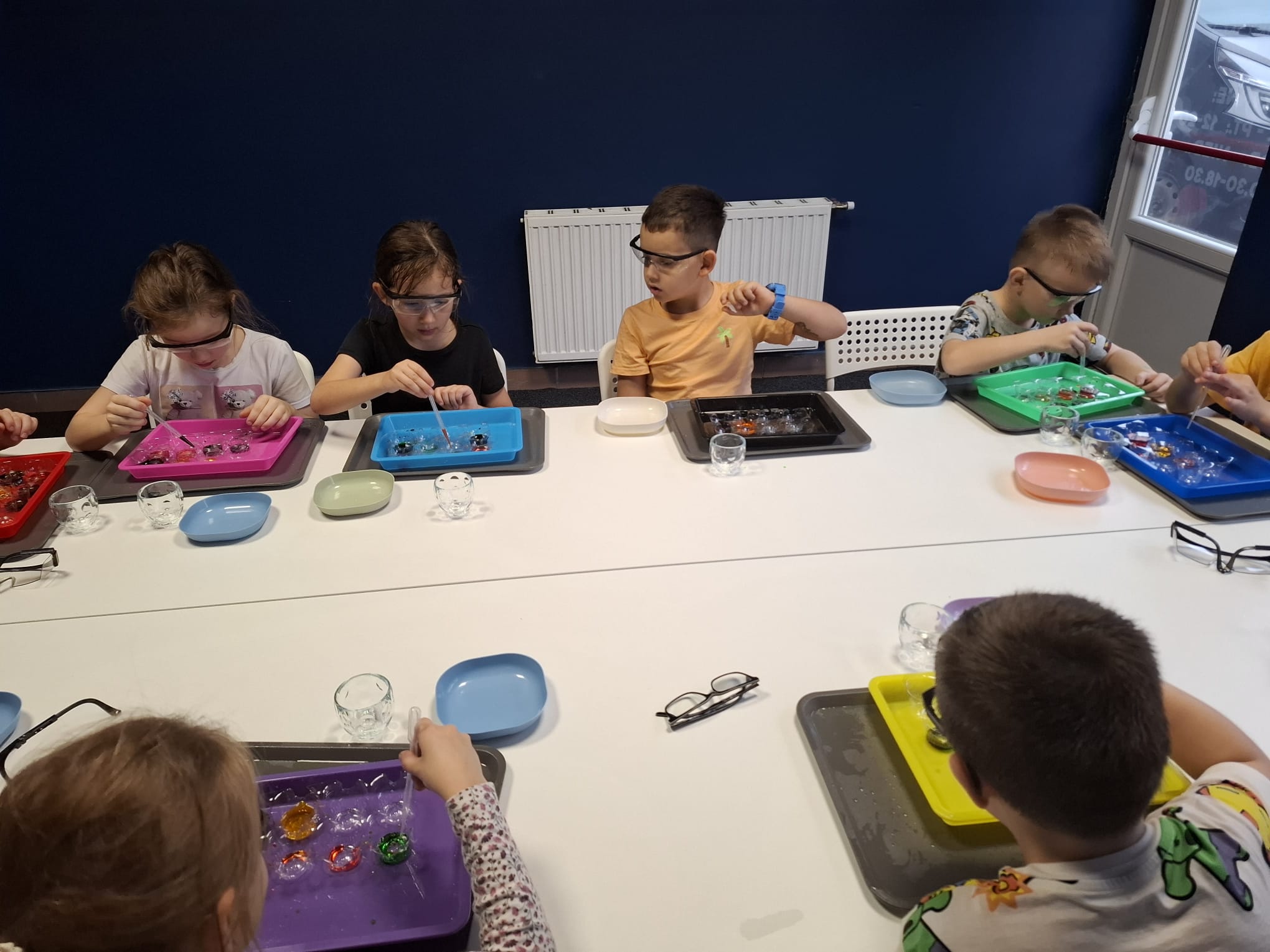 Klasa 1a wybrała się na wyjątkowe warsztaty Młodych Astronautów do Kosmicznej Frajdy. Połączyły one naukę, zabawę i wspólne odkrywanie świata eksperymentów. Pod czujnym okiem pań prowadzących, uczniowie wykonywali efektowne doświadczenia, obserwowali fascynujące reakcje i przekonali się, że chemia wcale nie musi być trudna — może być naprawdę ekscytująca!
