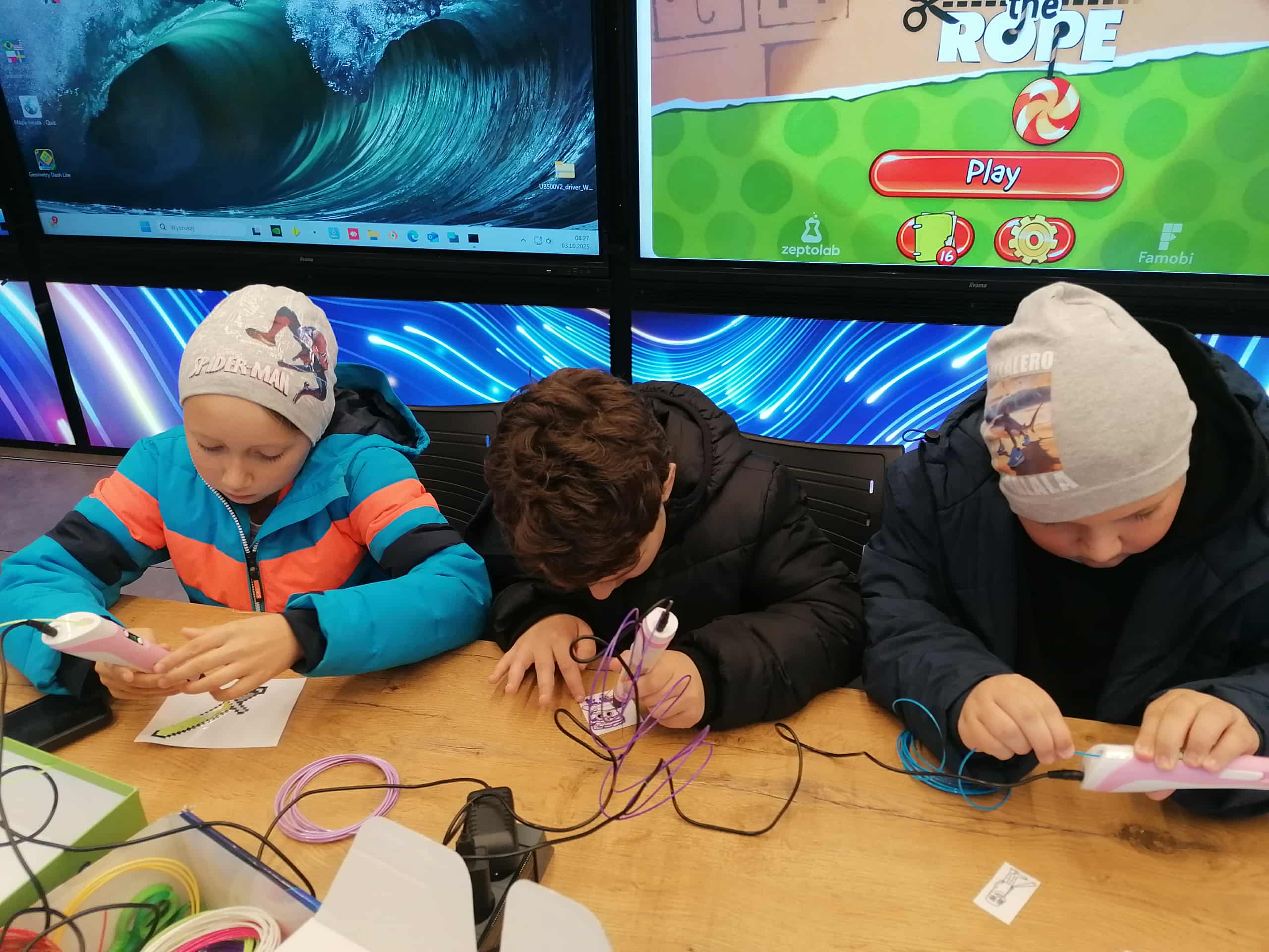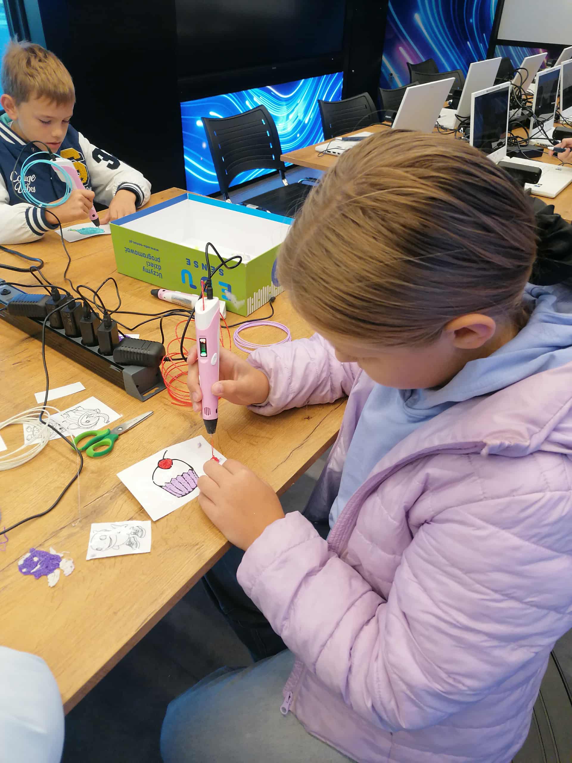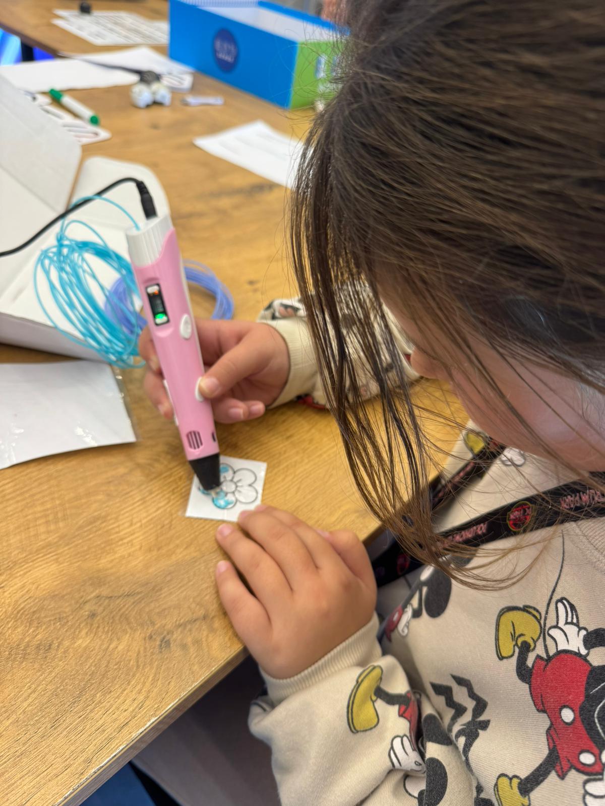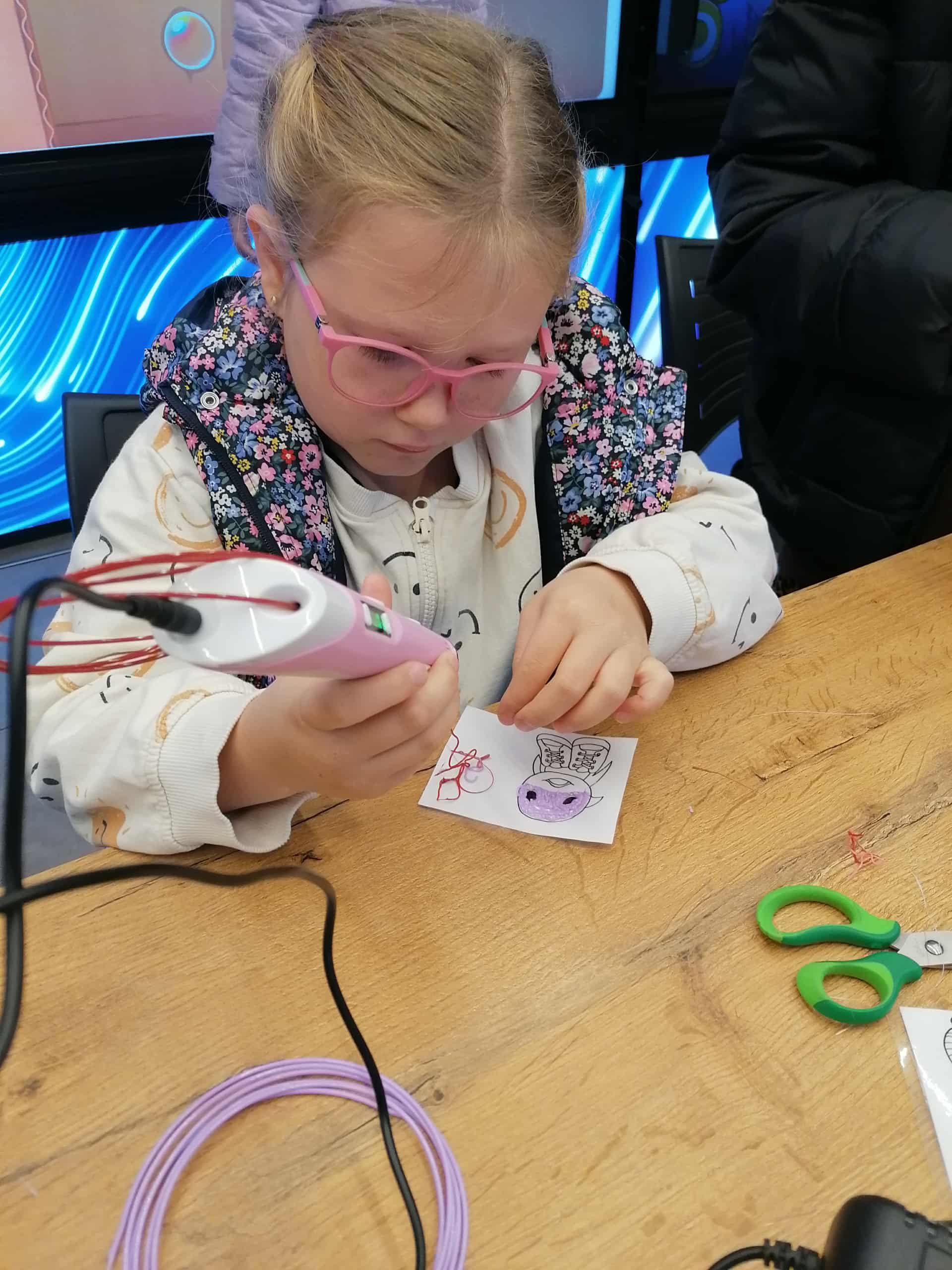 Podczas warsztatów dzieci miały okazję pracować z nowoczesnymi technologiami, takimi jak długopisy 3D, ekrany multimedialne oraz komputery z interaktywnymi długopisami. Zajęcia nie tylko rozwijały kreatywność i zdolności manualne uczniów, ale także inspirowały ich do poznawania świata nauki w nowoczesny i angażujący sposób.