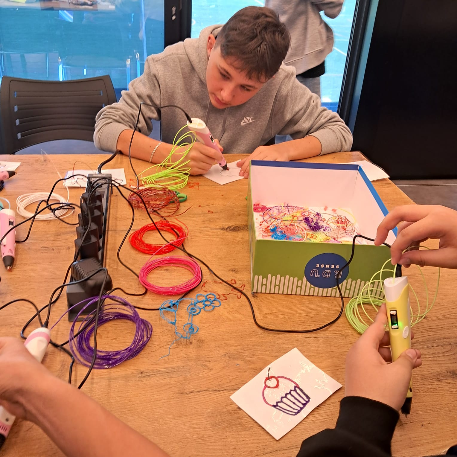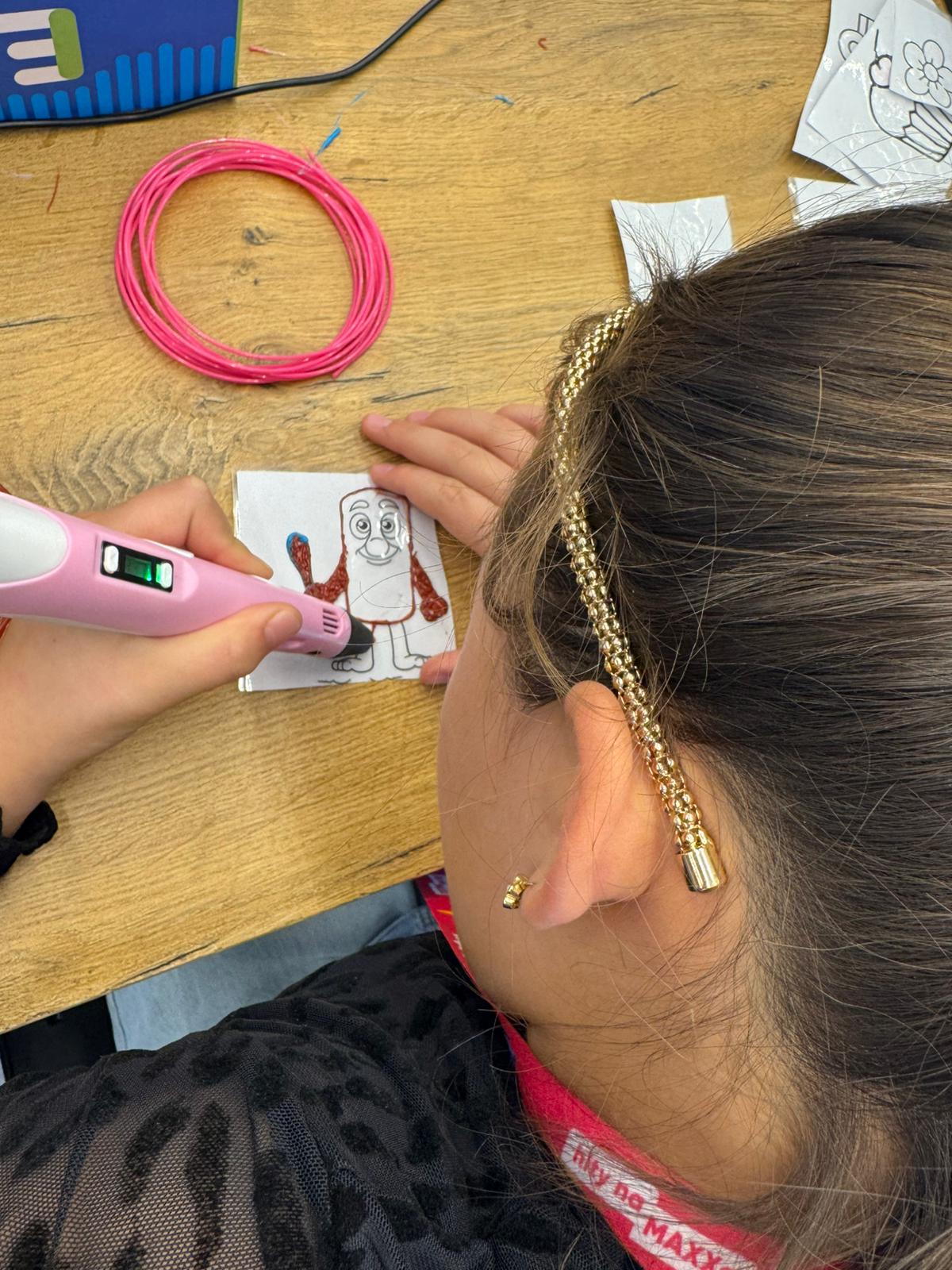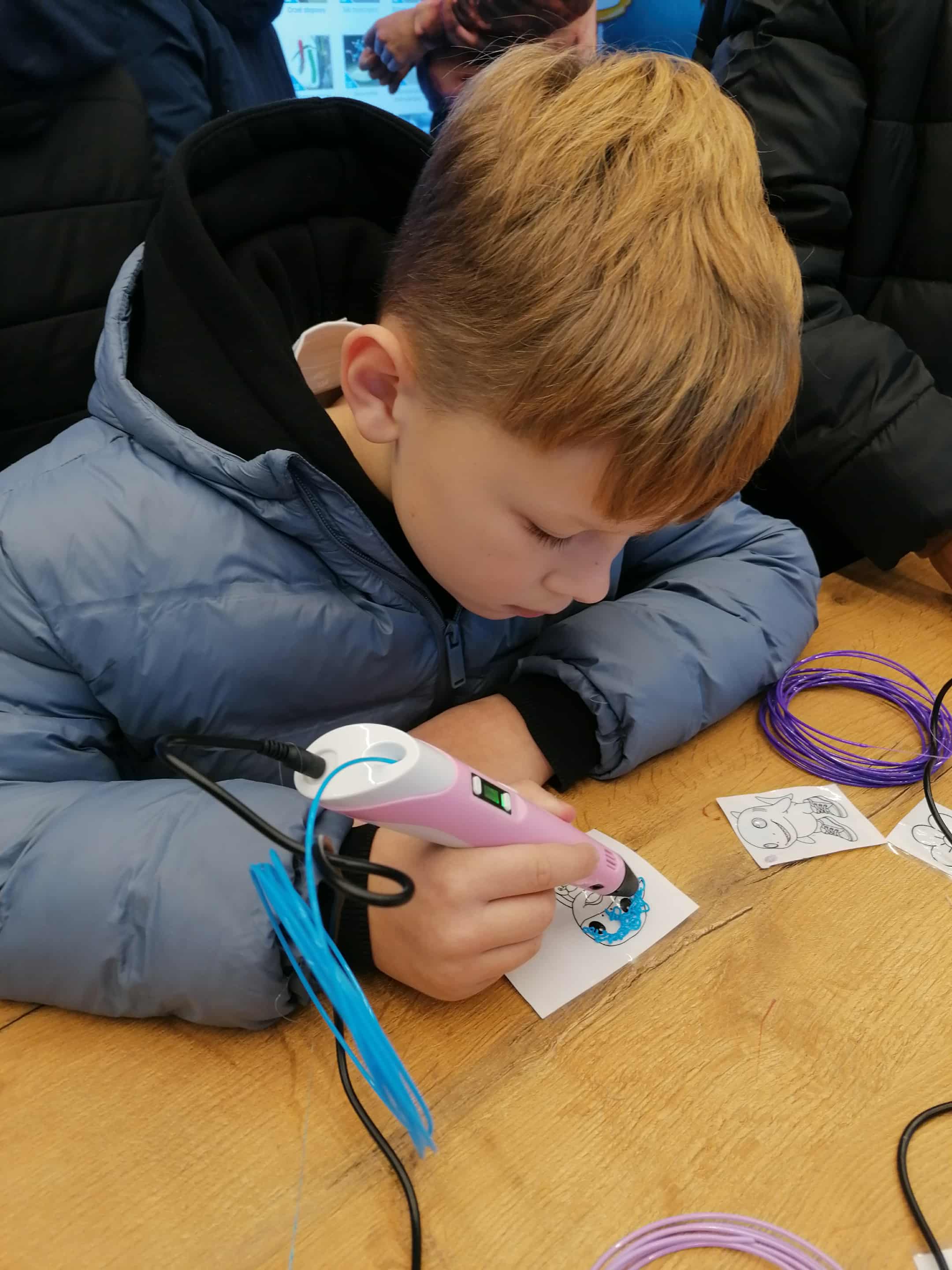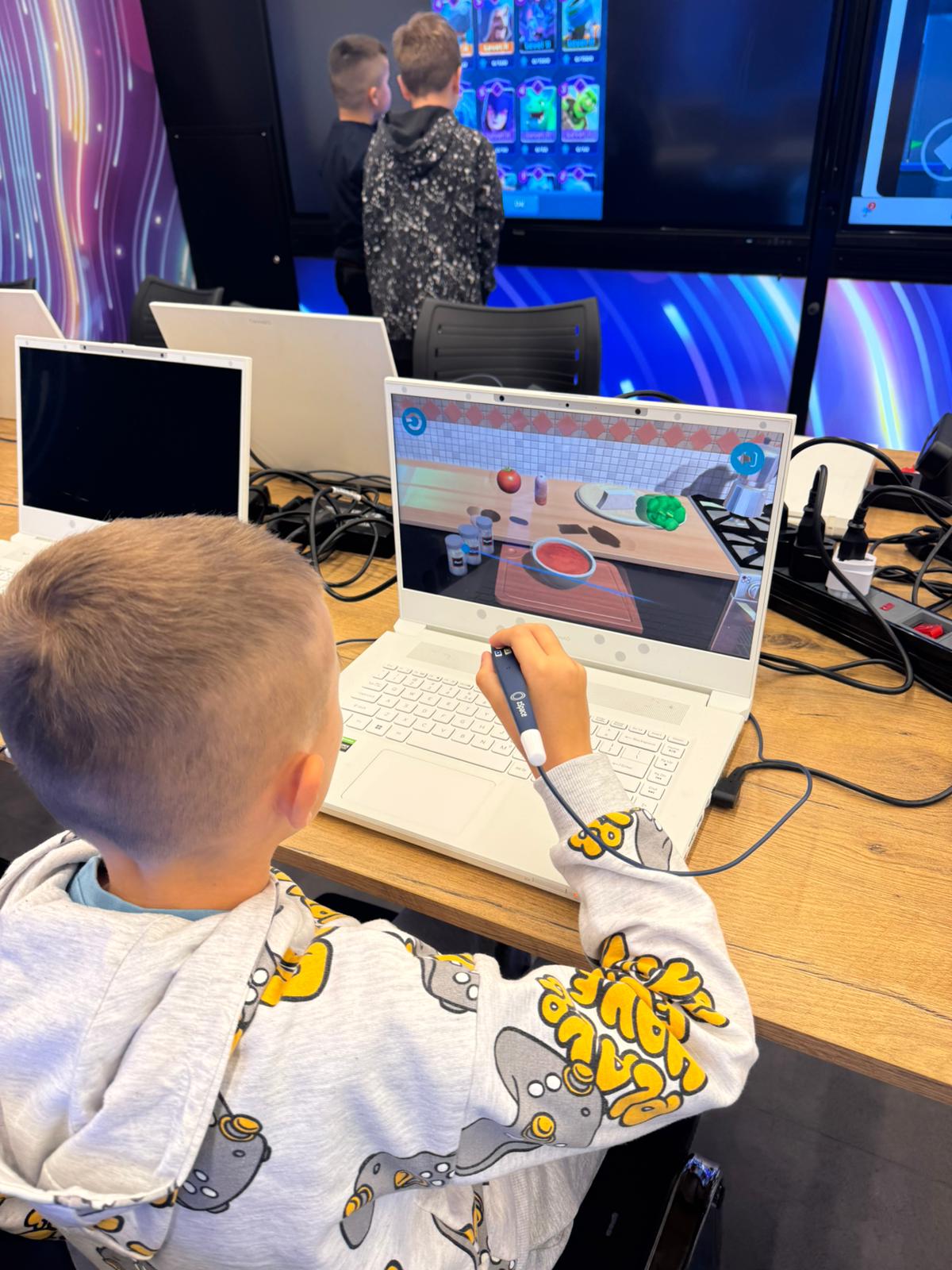 Podczas warsztatów dzieci miały okazję pracować z nowoczesnymi technologiami, takimi jak długopisy 3D, ekrany multimedialne oraz komputery z interaktywnymi długopisami. Zajęcia nie tylko rozwijały kreatywność i zdolności manualne uczniów, ale także inspirowały ich do poznawania świata nauki w nowoczesny i angażujący sposób.