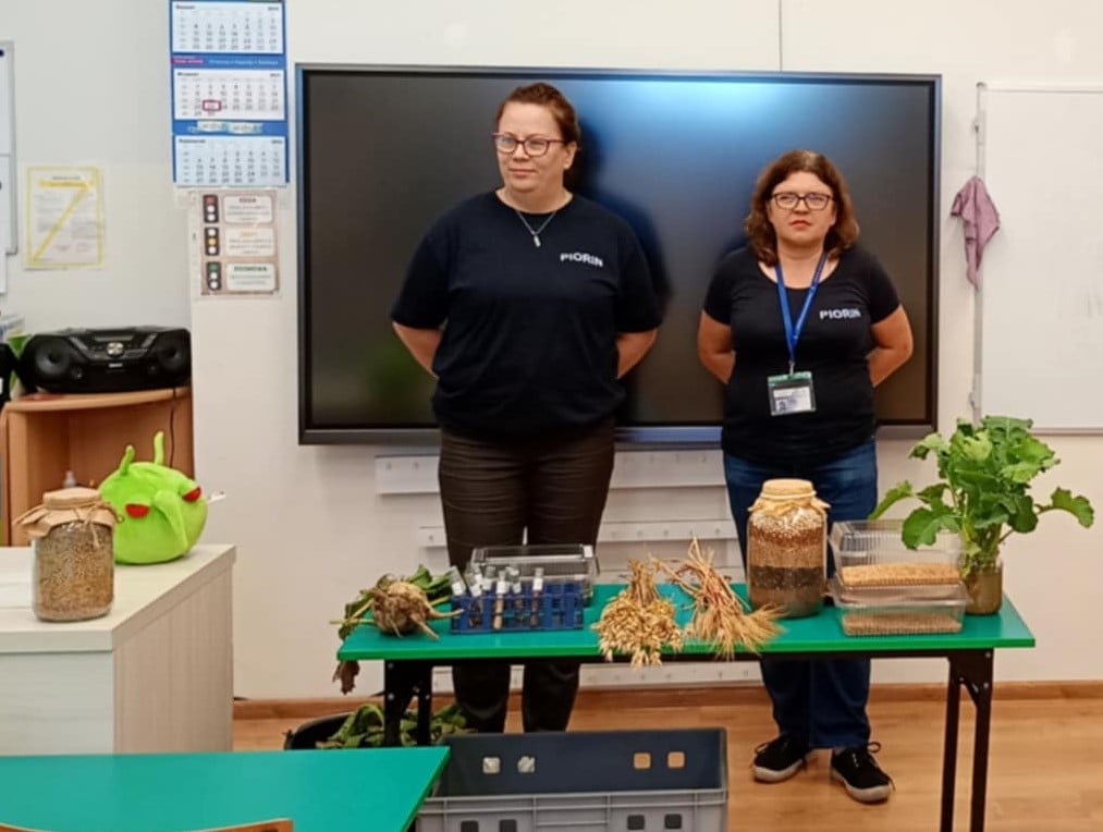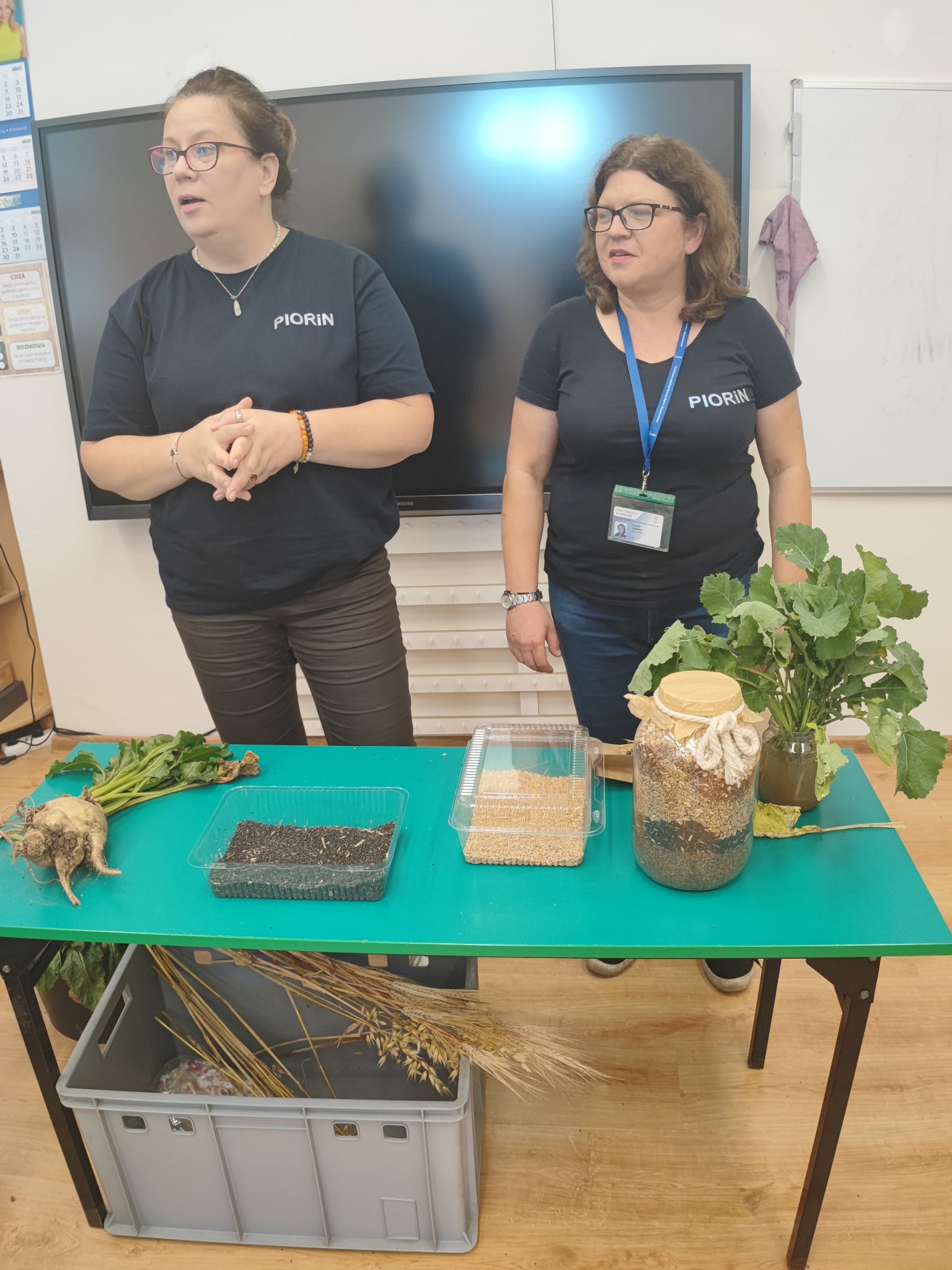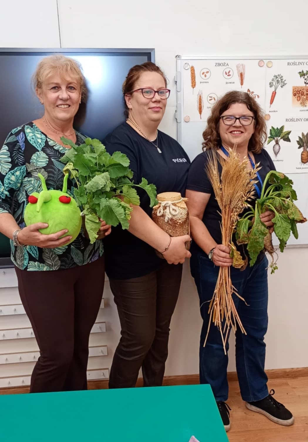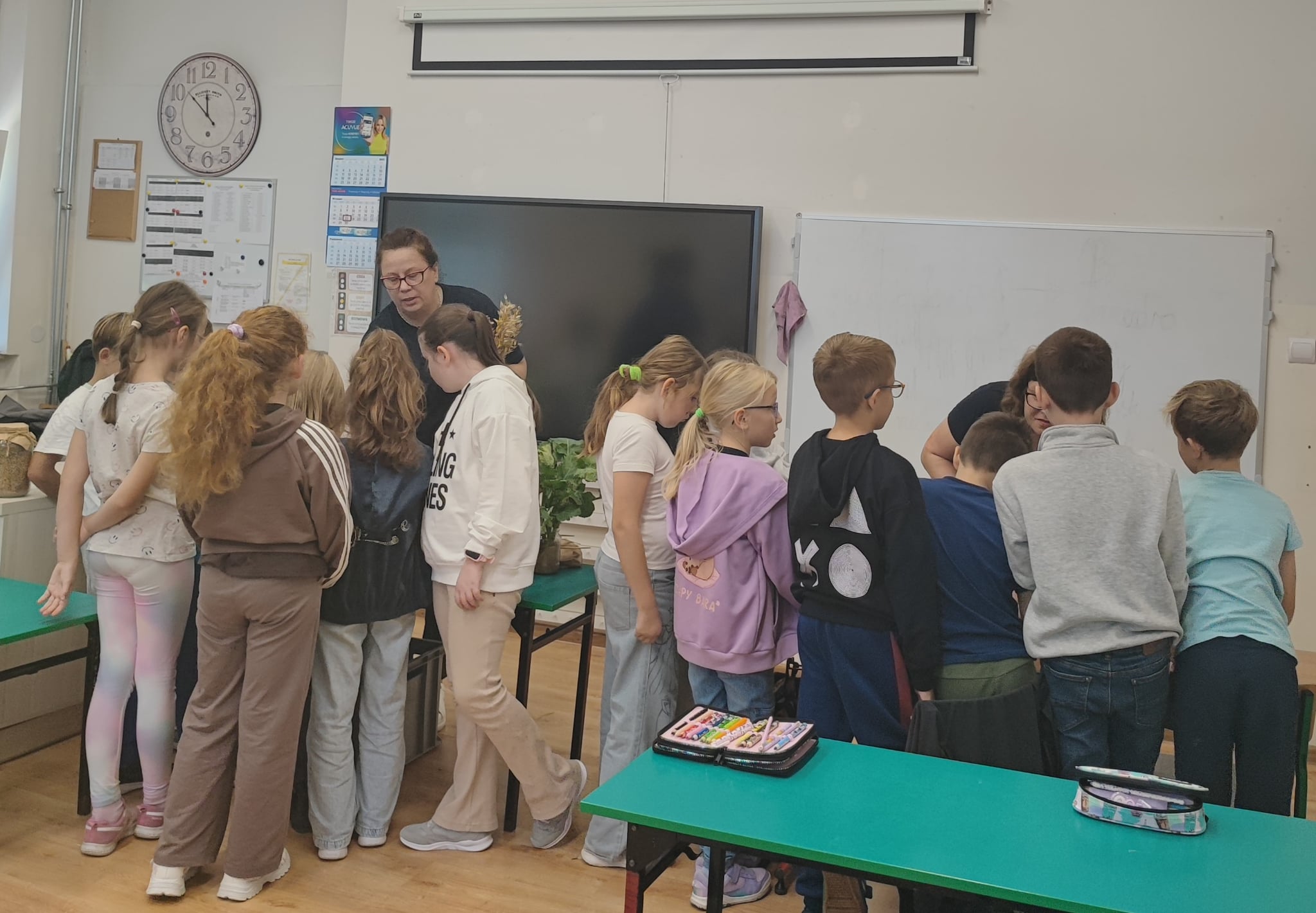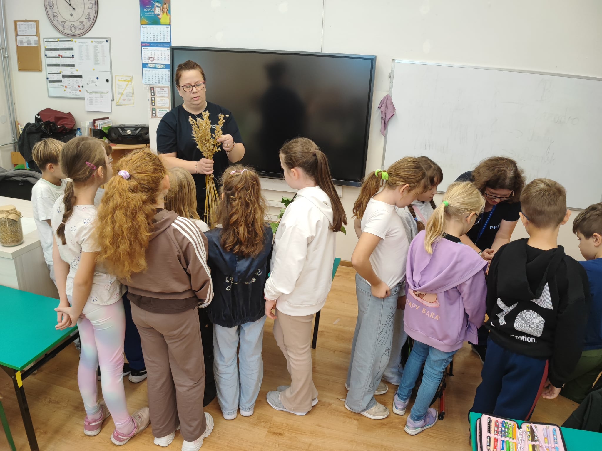 W klasie 3b odbyła się niecodzienna lekcja przyrody. Uczniowie gościli pracownice Wojewódzkiego Inspektoratu Ochrony Roślin i Nasiennictwa – oddział w Malborku. Pani Magda i pani Marysia opowiedziały o jesiennych zbiorach na polach. Zaprezentowały rośliny zbożowe, okopowe i oleiste. Uczniowie mogli dotknąć, powąchać, a niektóre – nawet posmakować! Dzieci dowiedziały się również do czego człowiek wykorzystuje te rośliny. Taka lekcja z przyrodniczymi eksponatami na pewno zapadnie w pamięci uczniów.