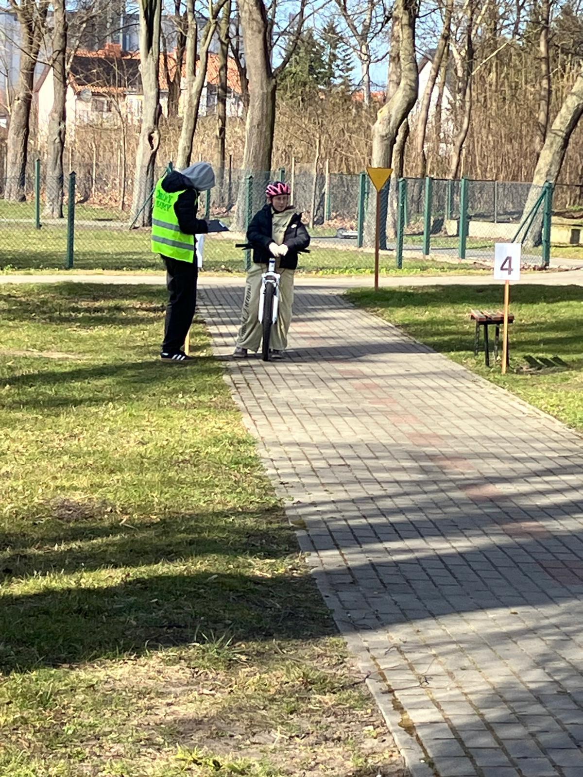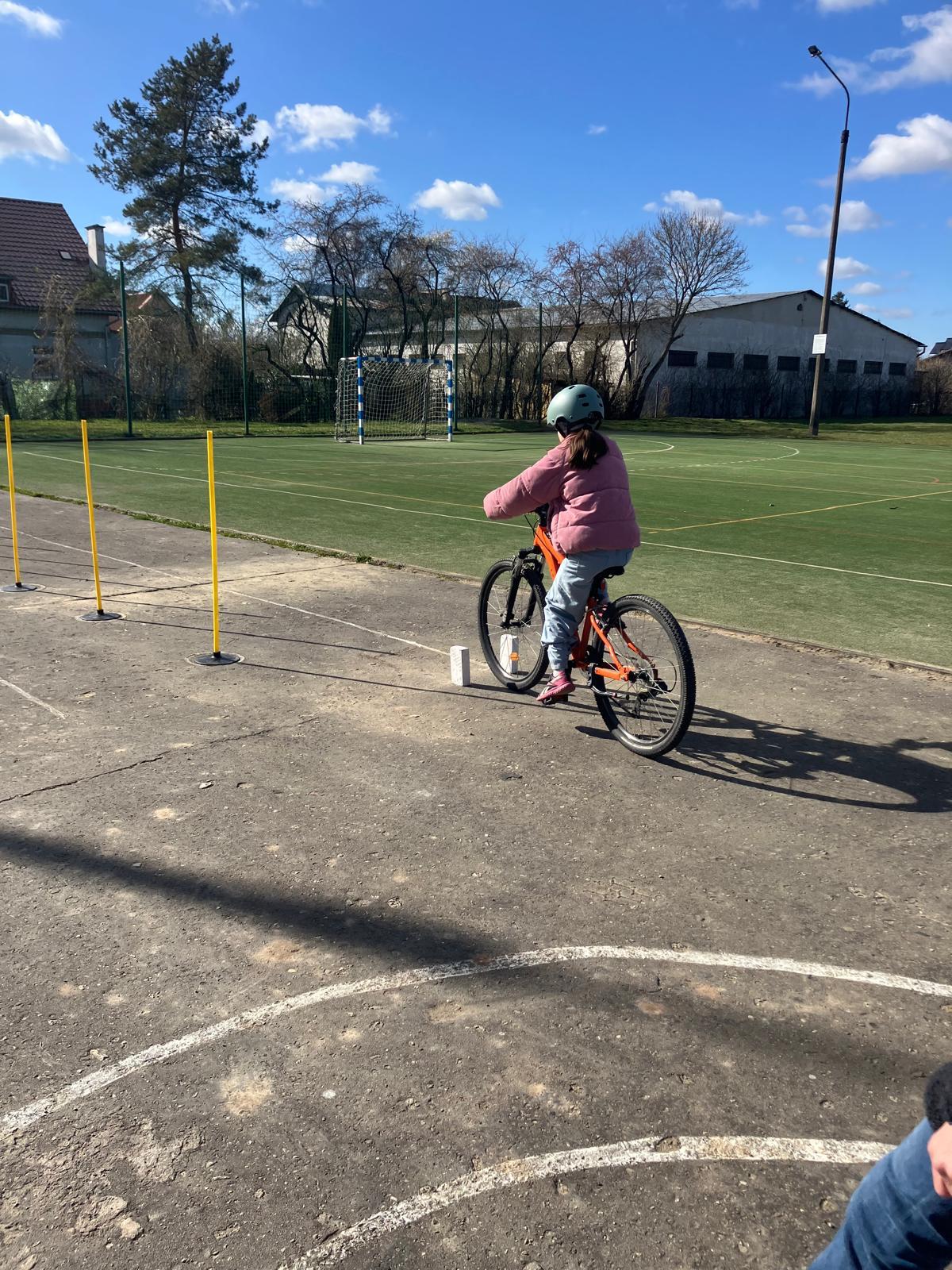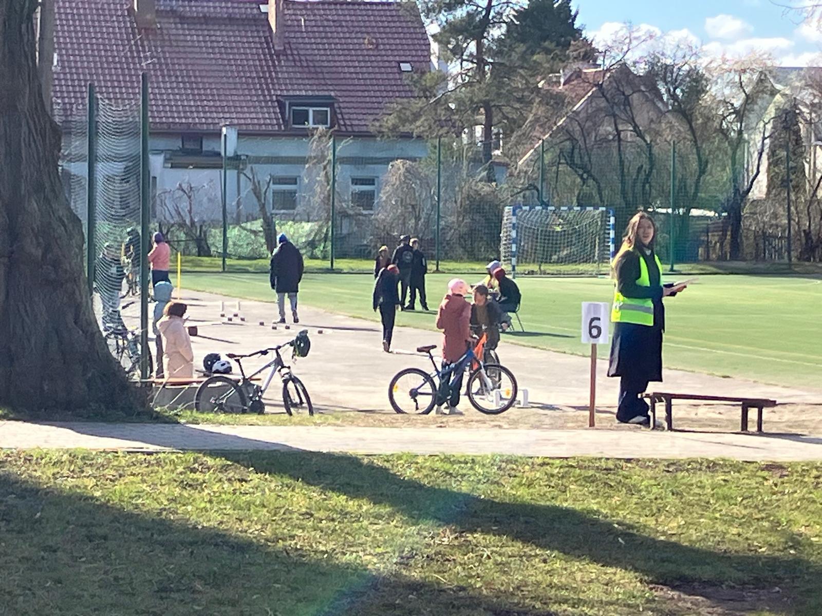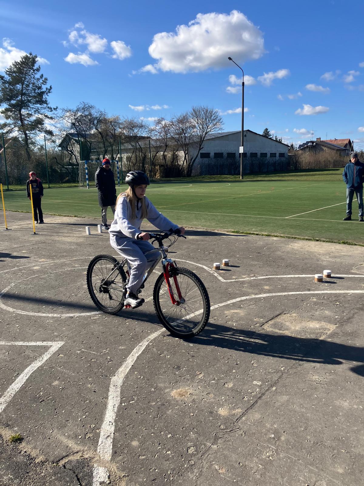 Praktyka: jazda po wymagającym rowerowym torze przeszkód oraz przejazd przez miasteczko ruchu drogowego pod czujnym okiem policjantów.