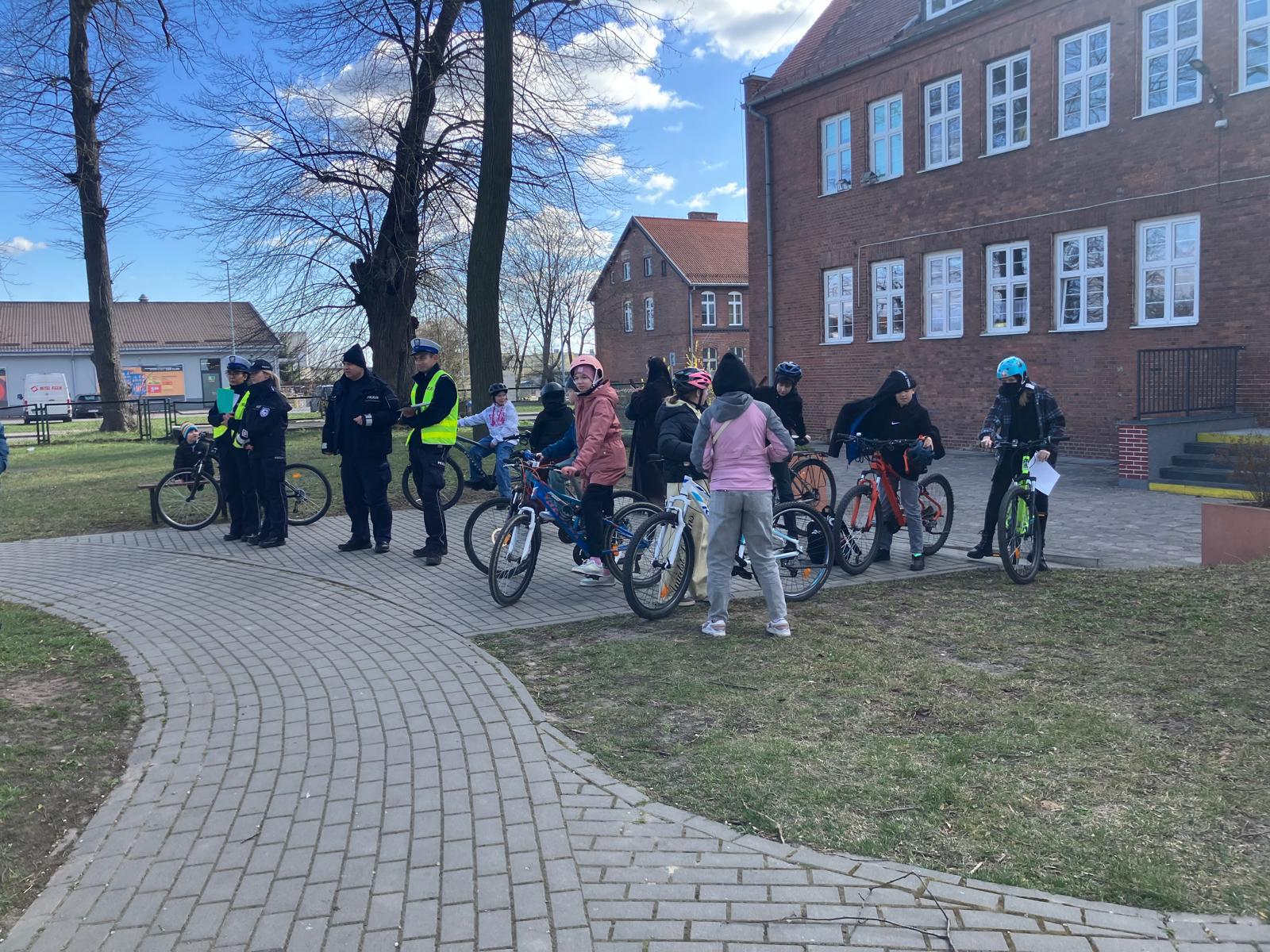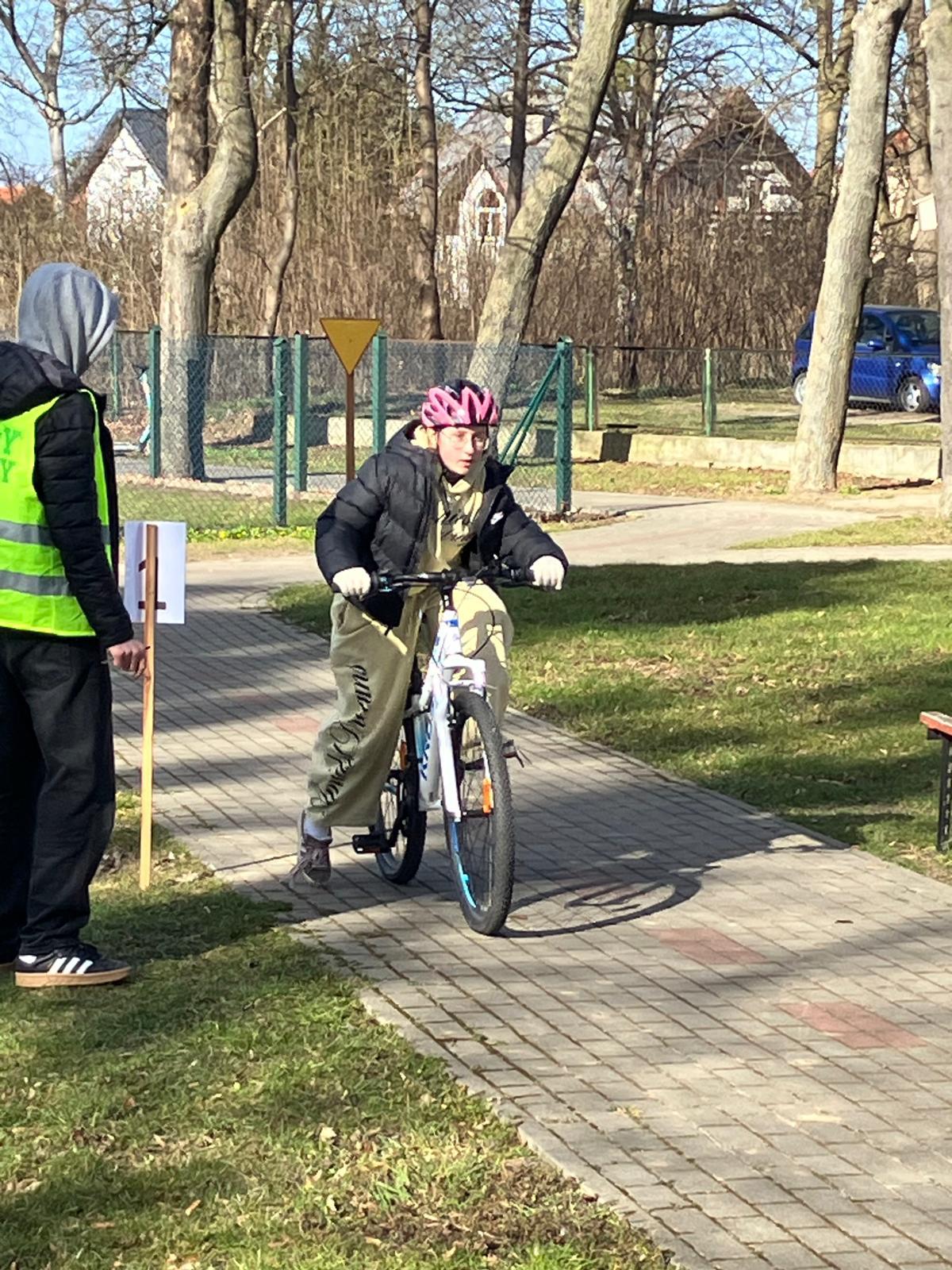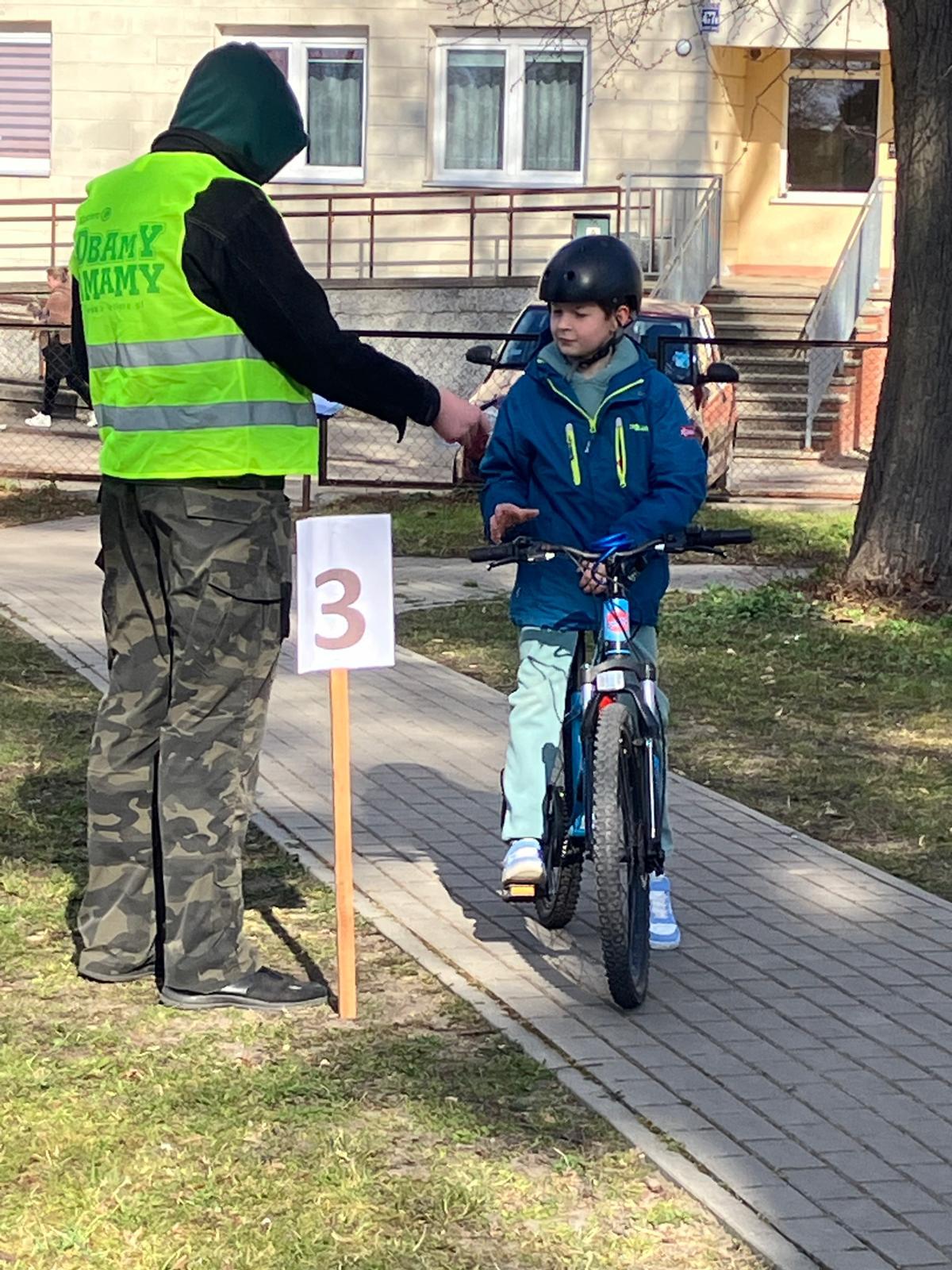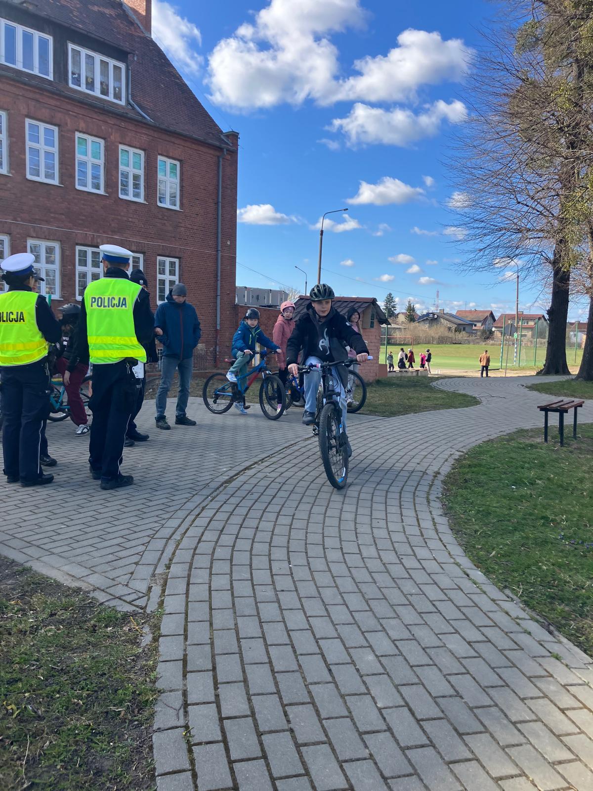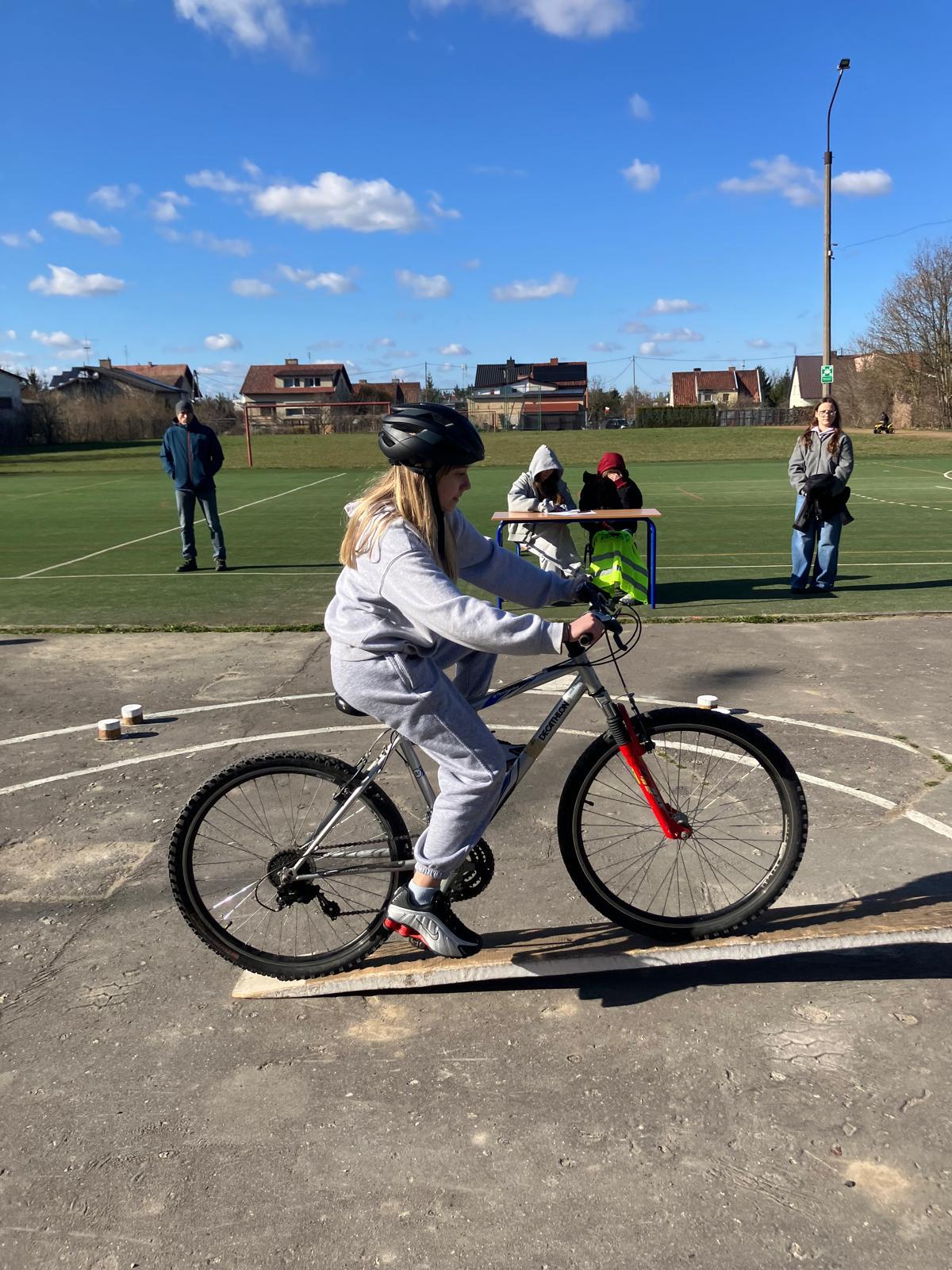 Praktyka: jazda po wymagającym rowerowym torze przeszkód oraz przejazd przez miasteczko ruchu drogowego pod czujnym okiem policjantów.