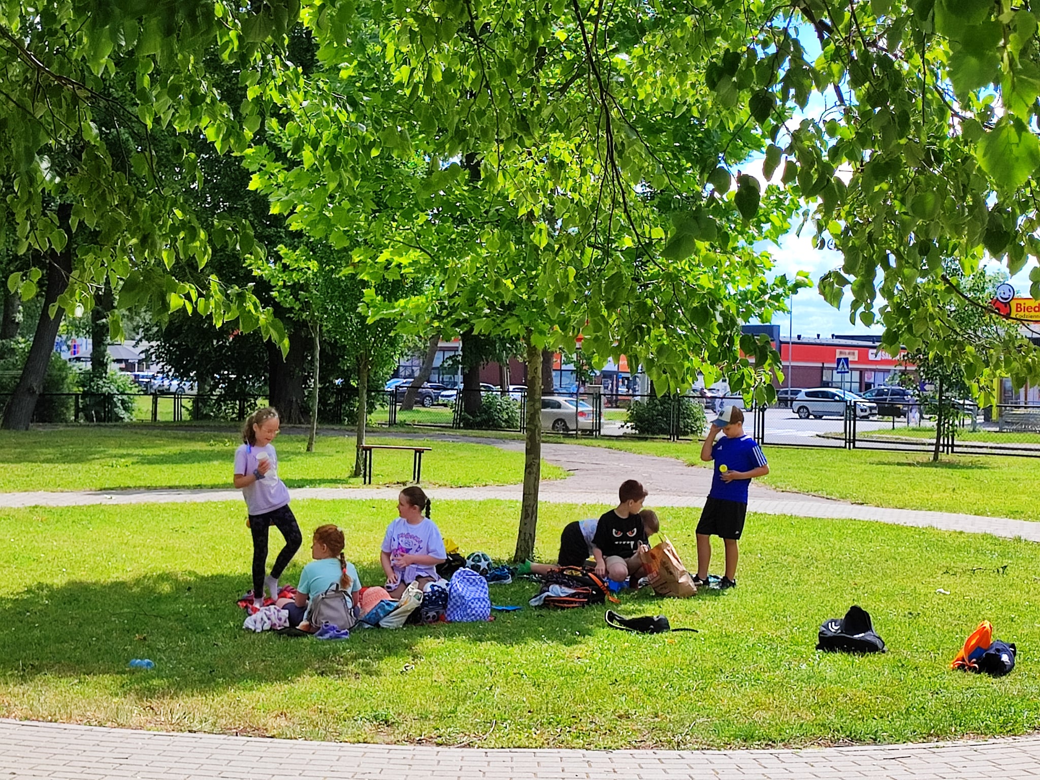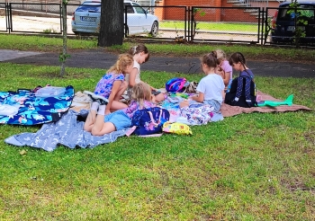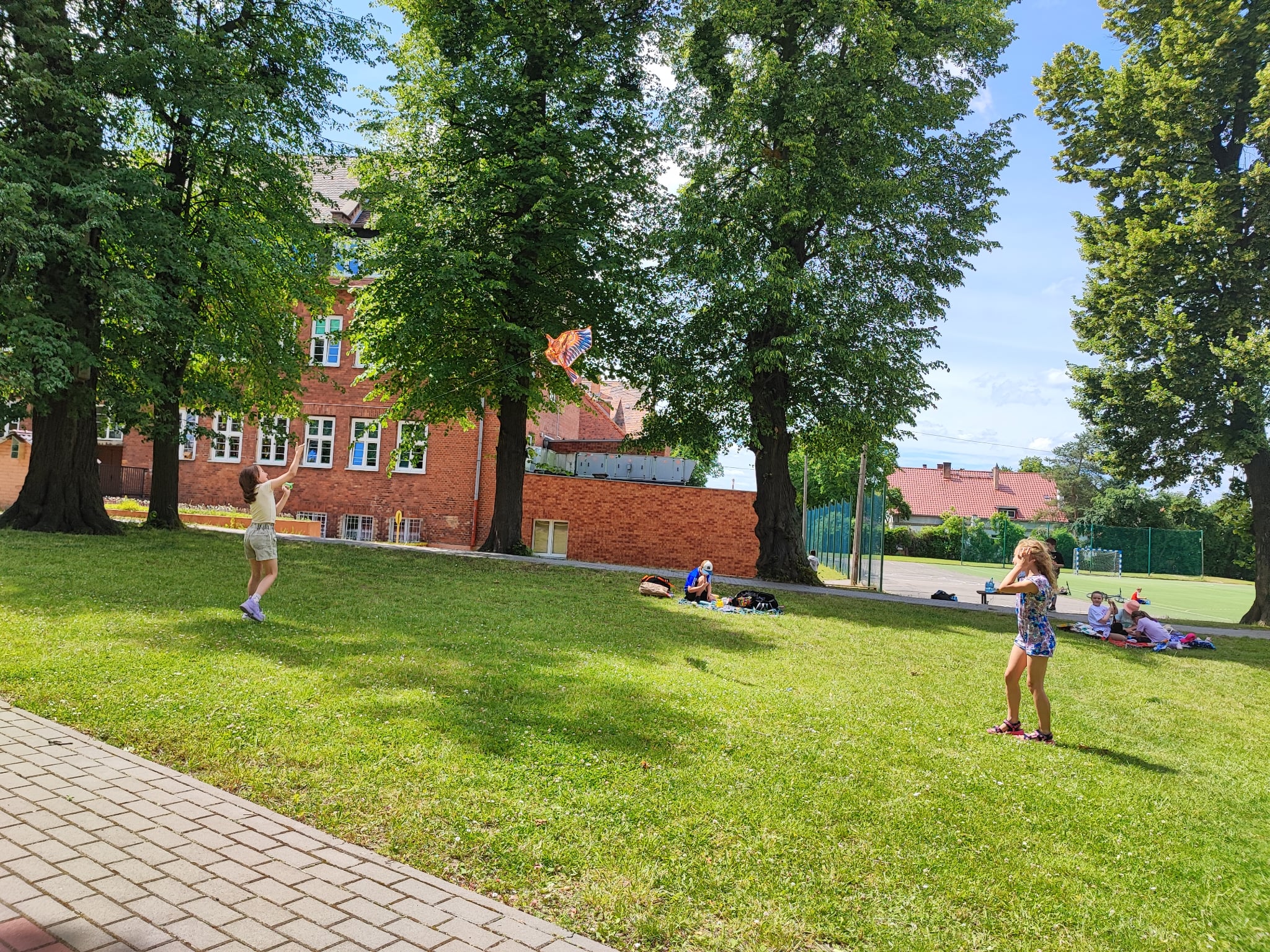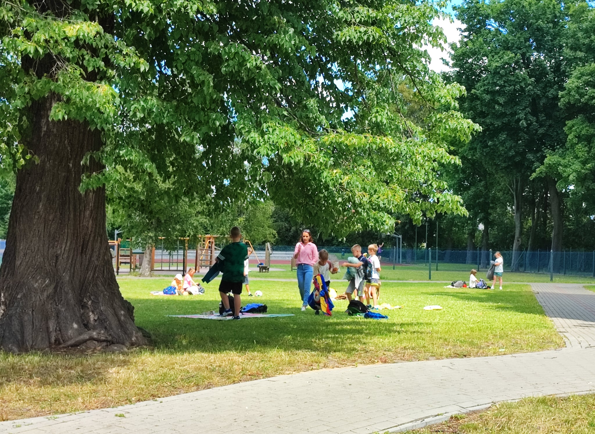 Przedostatni dzień w szkole uczniowie klas 2 spędzili na pikniku na boisku. Przygotowali się do tego znakomicie. Gry planszowe, piłka nożna, skakanki, puszczanie latawca, styropianowe samoloty, salon fryzjerski pod chmurką i sekretne rozmowy na kocykach – tym się zajmowali. Nie zabrakło prowiantu. Każdy miał w swoim plecaku coś smacznego, ale oczywiście niezawodni rodzice również zadbali o dostarczenie smakołyków. Pogoda dopisała, humory również – czegóż chcieć więcej?
