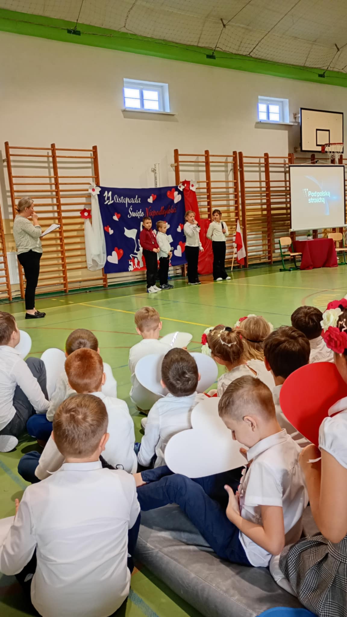 7 listopada w naszej szkole odbyły się uroczyste obchody Narodowego Święta Niepodległości. Uczniowie klasy 2c przygotowali krótkie przedstawienie pt „ Pod polską strzechą” a także przybliżyli nam symbole narodowe. Podczas apelu każda ze zgromadzonych klas zaprezentowała wybraną przez siebie piosenkę patriotyczną, wprowadzając wszystkich w uroczysty nastrój.