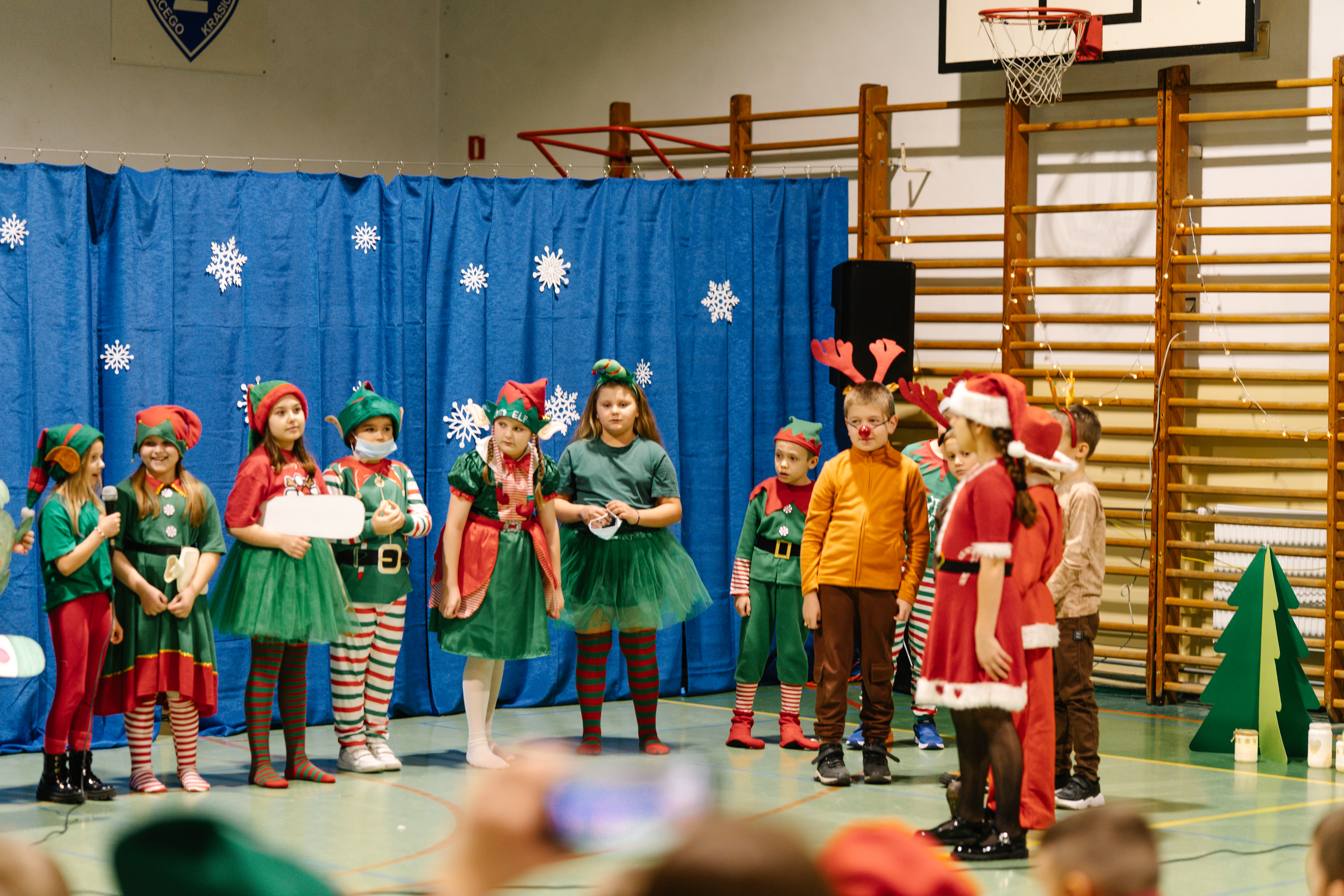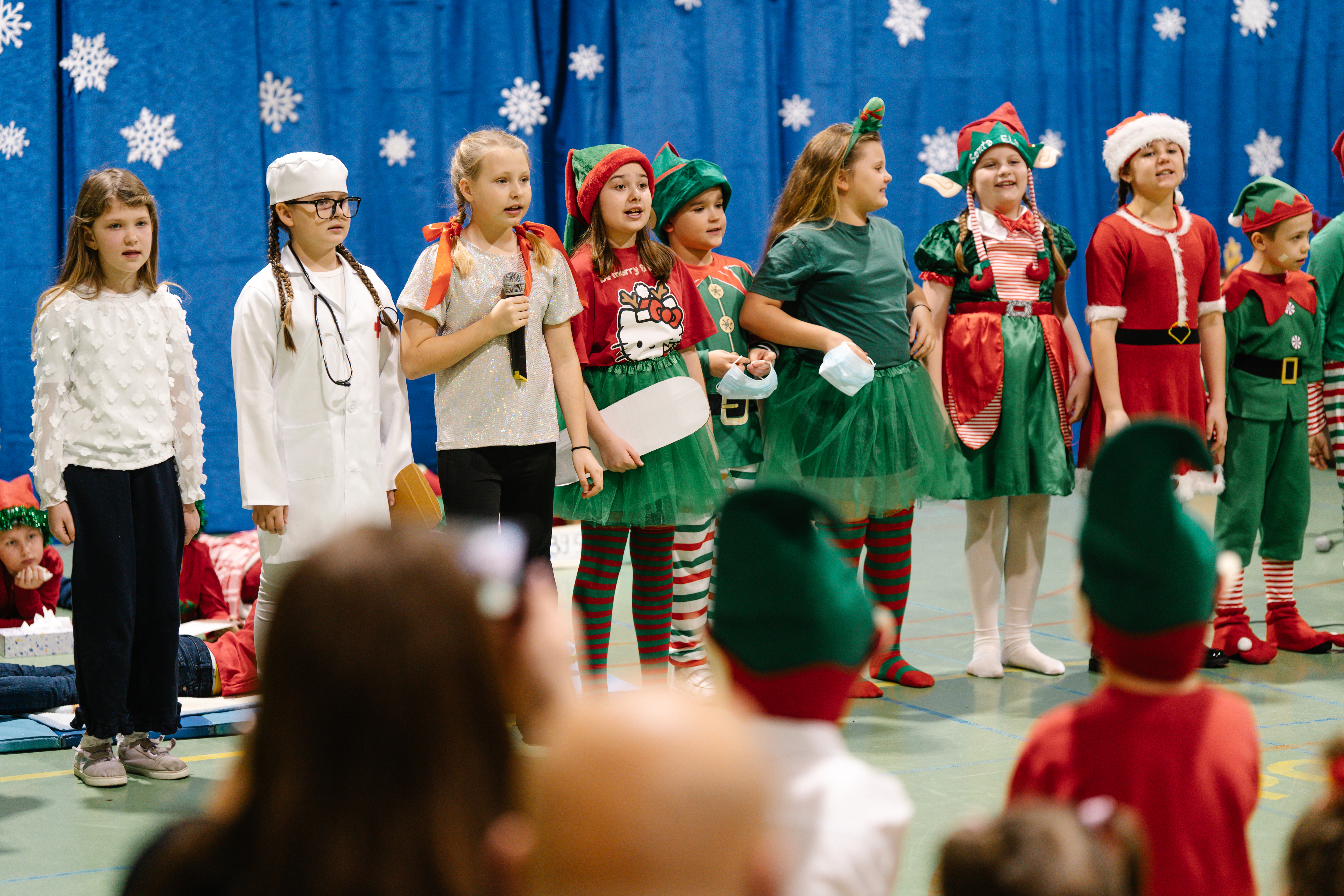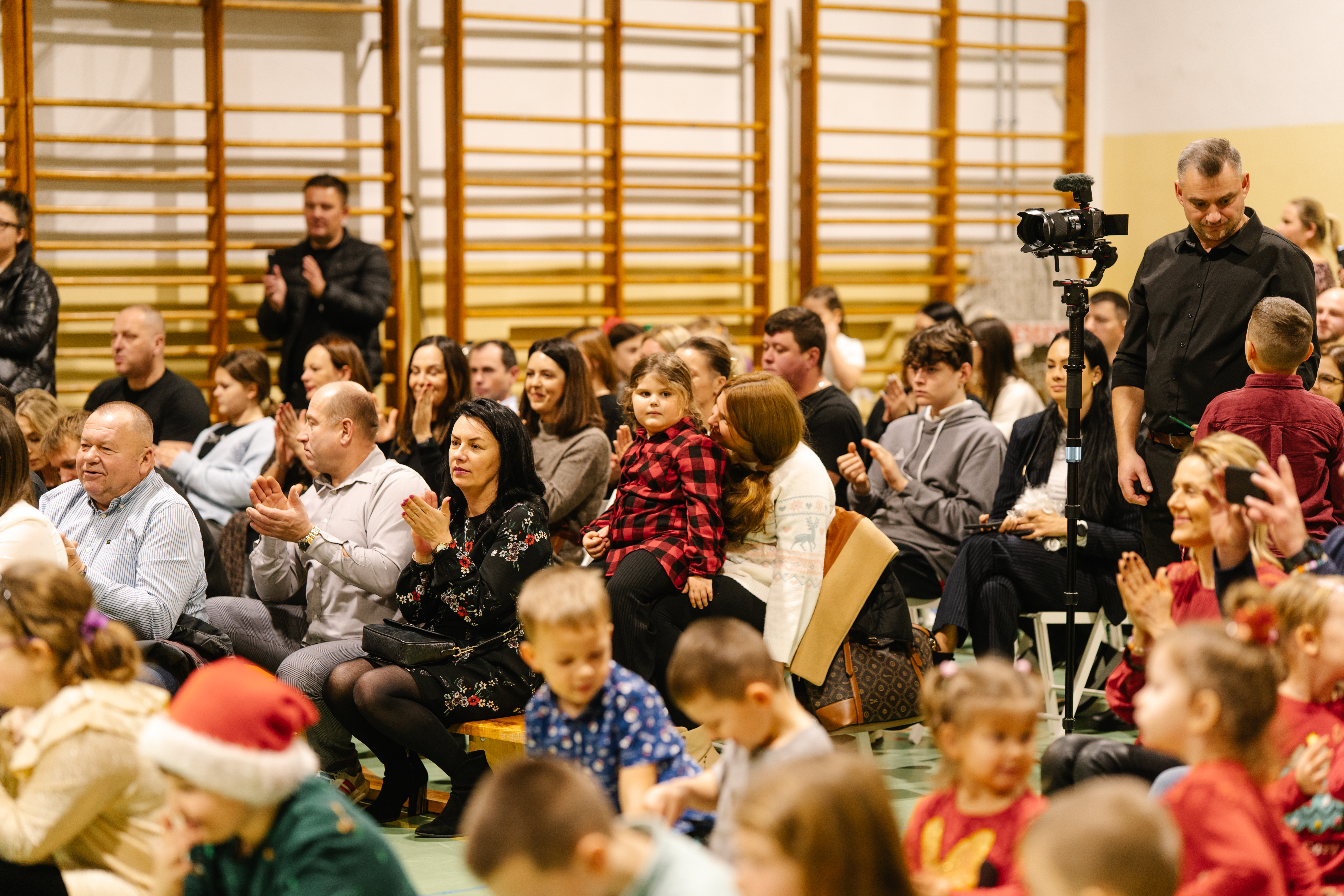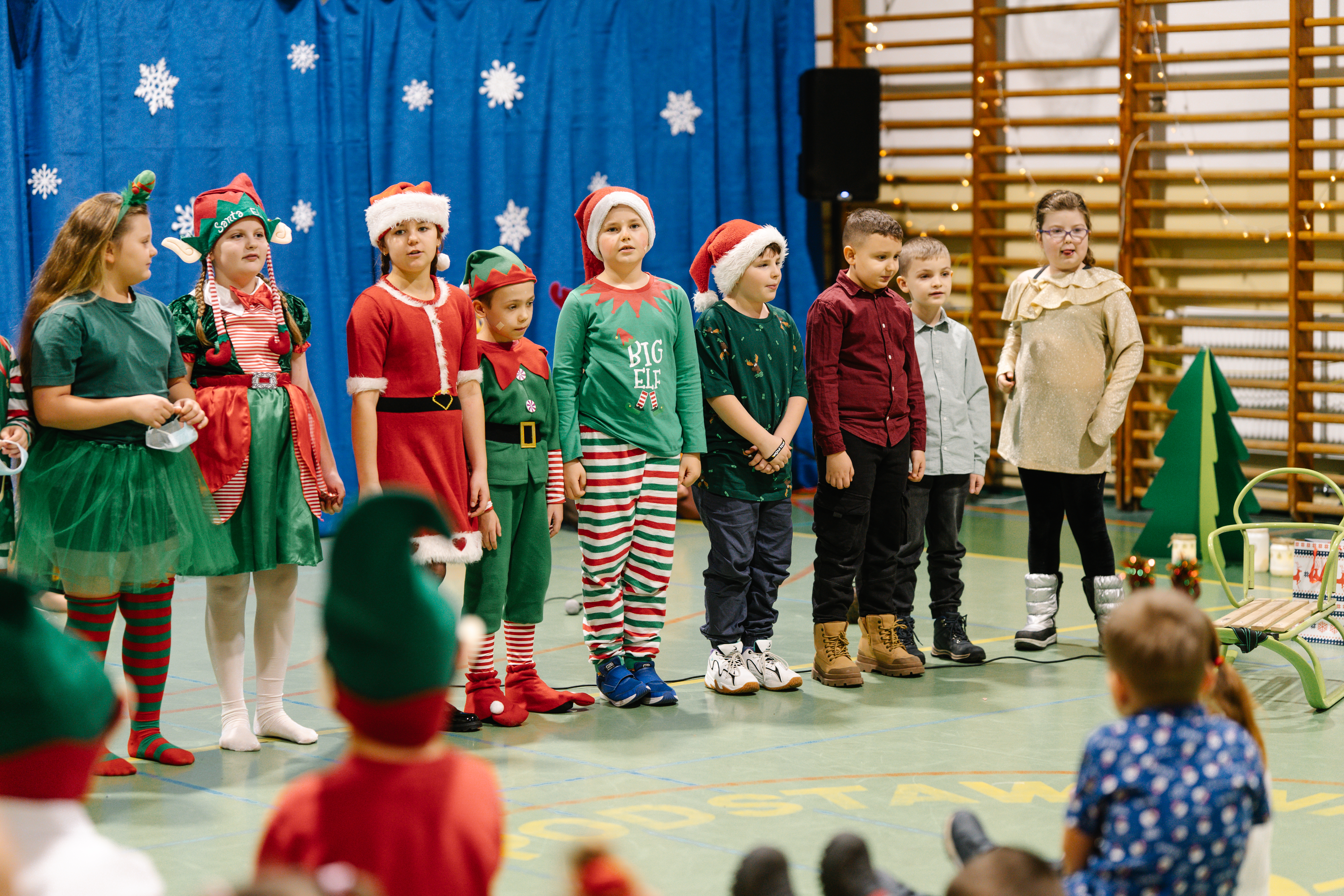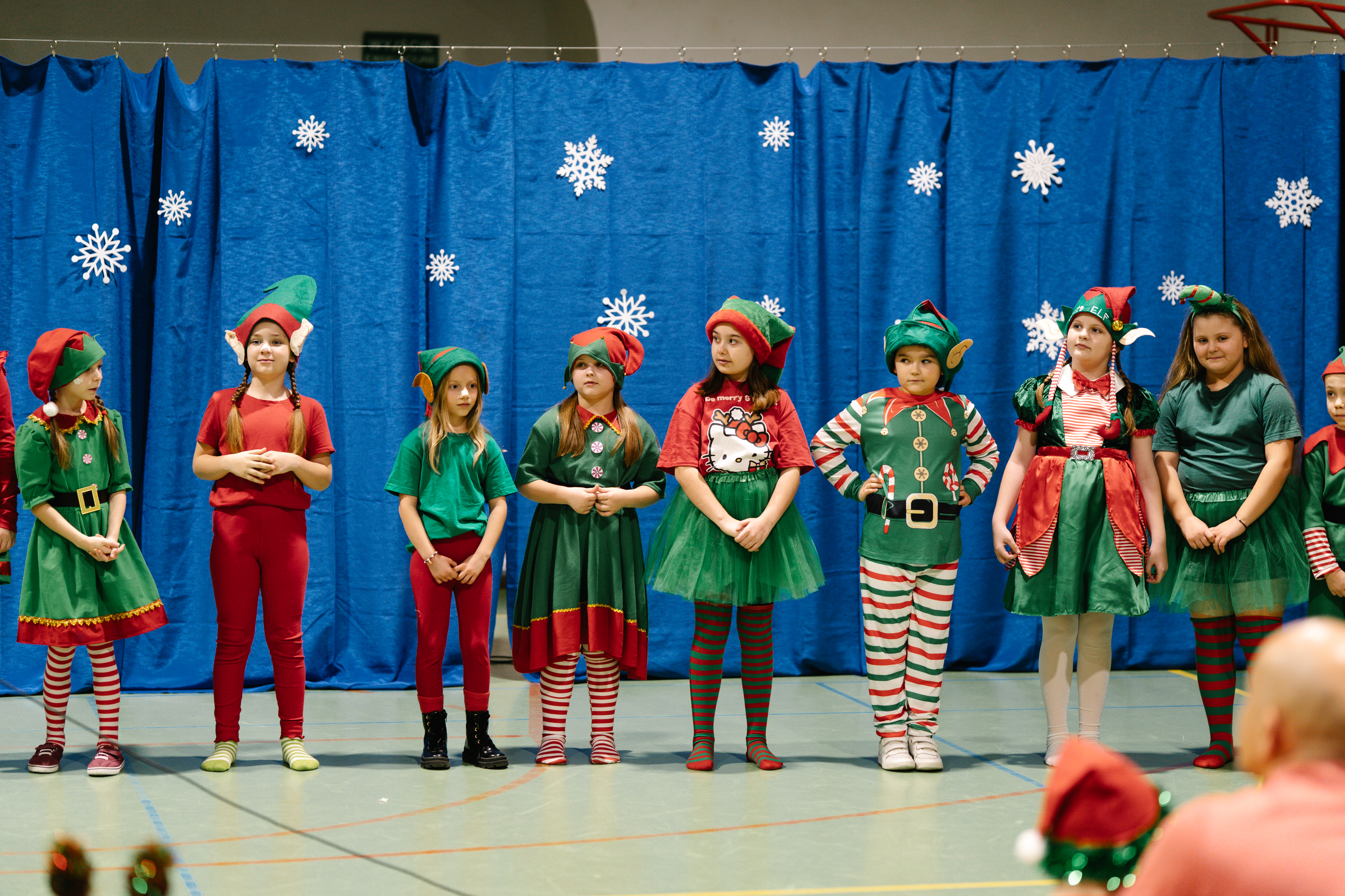 Spektakl opowiadał historię elfów z pracowni Świętego Mikołaja, które niespodziewanie zachorowały tuż przed świętami. Mali aktorzy z ogromnym zaangażowaniem wcielili się w swoje role, recytując kwestie, śpiewając piosenki i wykonując układy taneczne. Występy przeplatały się z humorem i wzruszeniem, a publiczność nagradzała dzieci gromkimi brawami. Rodzice z dumą obserwowali swoje pociechy, uwieczniając występ na zdjęciach i filmach.