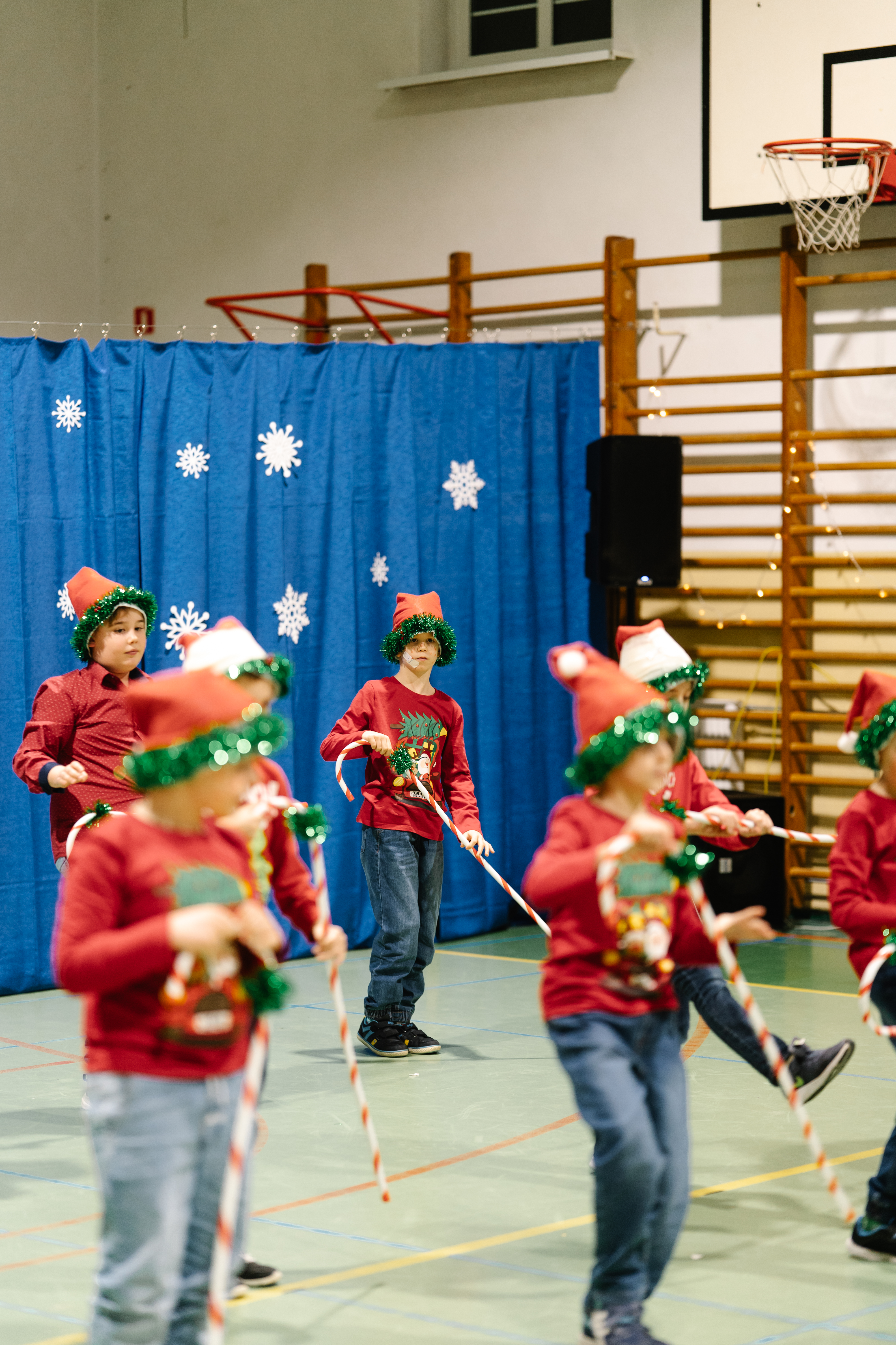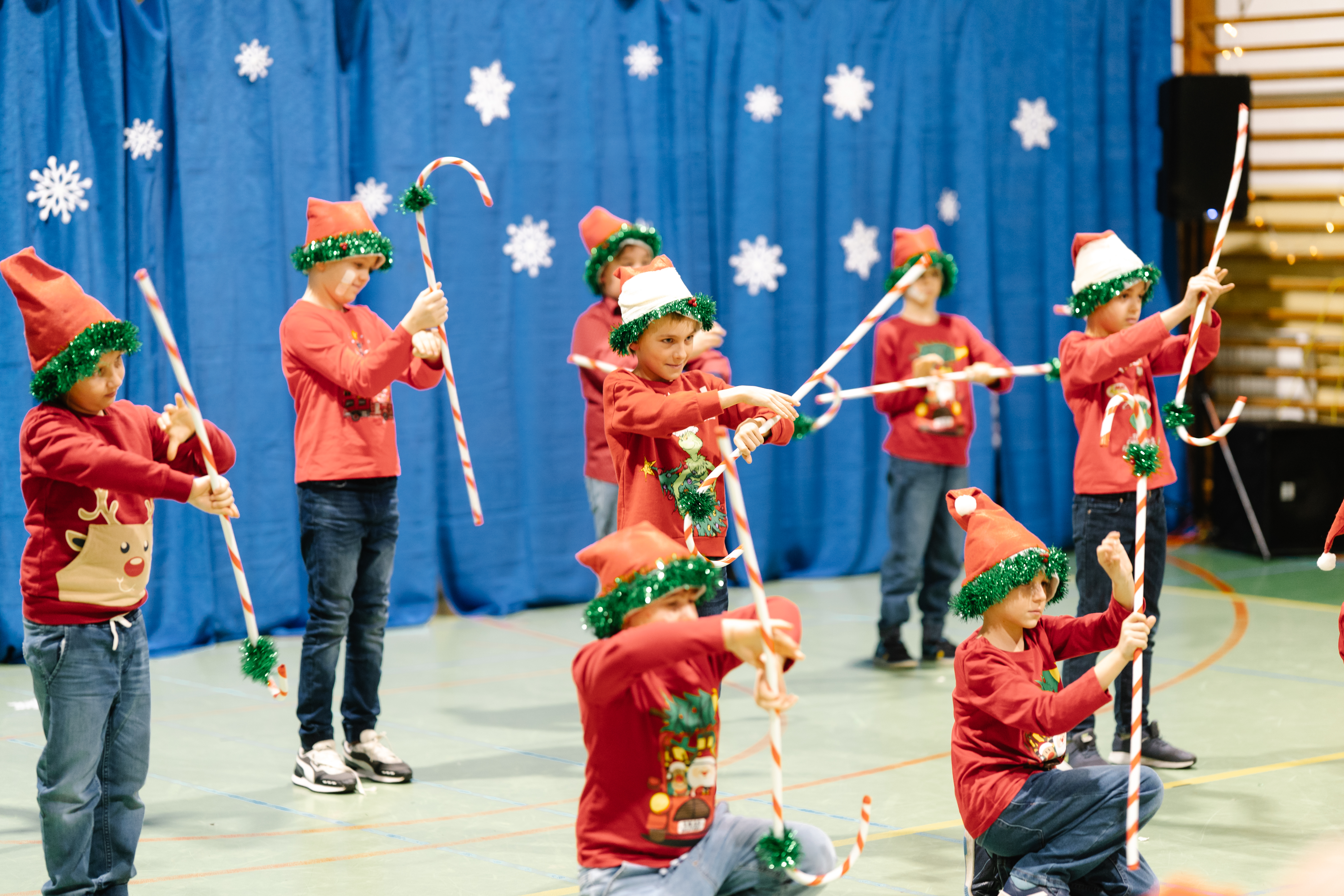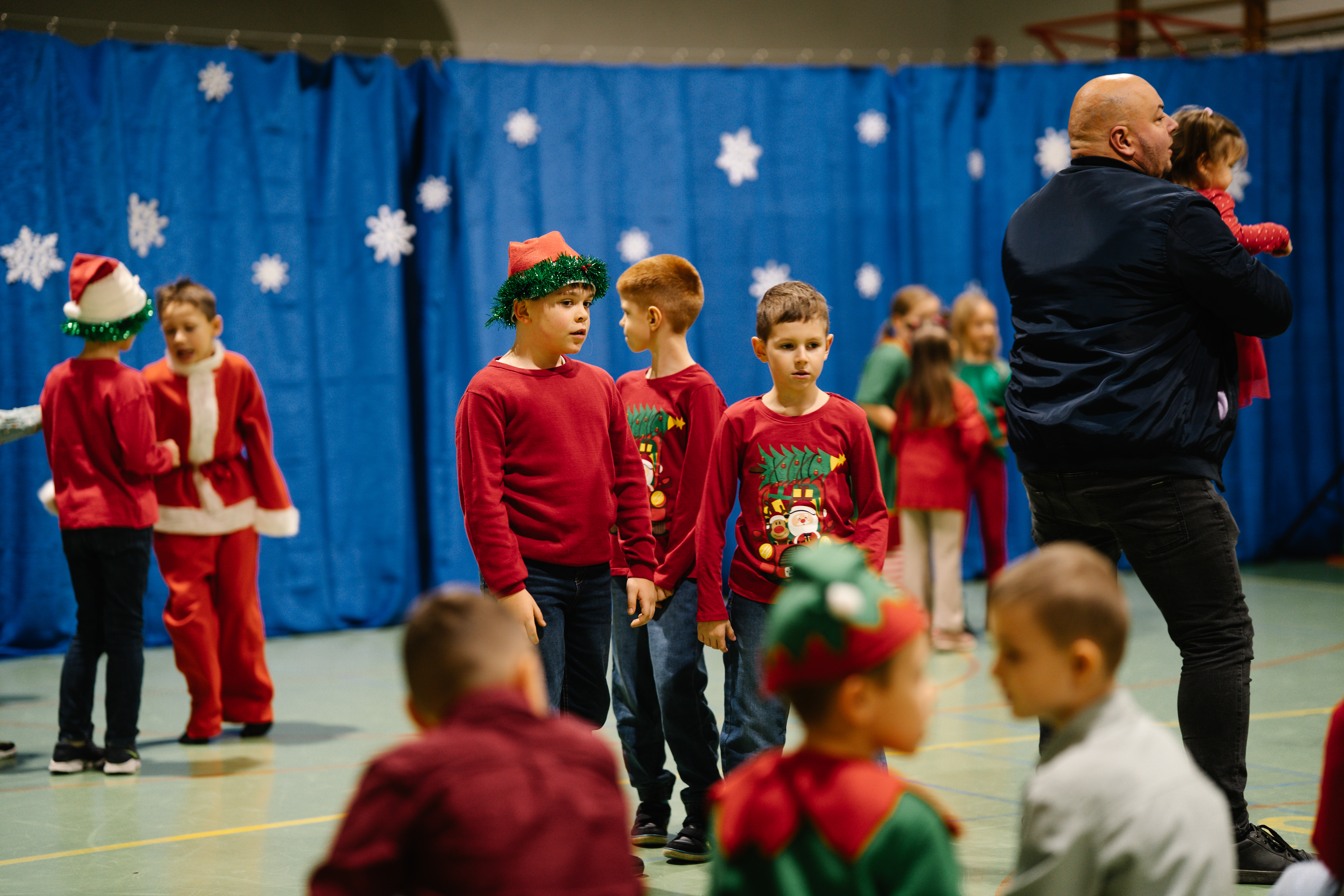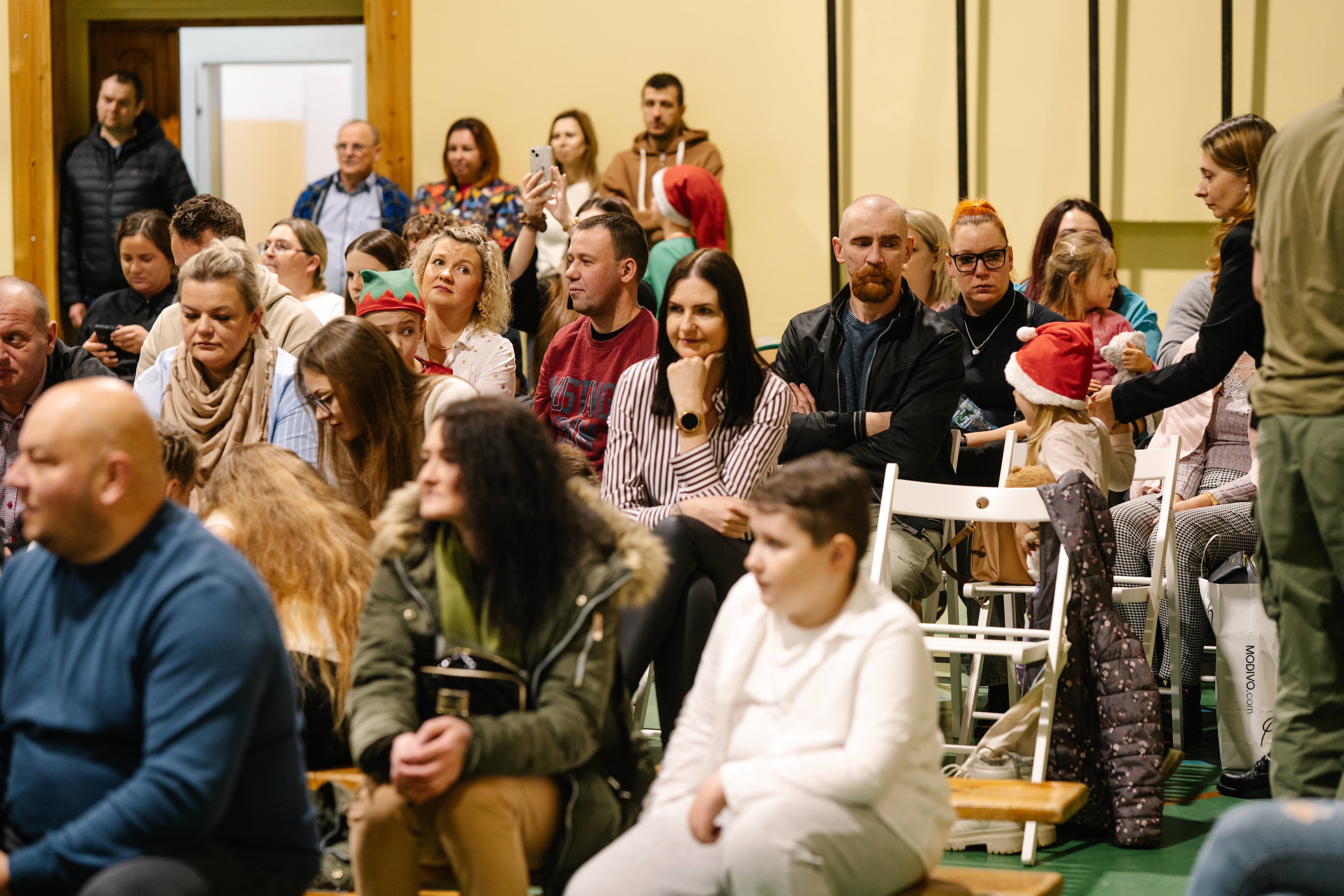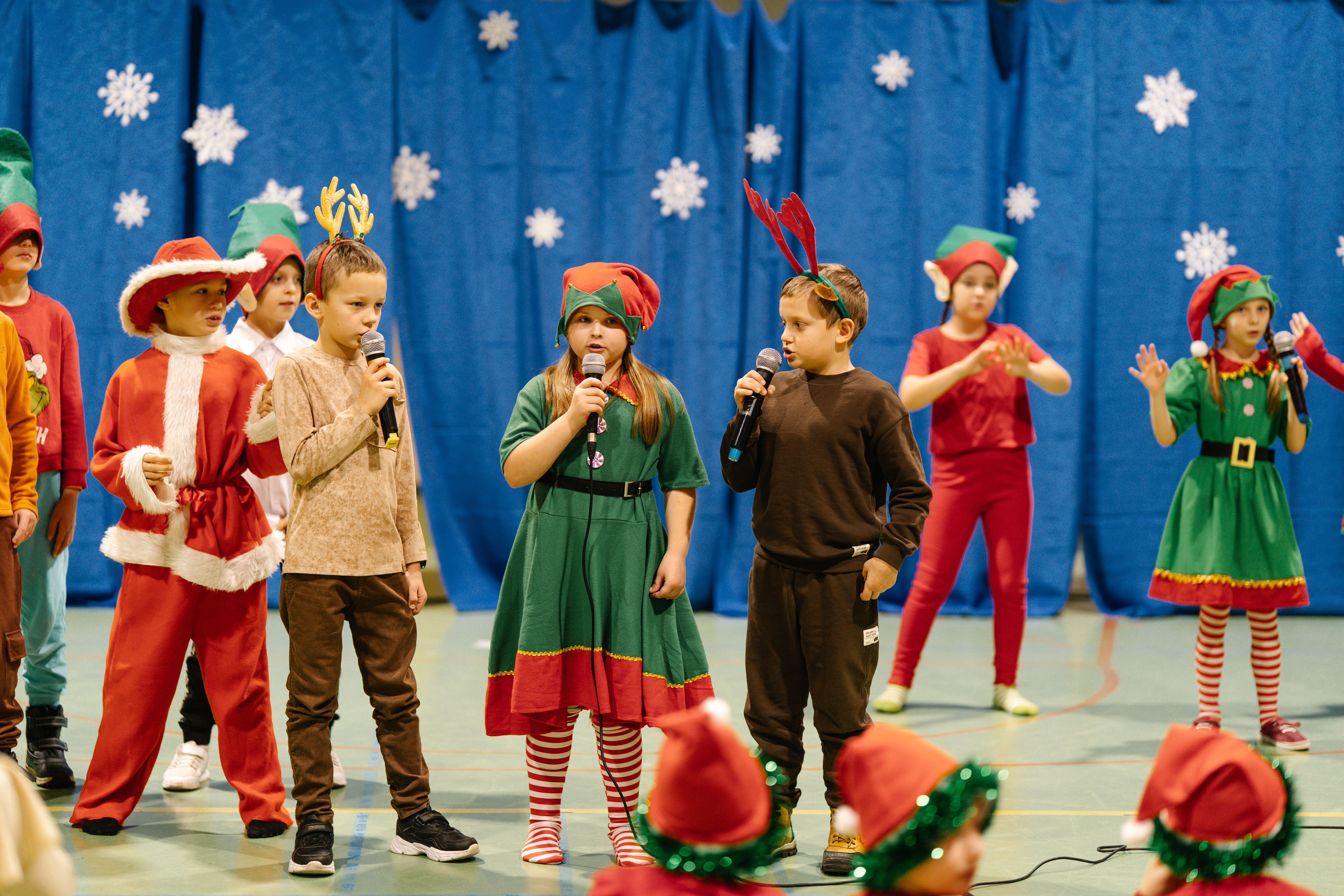 Spektakl opowiadał historię elfów z pracowni Świętego Mikołaja, które niespodziewanie zachorowały tuż przed świętami. Mali aktorzy z ogromnym zaangażowaniem wcielili się w swoje role, recytując kwestie, śpiewając piosenki i wykonując układy taneczne. Występy przeplatały się z humorem i wzruszeniem, a publiczność nagradzała dzieci gromkimi brawami. Rodzice z dumą obserwowali swoje pociechy, uwieczniając występ na zdjęciach i filmach.