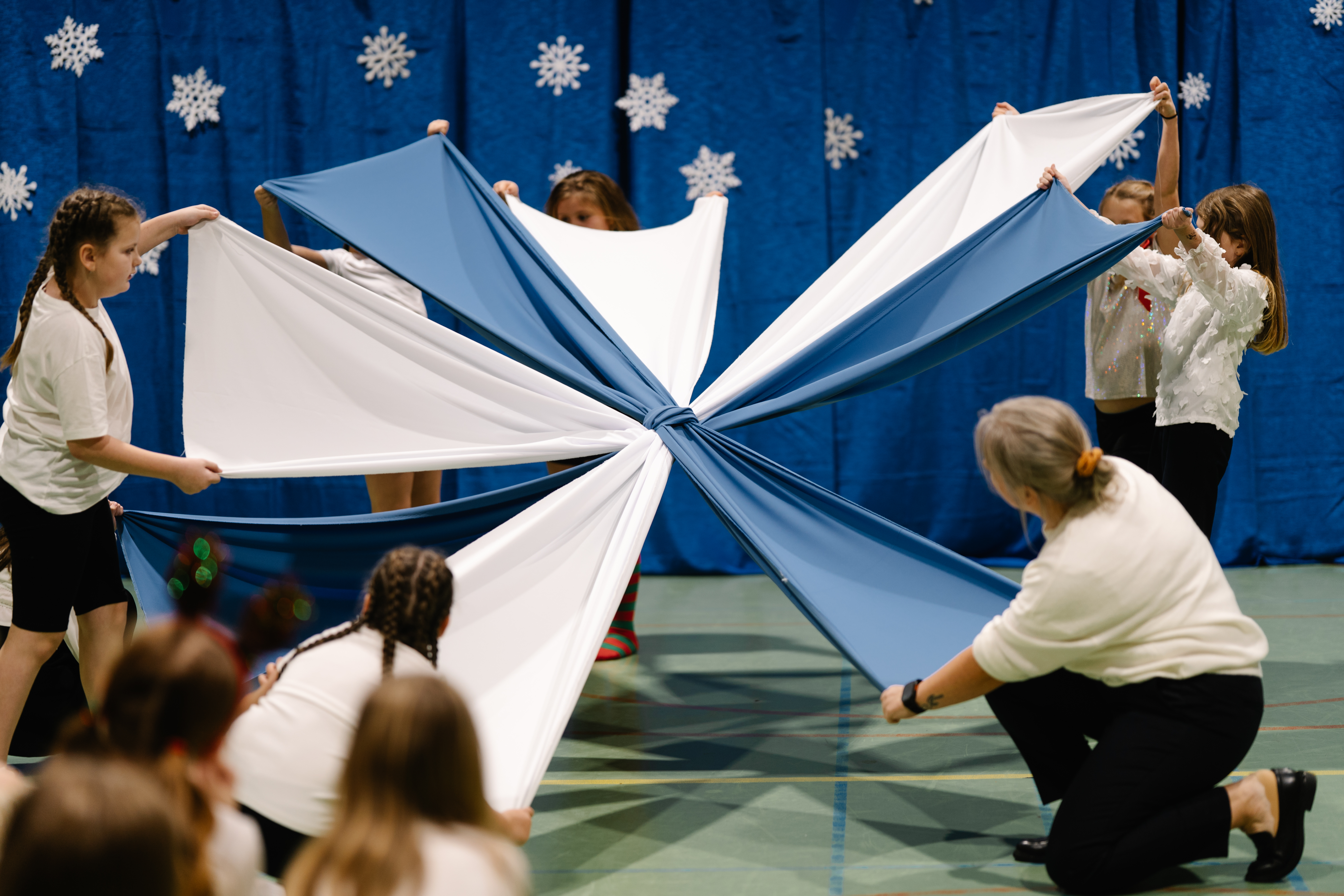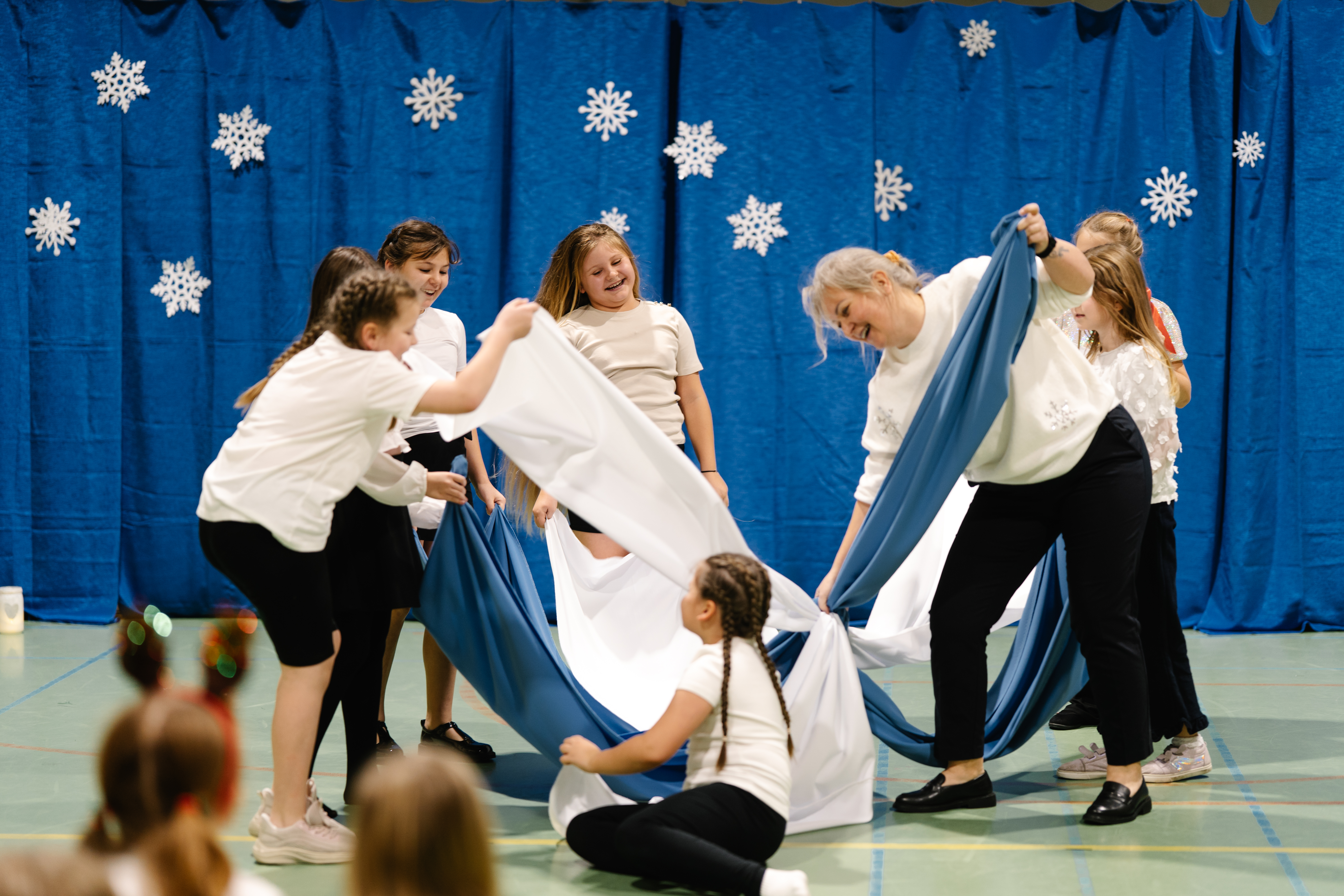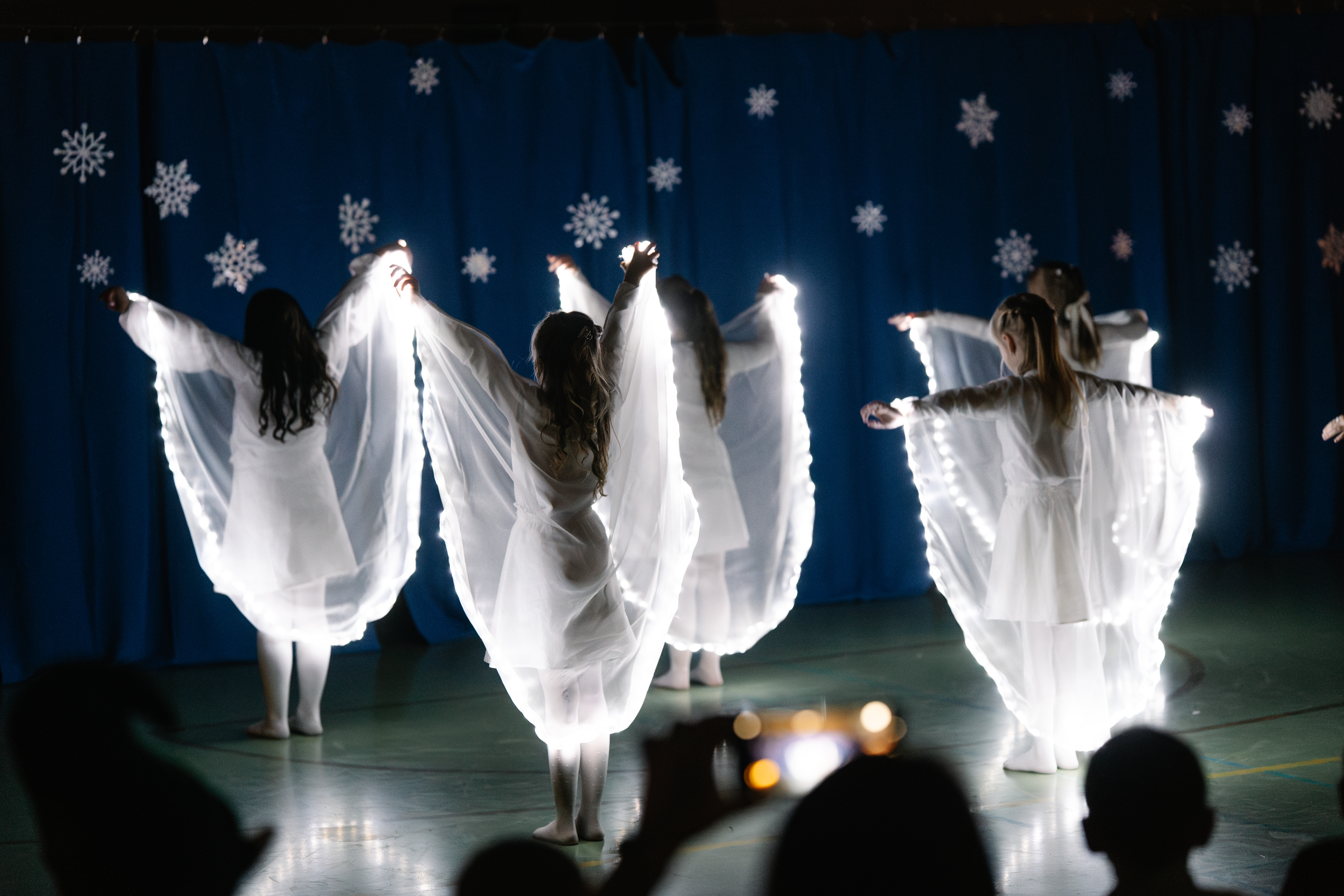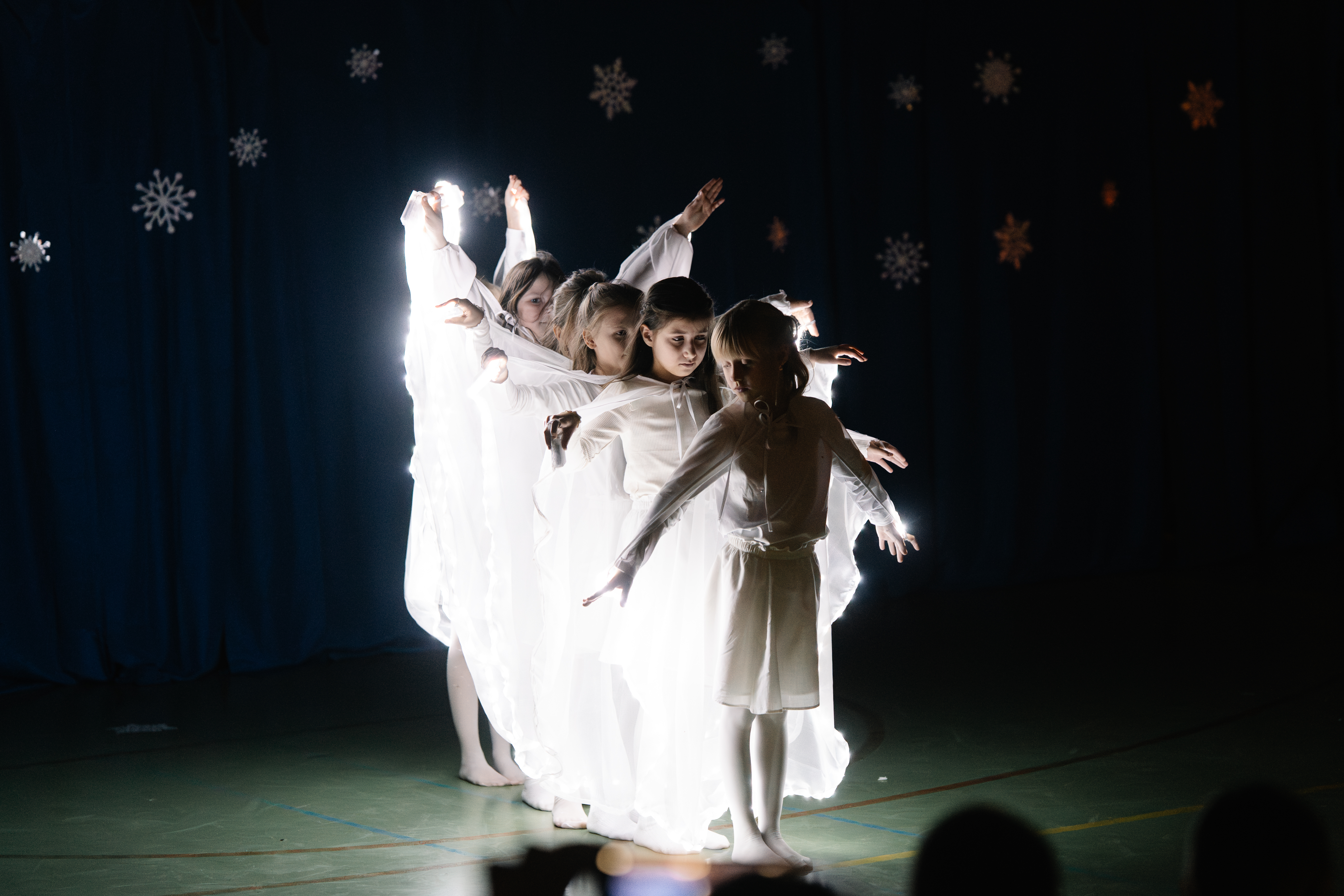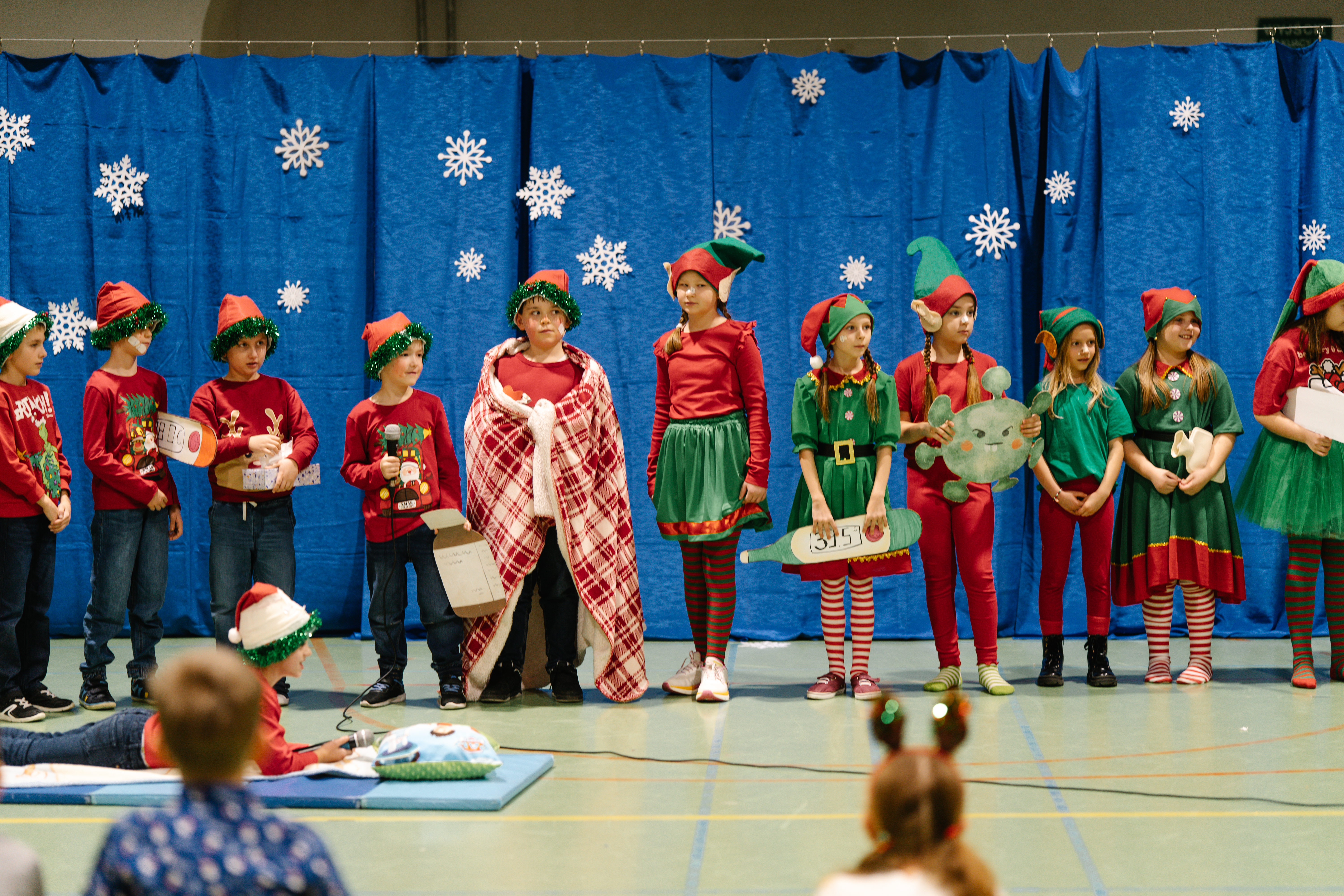 Spektakl opowiadał historię elfów z pracowni Świętego Mikołaja, które niespodziewanie zachorowały tuż przed świętami. Mali aktorzy z ogromnym zaangażowaniem wcielili się w swoje role, recytując kwestie, śpiewając piosenki i wykonując układy taneczne. Występy przeplatały się z humorem i wzruszeniem, a publiczność nagradzała dzieci gromkimi brawami. Rodzice z dumą obserwowali swoje pociechy, uwieczniając występ na zdjęciach i filmach.