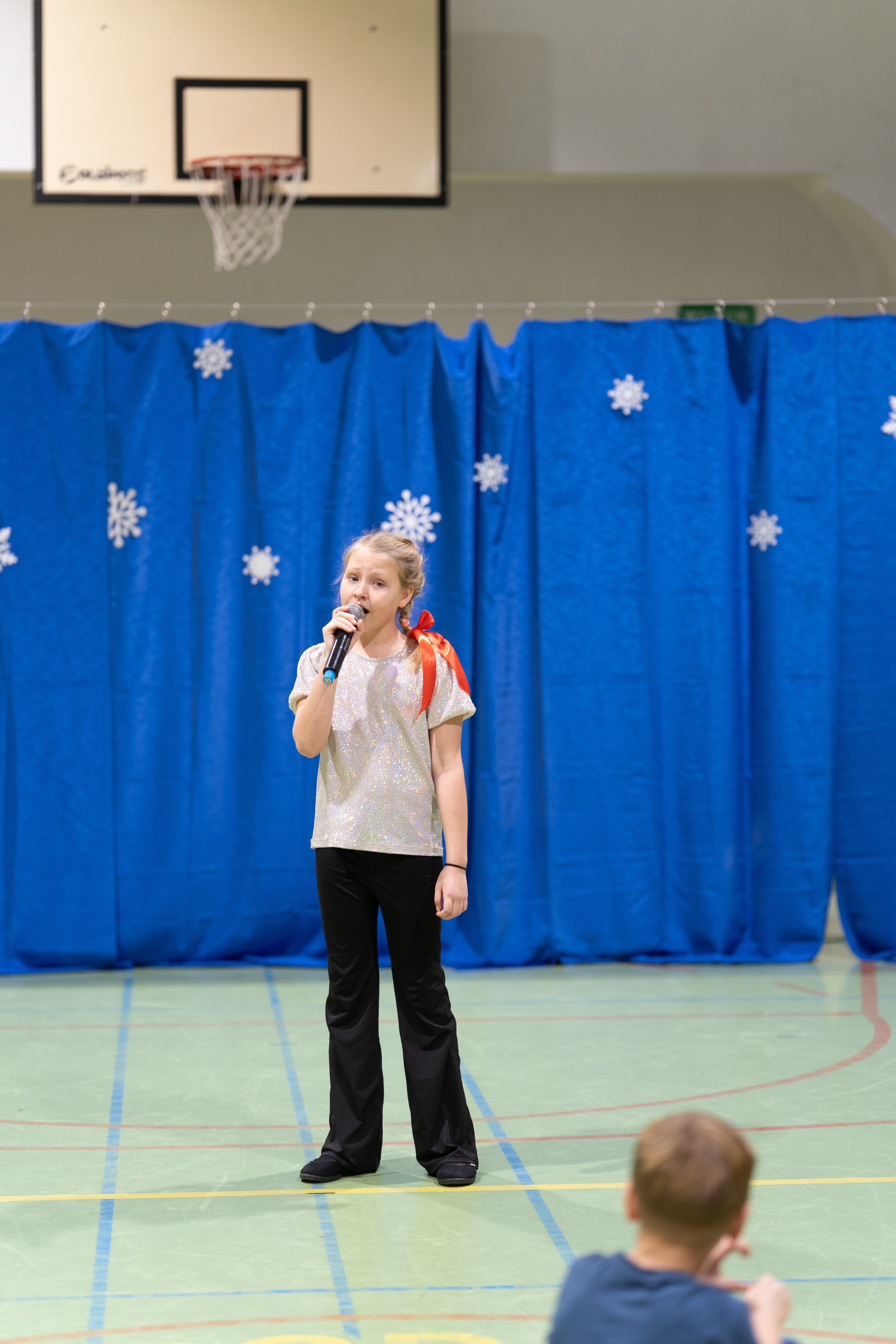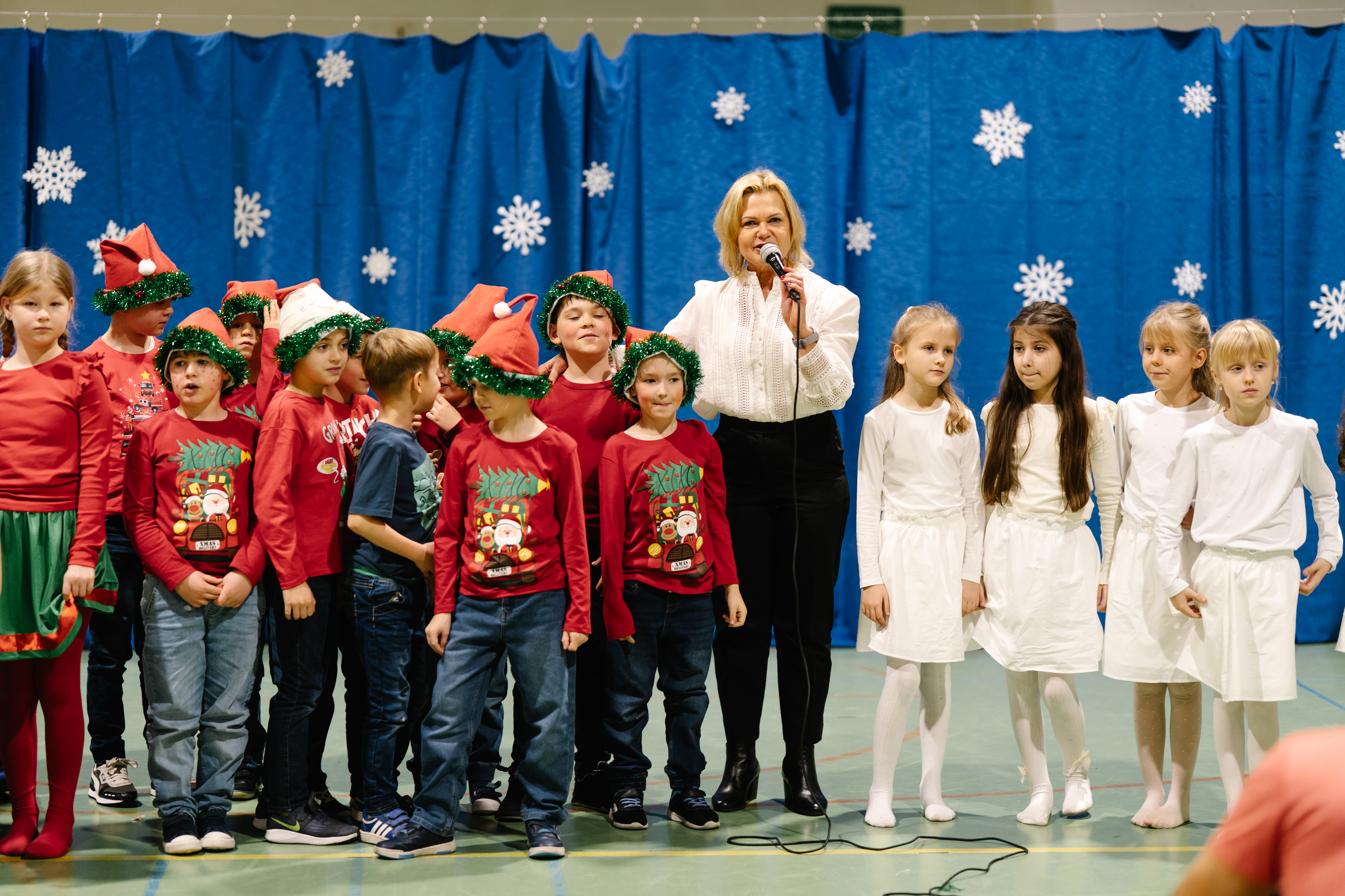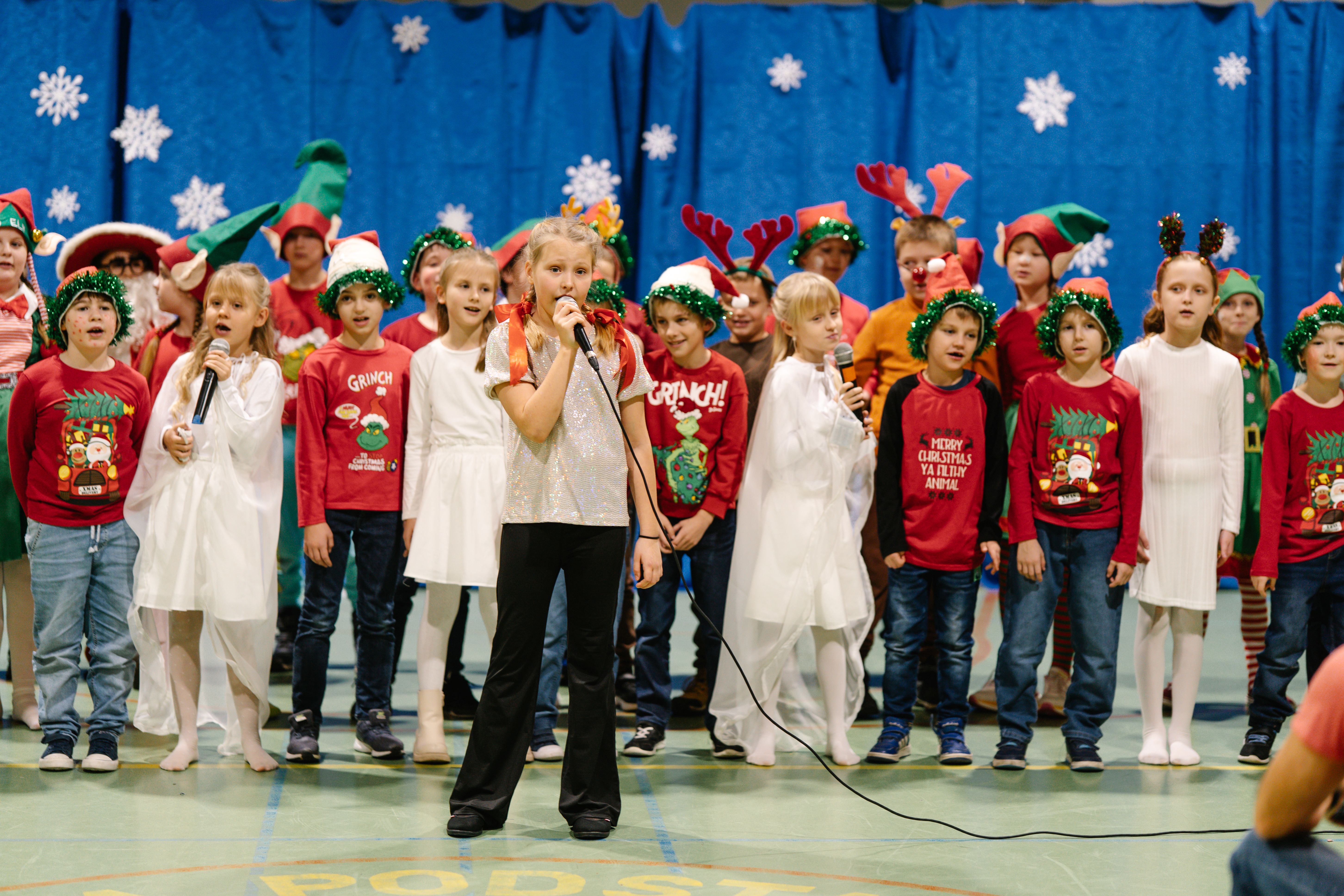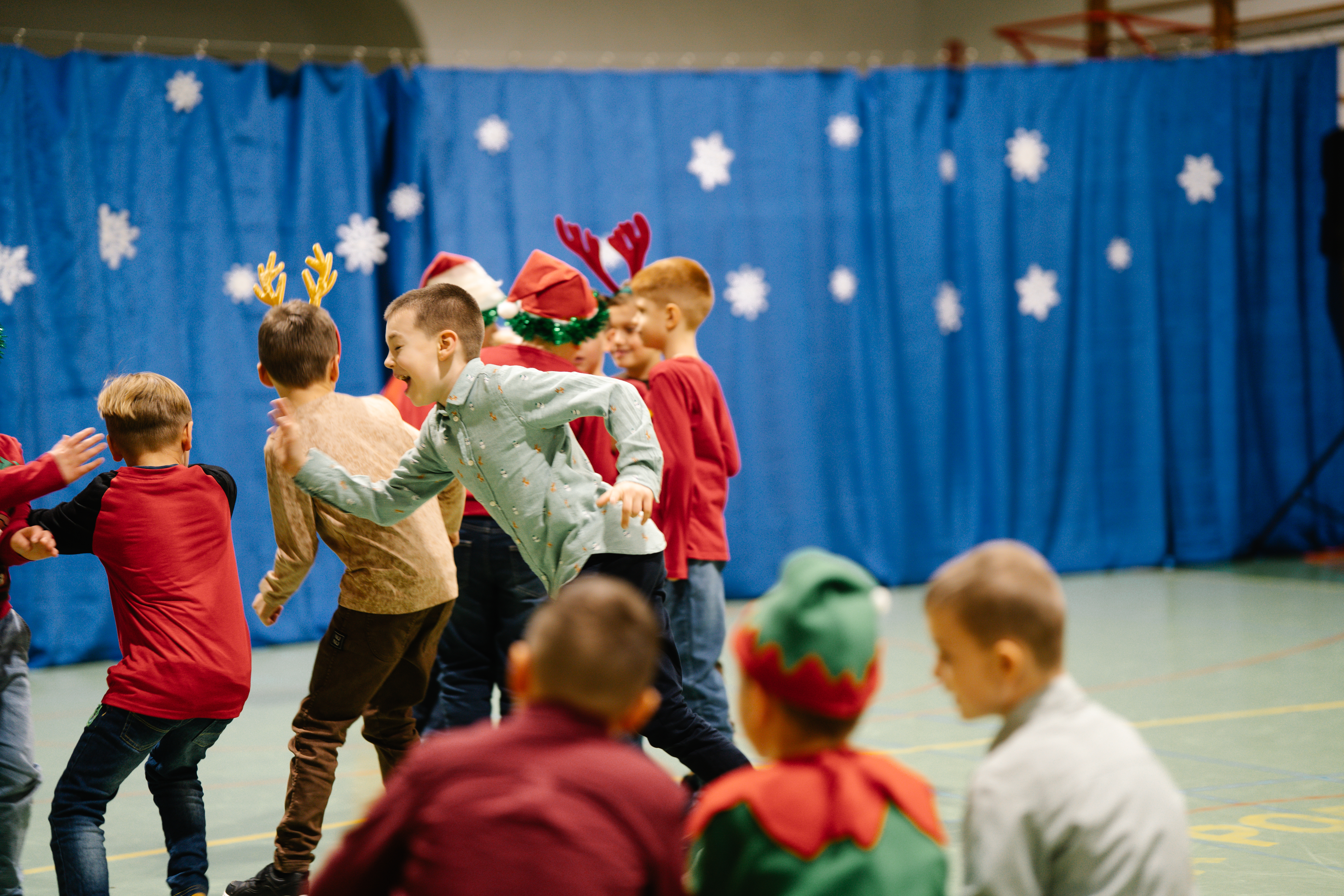 W ciepłej, świątecznej atmosferze, na udekorowanej sali gimnastycznej odbyło się wyjątkowe spotkanie świąteczne klas 2a, 2b i 2c z rodzicami. Już od progu uwagę przyciągały kolorowe dekoracje: migoczące lampki, papierowe gwiazdy oraz choinka. Na twarzach dzieci widać było lekką tremę, ale też ogromną radość – tego popołudnia miały bowiem zaprezentować długo przygotowywane przedstawienie pt. „Chore elfy”.
