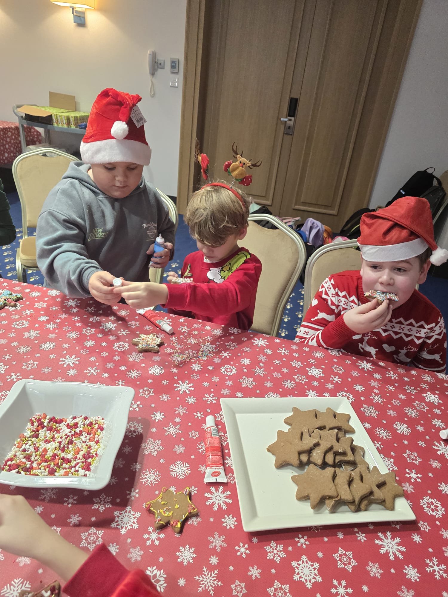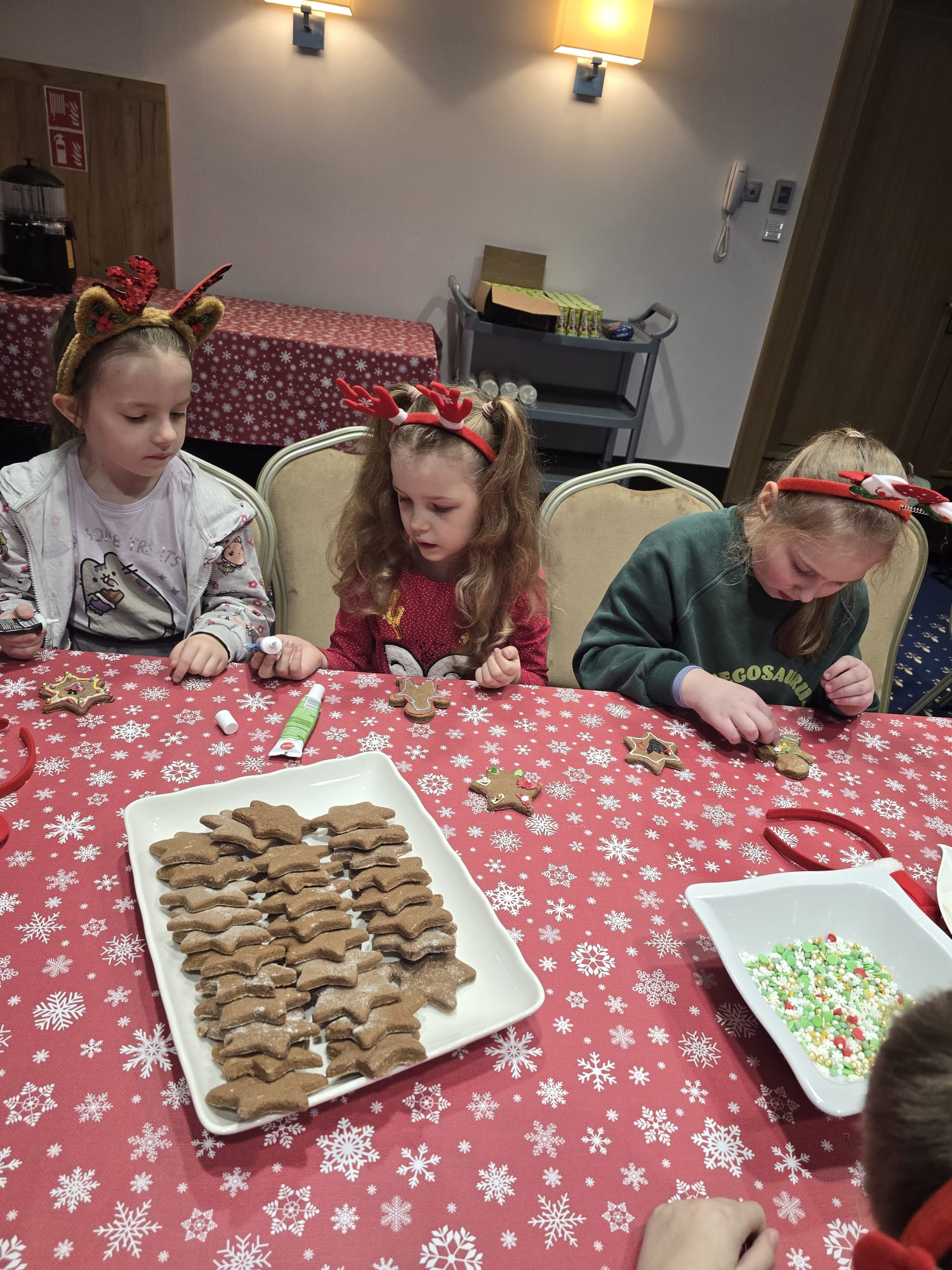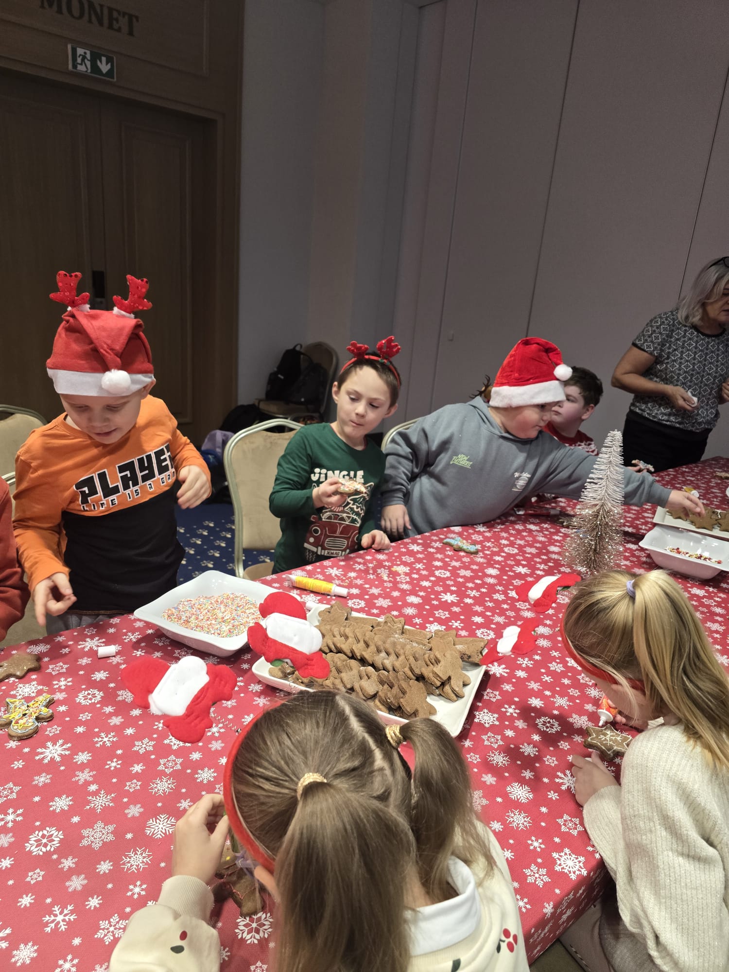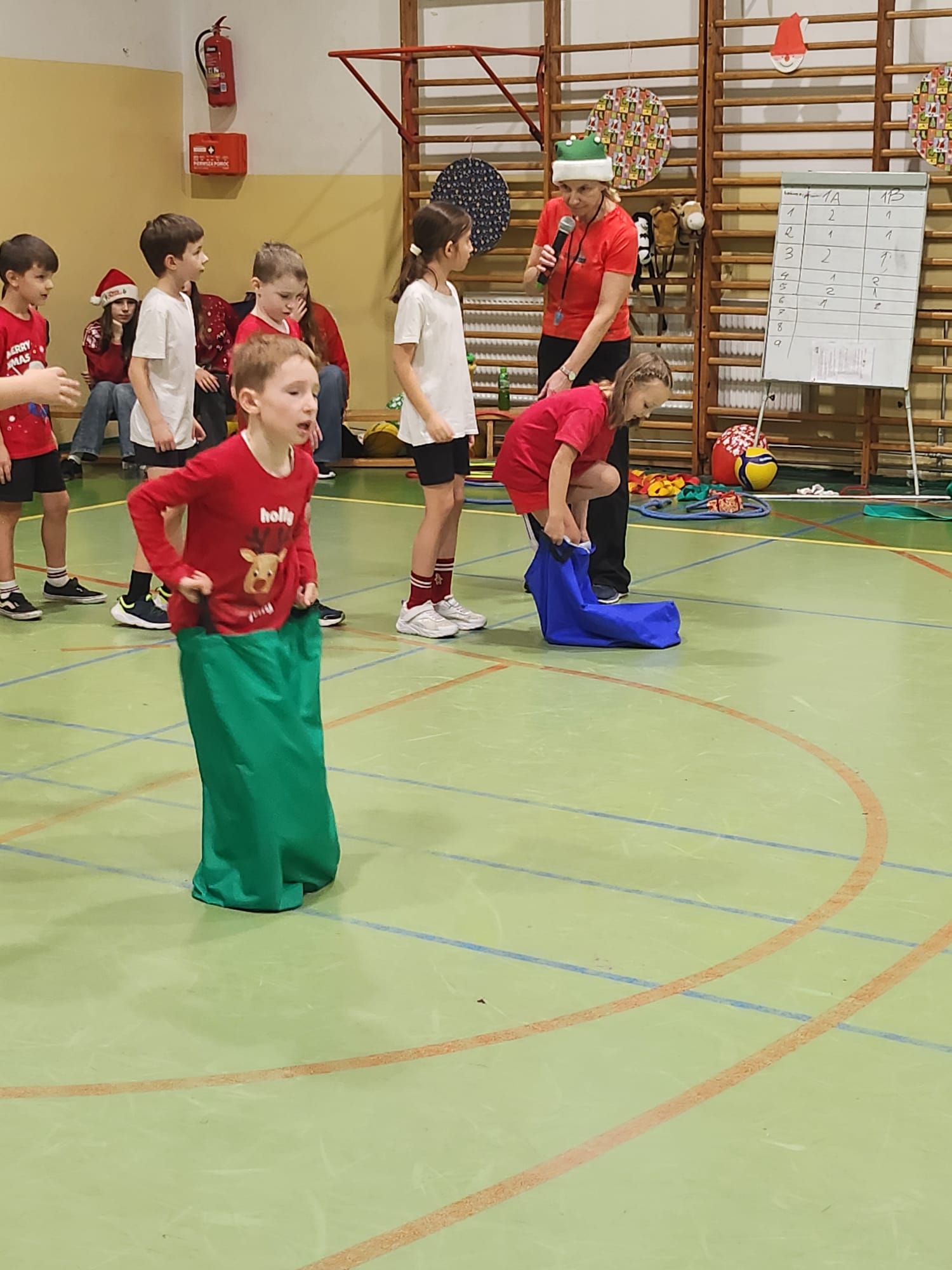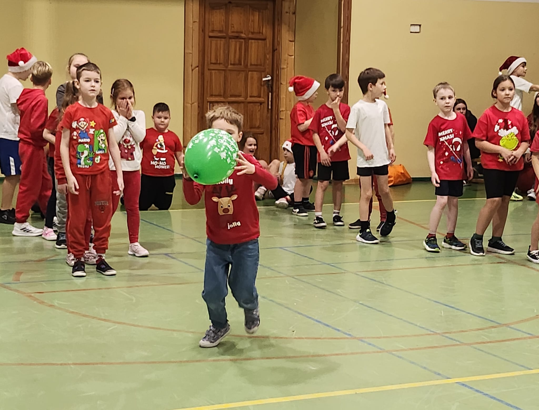Z okazji zbliżającego się czasu Bożego Narodzenia dzieci z klasy I b miały możliwość wziąć udział w warsztatach piernikowych i Mikołajowych zawodach sportowych. Zabawy i śmiechu nie było końca.