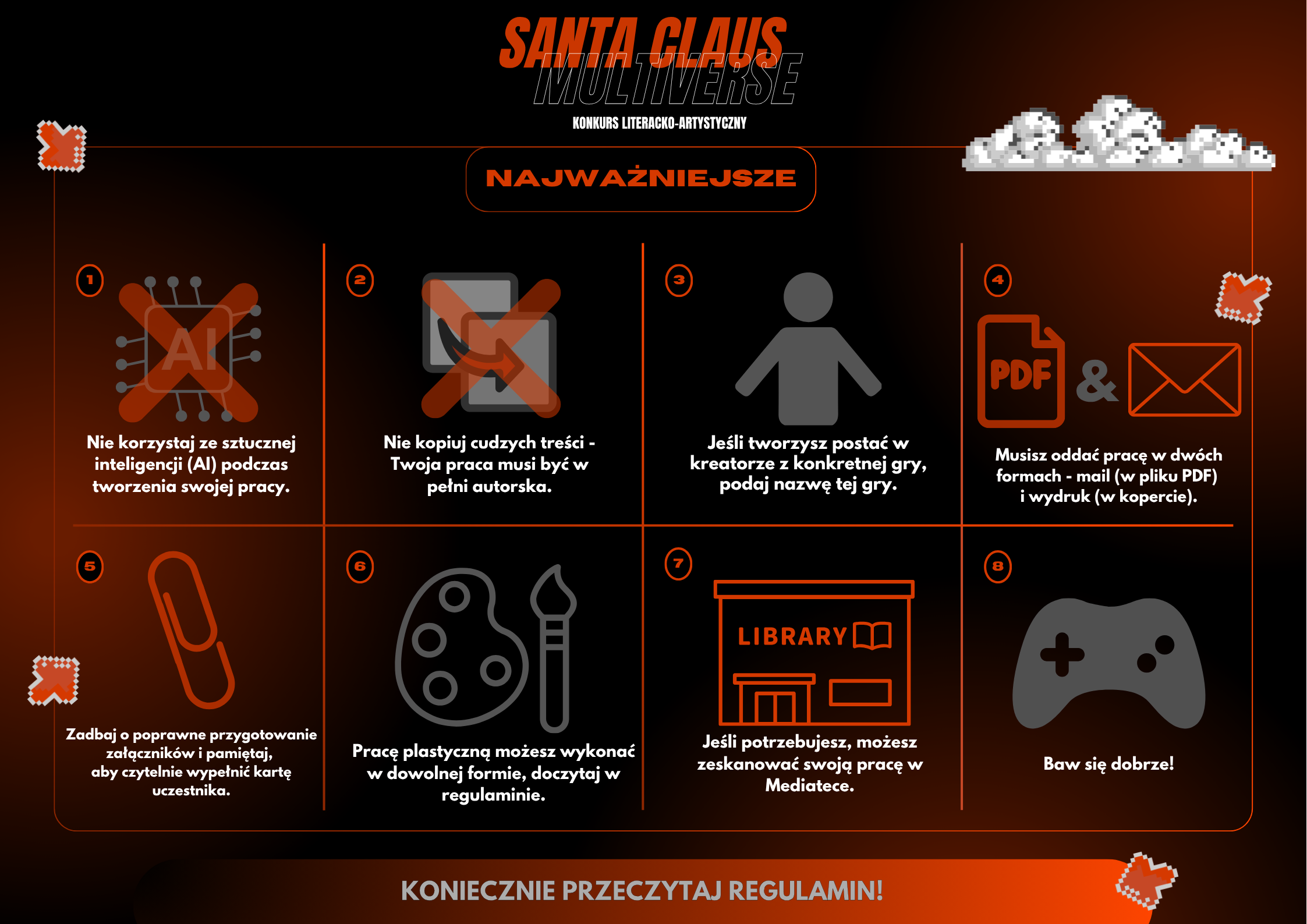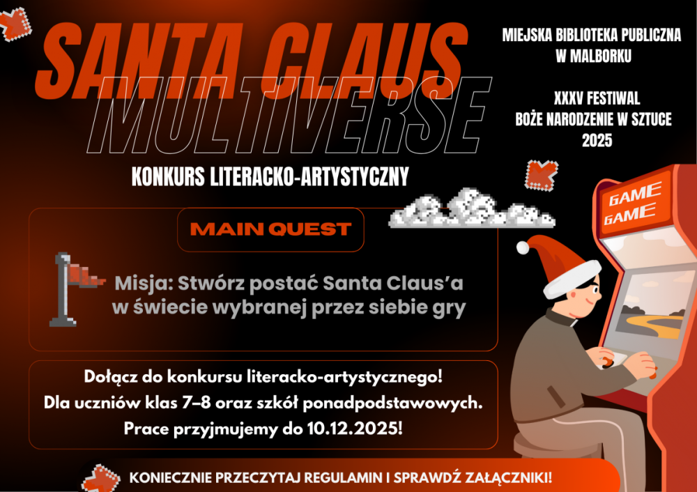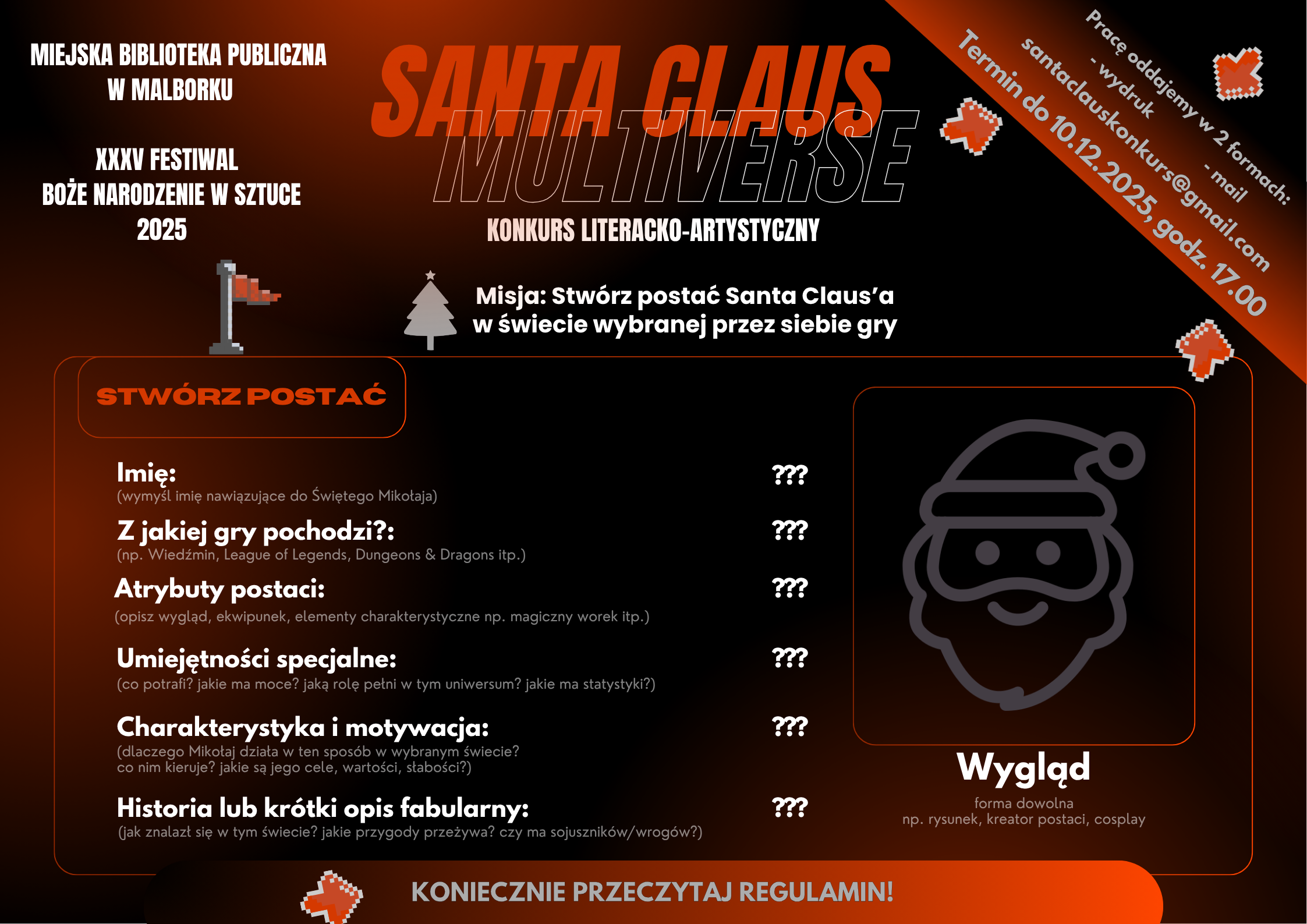 Miejska Biblioteka Publiczna w Malborku zaprasza do wzięcia udziału w konkursie Snata Claus Mutliverse. Regulamin oraz szczegóły poniżej.