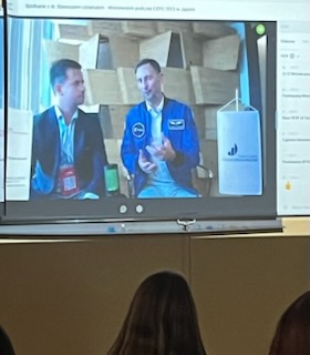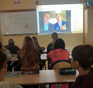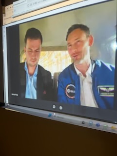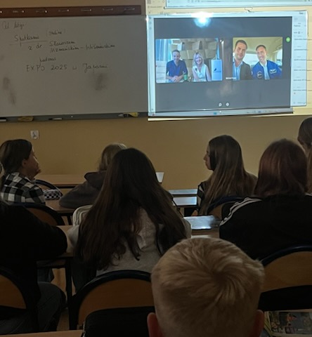 We wtorek, 30 września uczniowie klasy 6b wzięli udział w międzynarodowej lekcji online transmitowanej prosto z Polskiego Pawilonu podczas Expo 2025 w Osace w Japonii. Astronauta, naukowiec dr Sławosz Uznański-Wiśniewski, który w czerwcu tego roku jako drugi Polak w historii przebywał w przestrzeni kosmicznej, ciekawie opowiadał o pracy i doświadczeniach związanych z kosmosem.