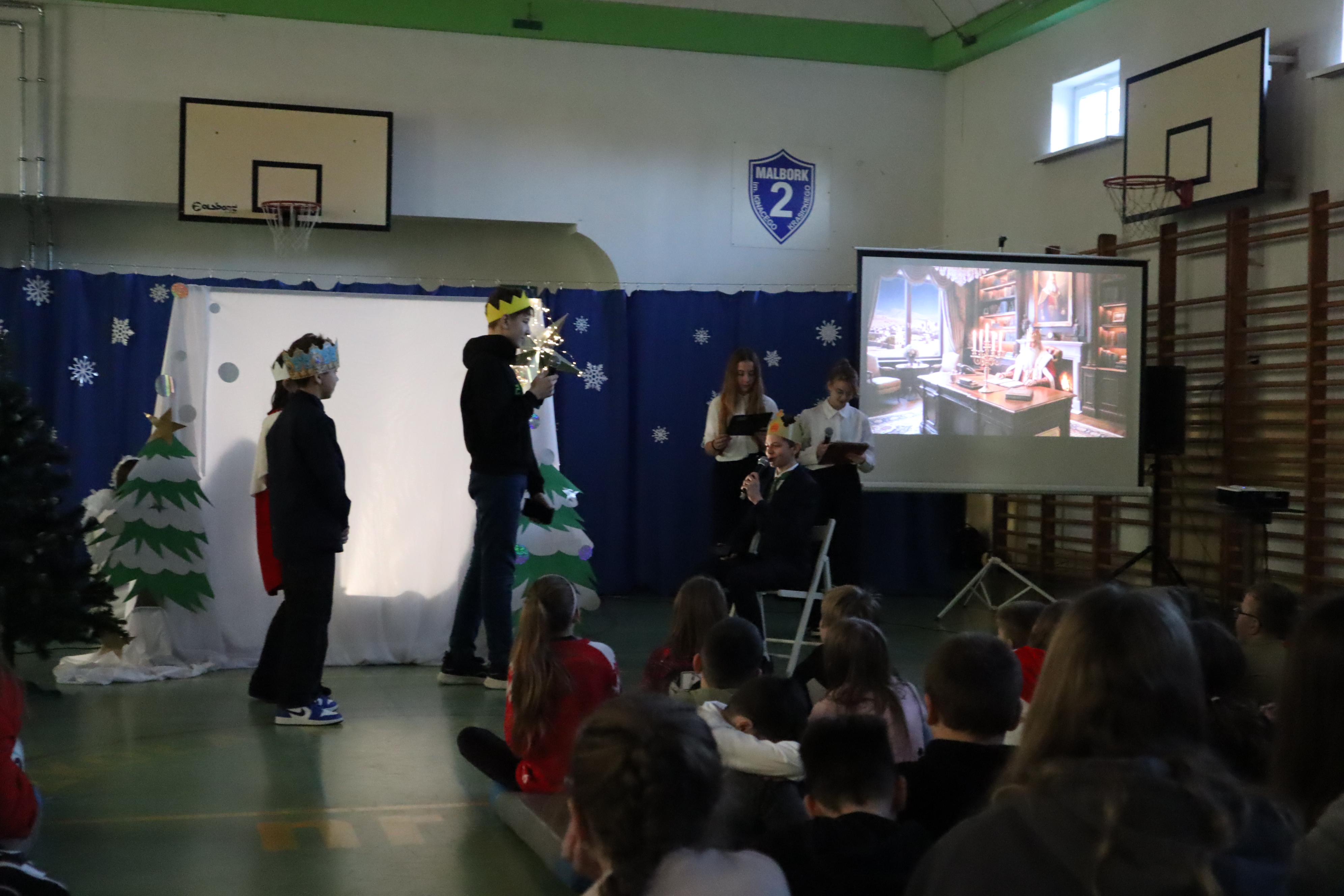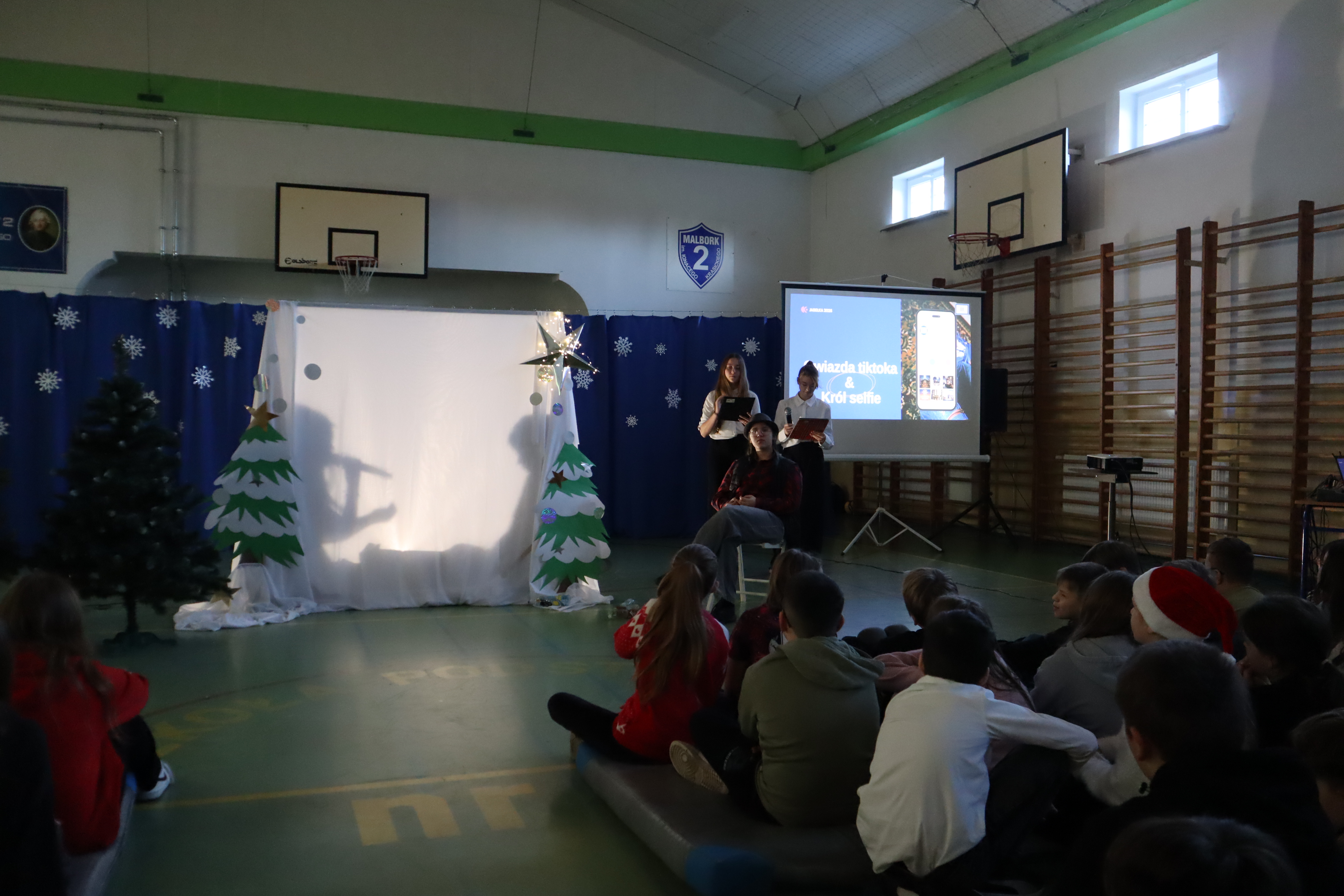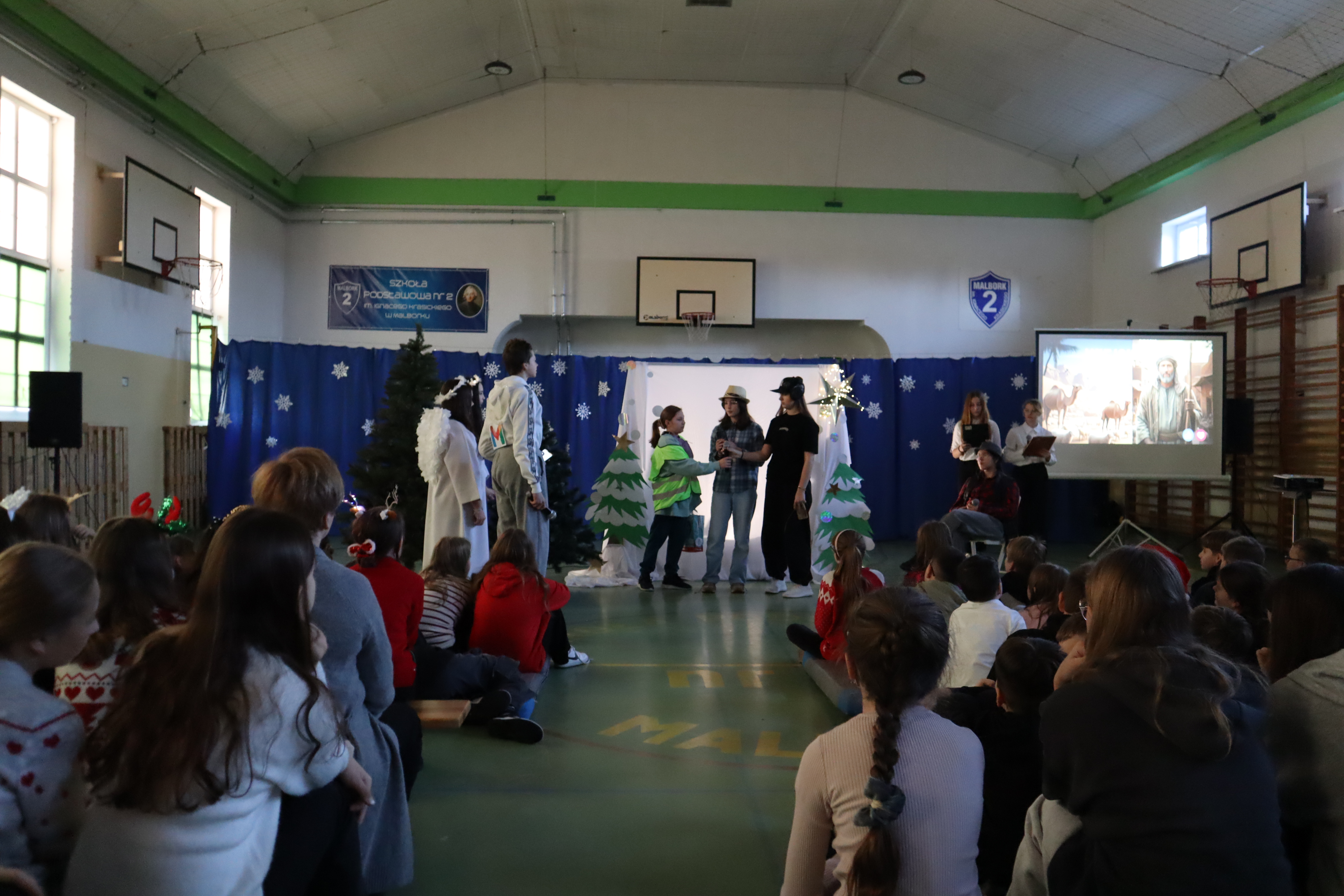 W ostatnim dniu lekcyjnym przed Świętami Bożego Narodzenia uczniowie wraz z nauczycielami obejrzeli świąteczne przedstawienie. Historia opowiadała wydarzenia sprzed 2000 lat, lecz w lekko zmieniony sposób. Trzej mędrcy szli nietylko za gwiazdą, ale wspomagali się również sygnałem GPS. Maryja z Józefem nie znależli miejsca na nocleg ponieważ nie zarezerwowali go na portalu internetowym a Anioł przekazując słowo Boga posługuje się pocztą elektroniczną. Pasterze obudzeni i posłani do powitania Jezusa relacjonują wszytsko na swoim VLOG-u. Dzięki takiemu scenariuszowi młodzi widzowie mogli porównać swoje czas z czasami Jezusa. Autorką byłą pani Diana Sokołowska z aktorami ze szkolnego koła teatralnego, jasełka ropoczęła i zakończyła kolęda w wykonaniu zespołu Fantazja pod kierunkiem pani Izabeli Tulskiej. Tło przedstawienia tworzyła prezentacja multimedialna wykonana przez pana Sebastiana Olszewskiego. Deokrację wykonała pani Katarzyna Pietrzak oraz pani Dagmara Morawska przy pomocy pana Marcina Zająca