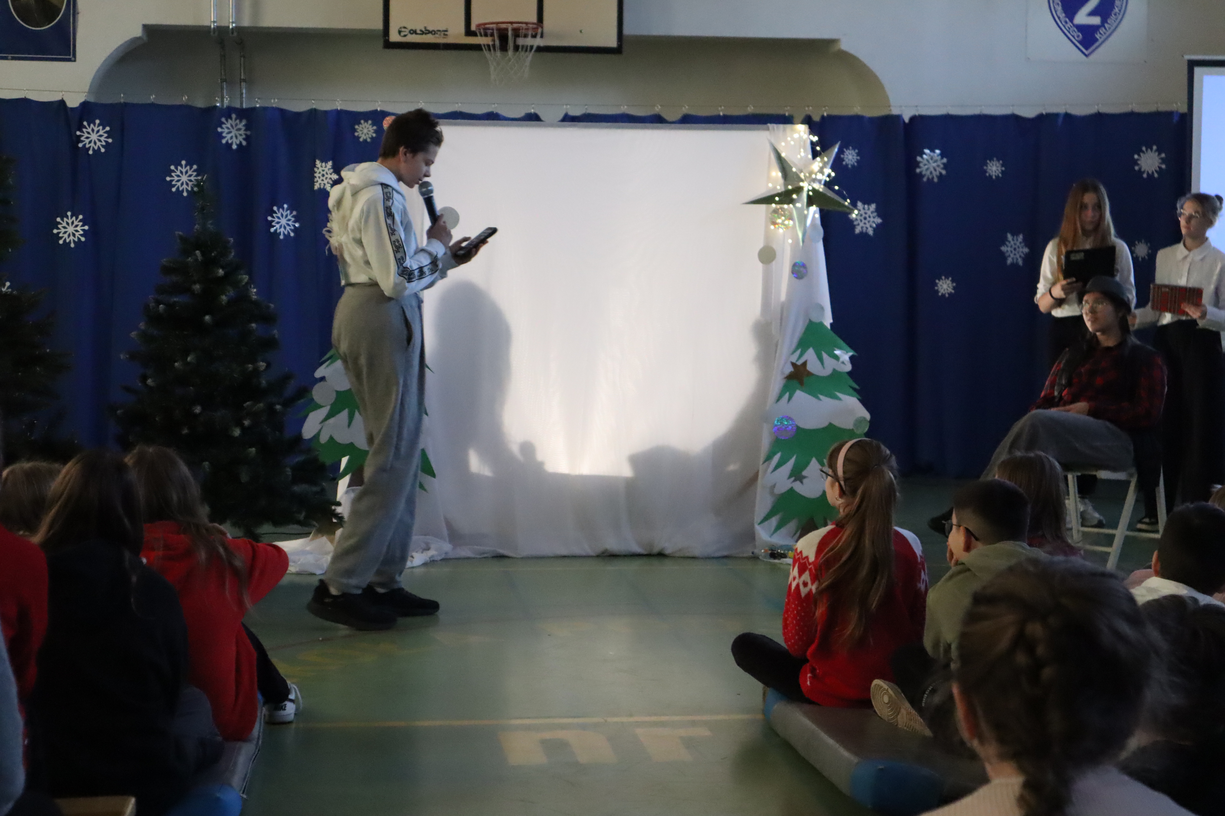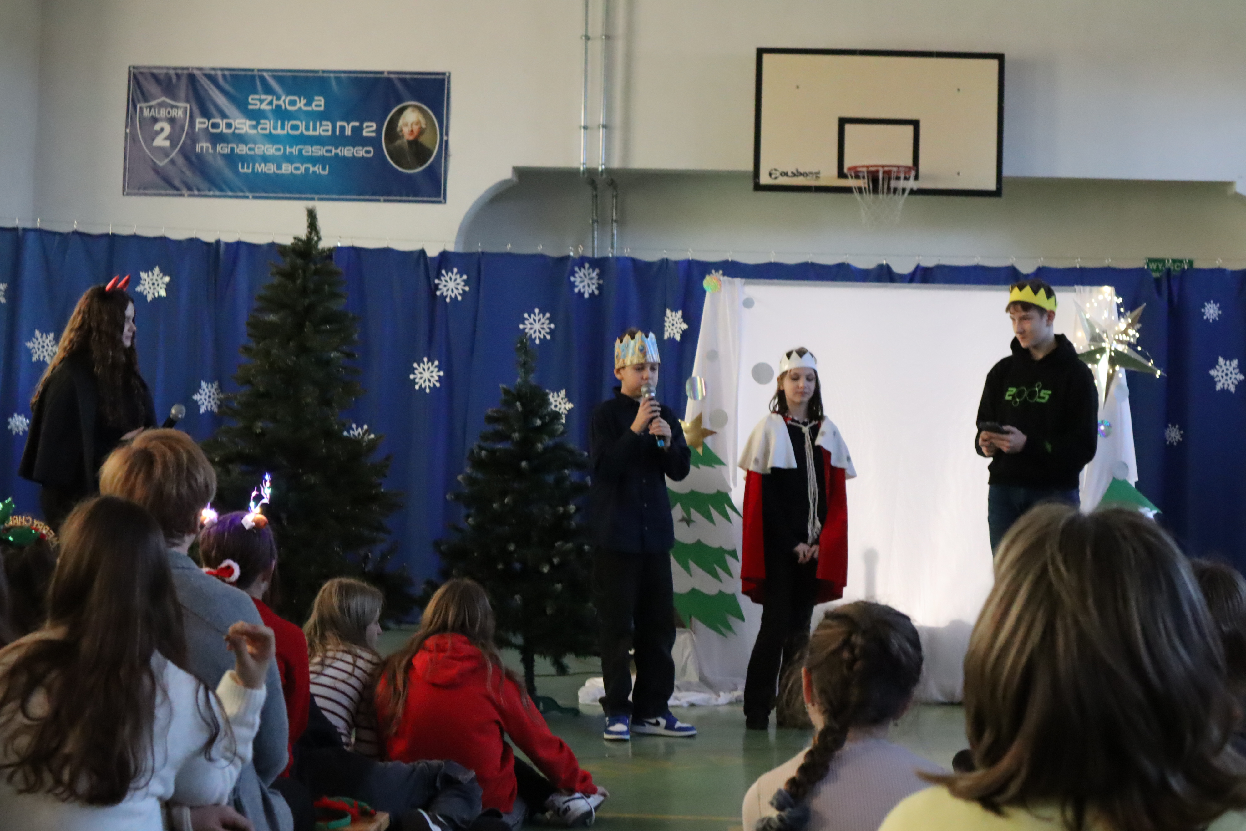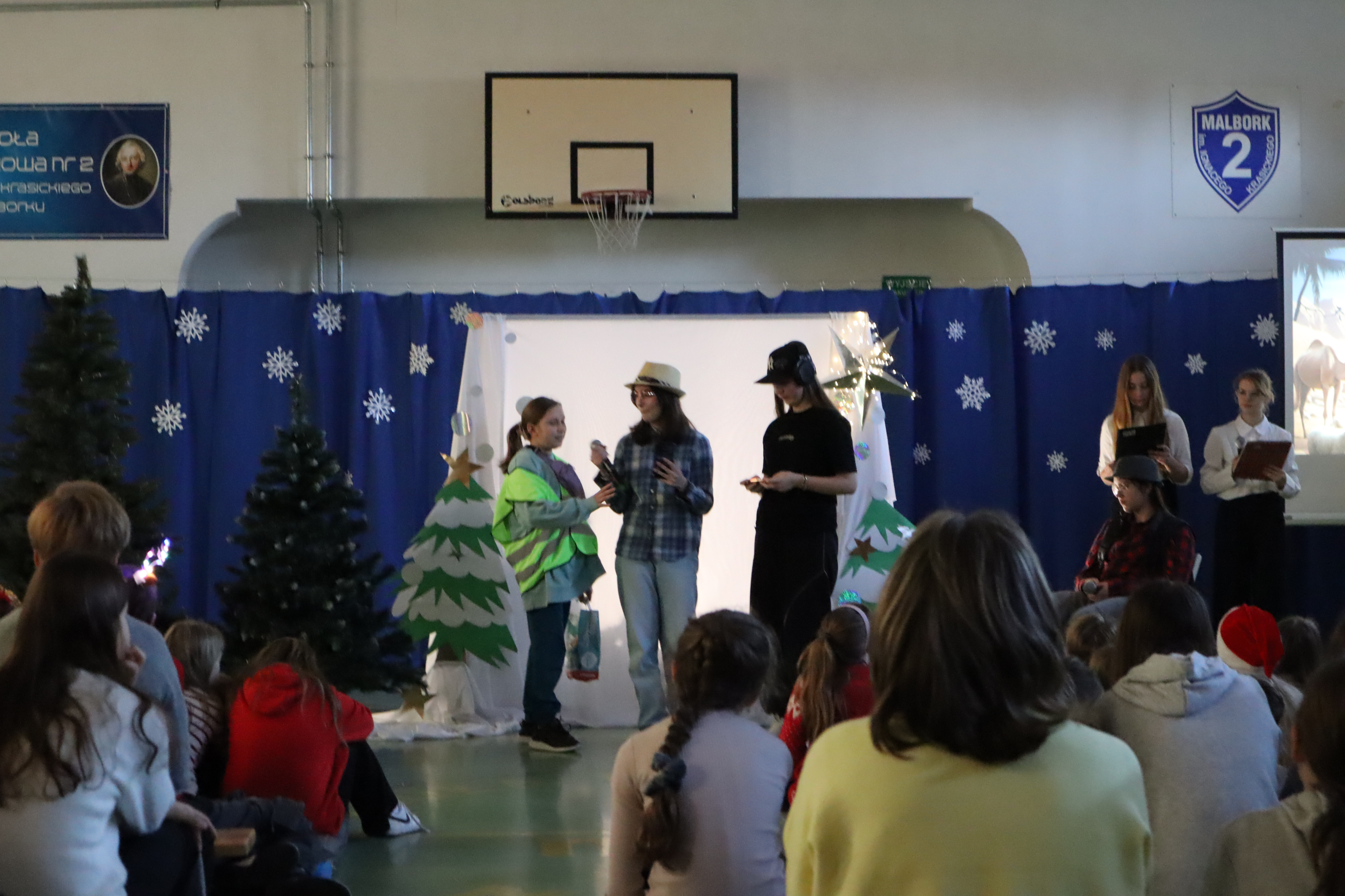 W ostatnim dniu lekcyjnym przed Świętami Bożego Narodzenia uczniowie wraz z nauczycielami obejrzeli świąteczne przedstawienie. Historia opowiadała wydarzenia sprzed 2000 lat, lecz w lekko zmieniony sposób. Trzej mędrcy szli nietylko za gwiazdą, ale wspomagali się również sygnałem GPS. Maryja z Józefem nie znależli miejsca na nocleg ponieważ nie zarezerwowali go na portalu internetowym a Anioł przekazując słowo Boga posługuje się pocztą elektroniczną. Pasterze obudzeni i posłani do powitania Jezusa relacjonują wszytsko na swoim VLOG-u. Dzięki takiemu scenariuszowi młodzi widzowie mogli porównać swoje czas z czasami Jezusa. Autorką byłą pani Diana Sokołowska z aktorami ze szkolnego koła teatralnego, jasełka ropoczęła i zakończyła kolęda w wykonaniu zespołu Fantazja pod kierunkiem pani Izabeli Tulskiej. Tło przedstawienia tworzyła prezentacja multimedialna wykonana przez pana Sebastiana Olszewskiego. Deokrację wykonała pani Katarzyna Pietrzak oraz pani Dagmara Morawska przy pomocy pana Marcina Zająca