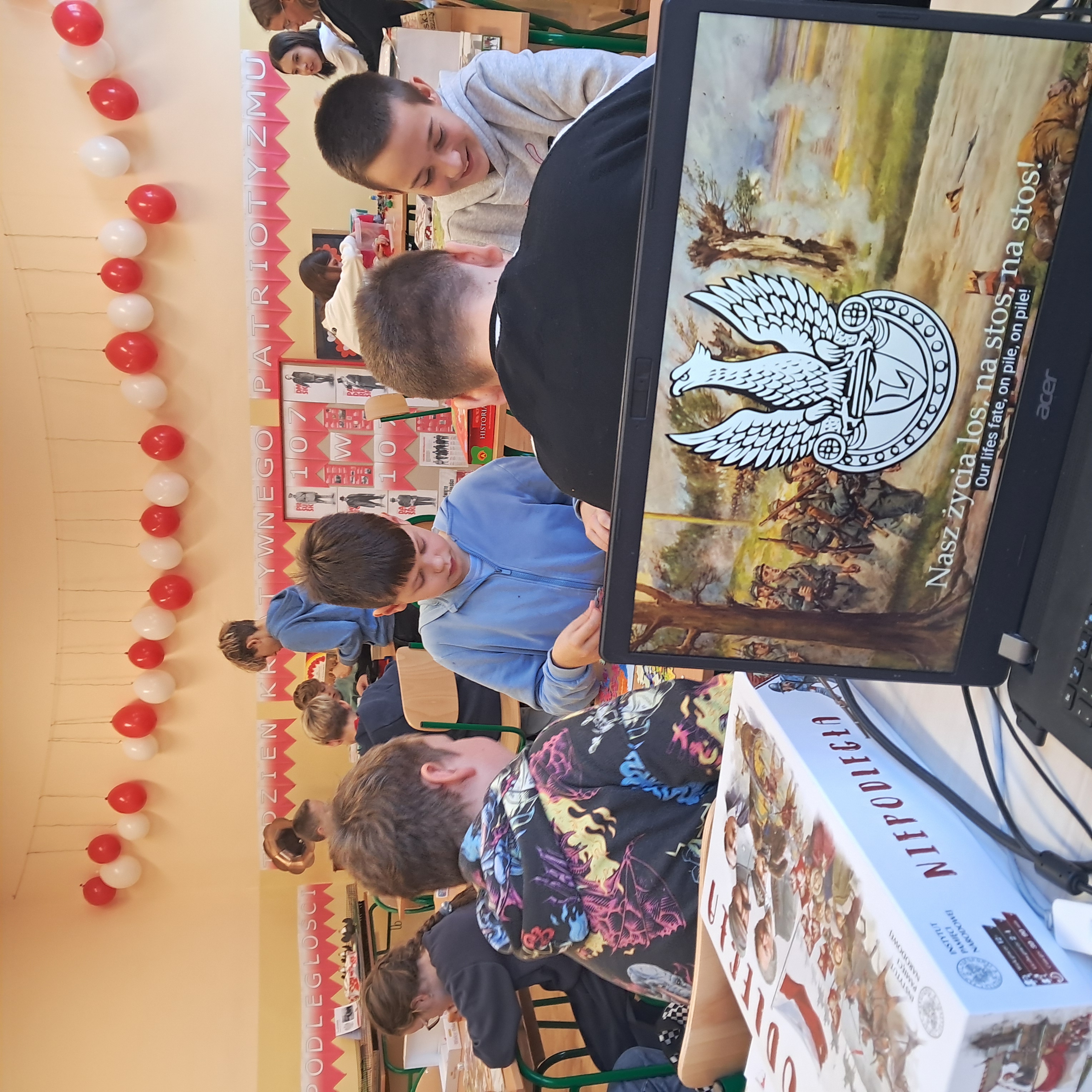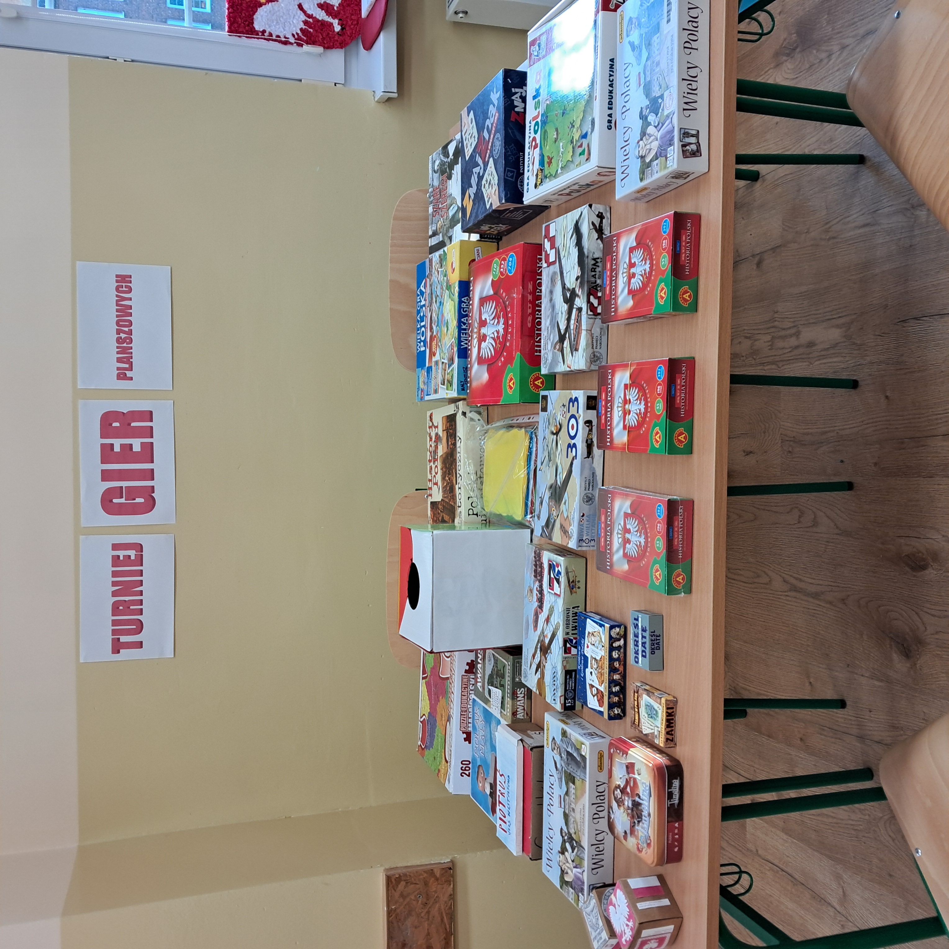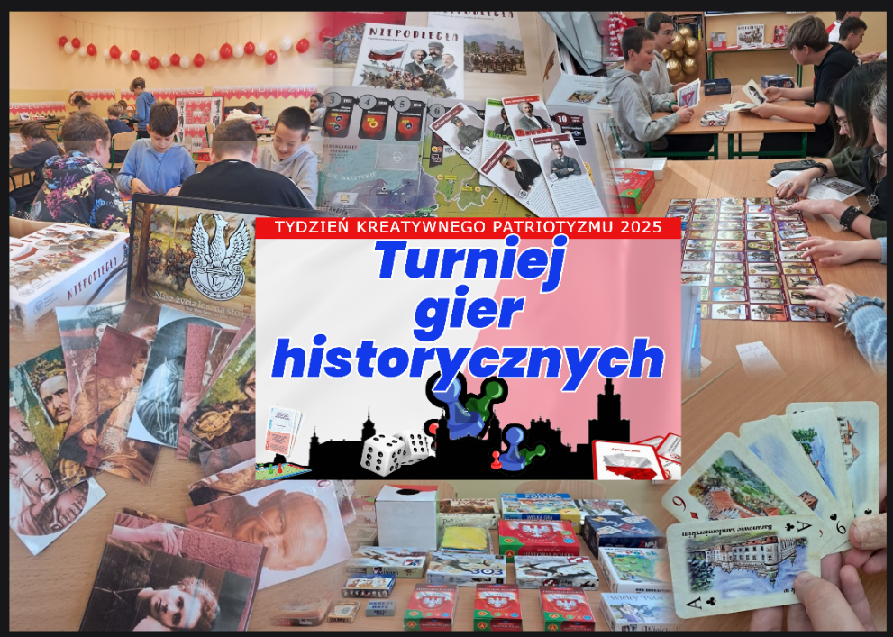 W środę 5 listopada, w sali do historii odbył się turniej gier historycznych, który wywołał sporo pozytywnych emocji w graczach. Pojawiły się takie gry jak „Niepodległa”, „ Wielcy Polacy”, „ Nasza Polska” i wiele innych gier przyniesionych do szkoły przez uczniów i nauczycieli. Rozgrywkom towarzyszyła muzyka – pieśni patriotyczne, pieśni o wolności ,a także muzyka z lat 20 i 30 -stych płynąca wprost z Patefonu Niepodległości. Kto chciał mógł radośnie grać i śpiewać.