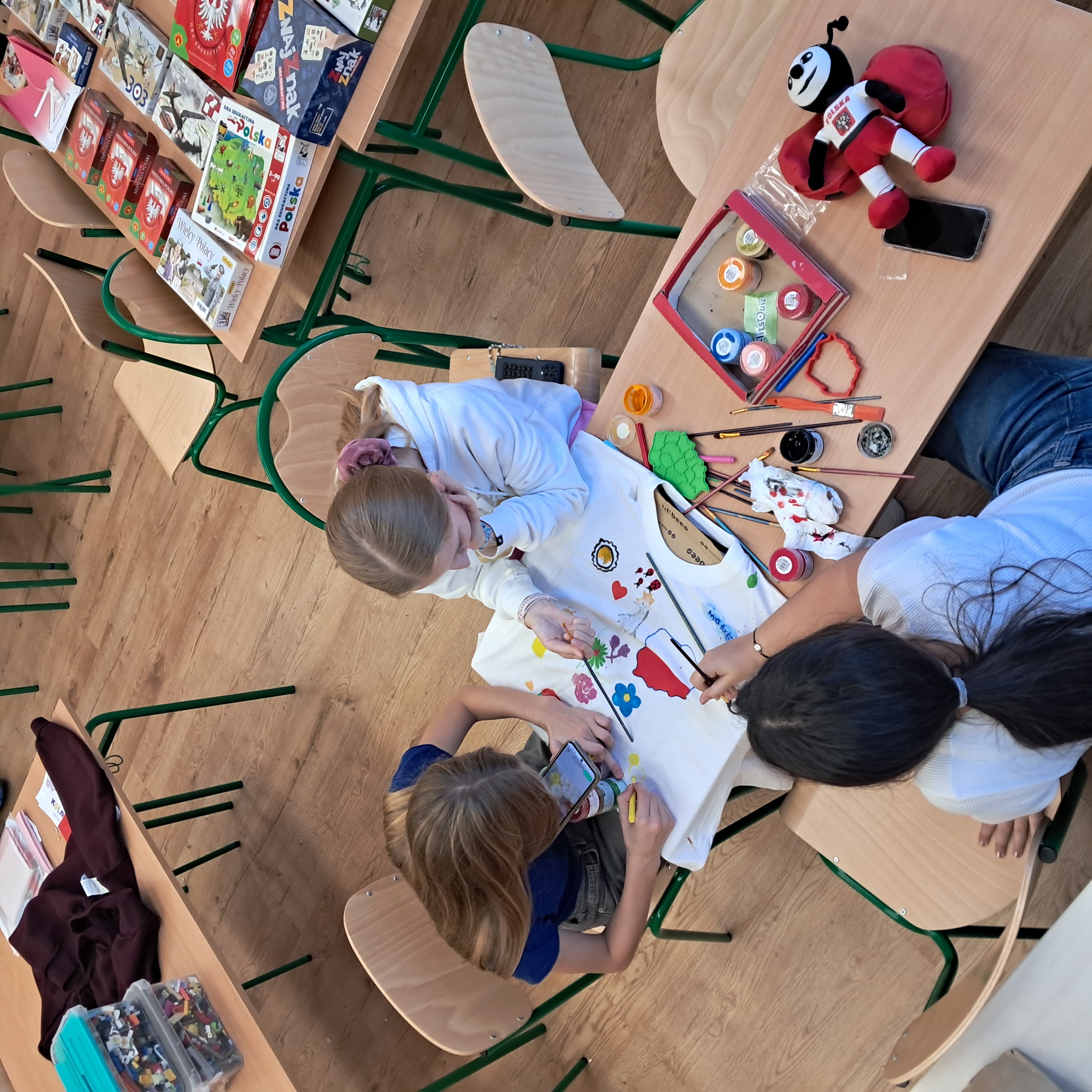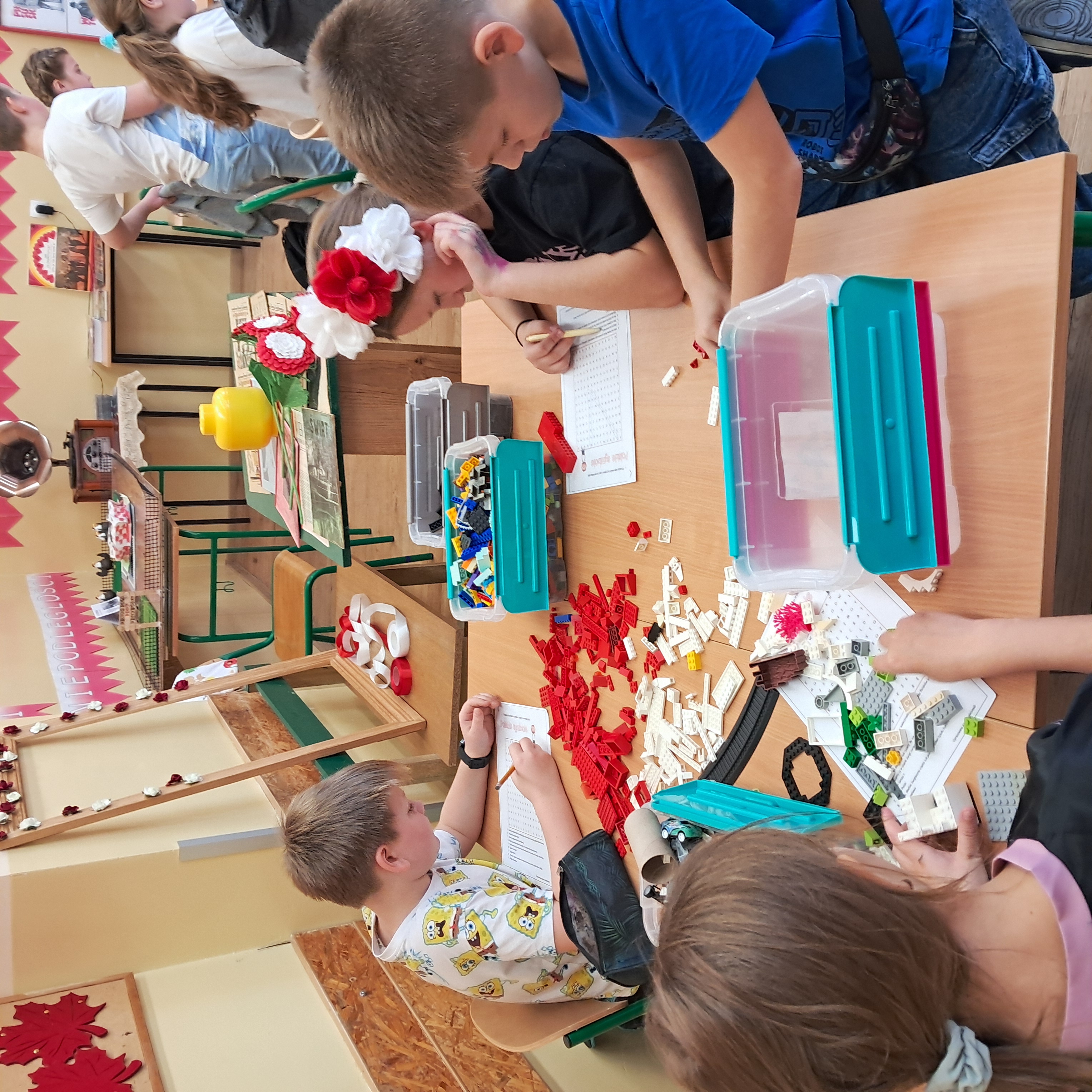 Wielu uczniów przyniosło lapbooki i inne ręcznie wykonane prace nawiązujące tematycznie do 11 listopada. Pojawiły się także prace wykonane przez rodziców i seniorów. Lubiący rysować ozdabiali „Koszulkę Wielkiego Patrioty” symbolami kojarzącymi się z Polską dawną i współczesną.