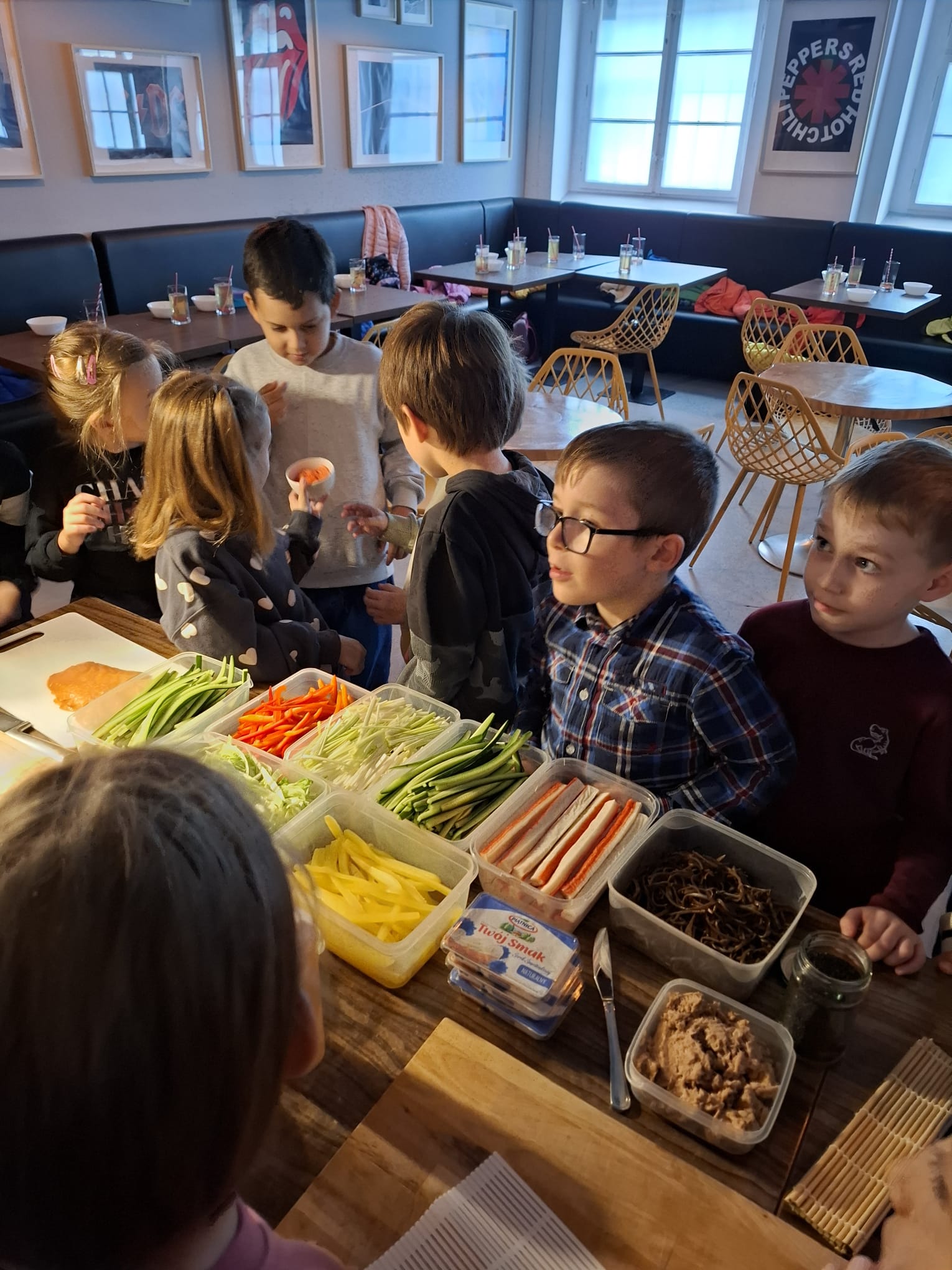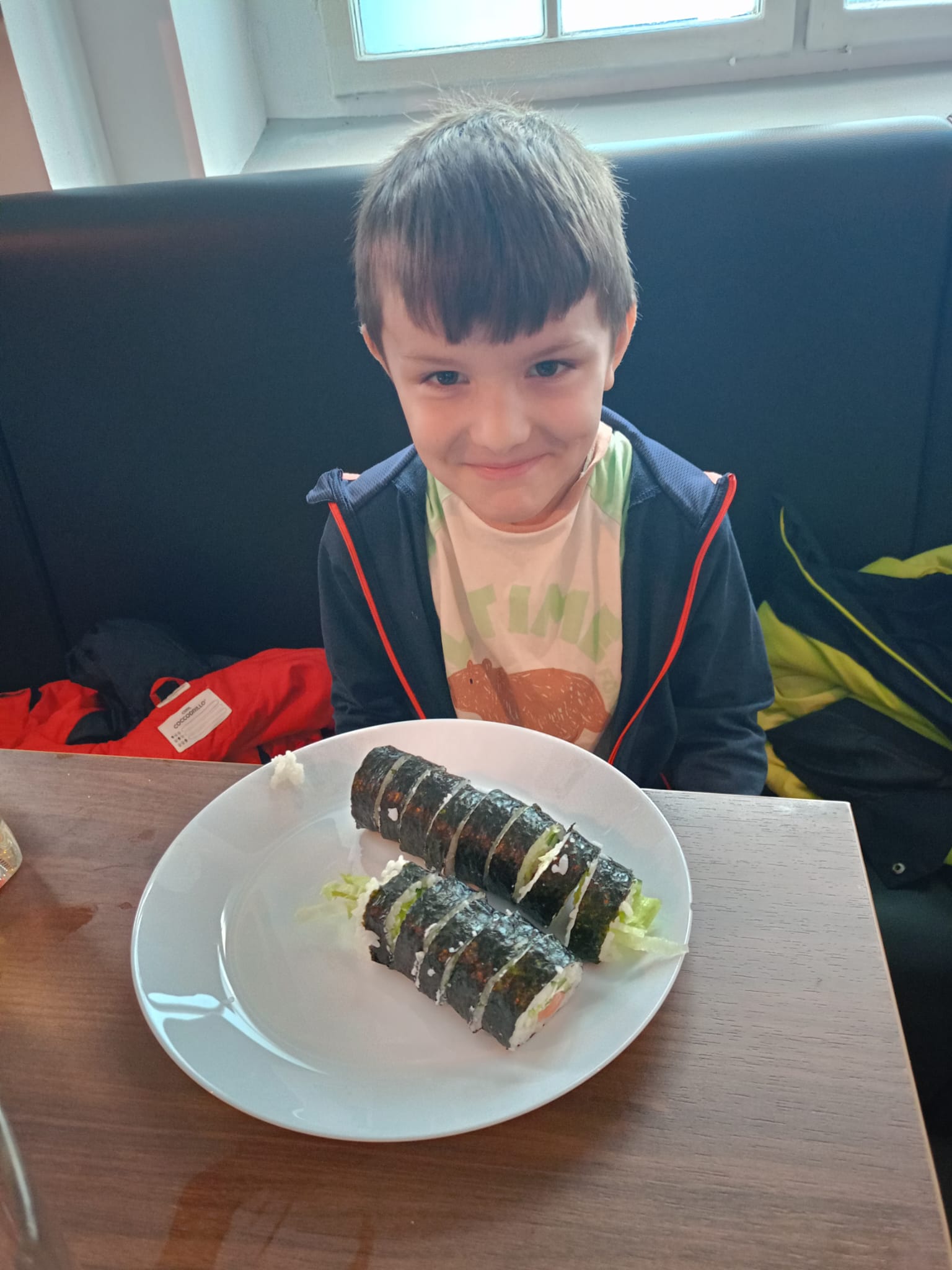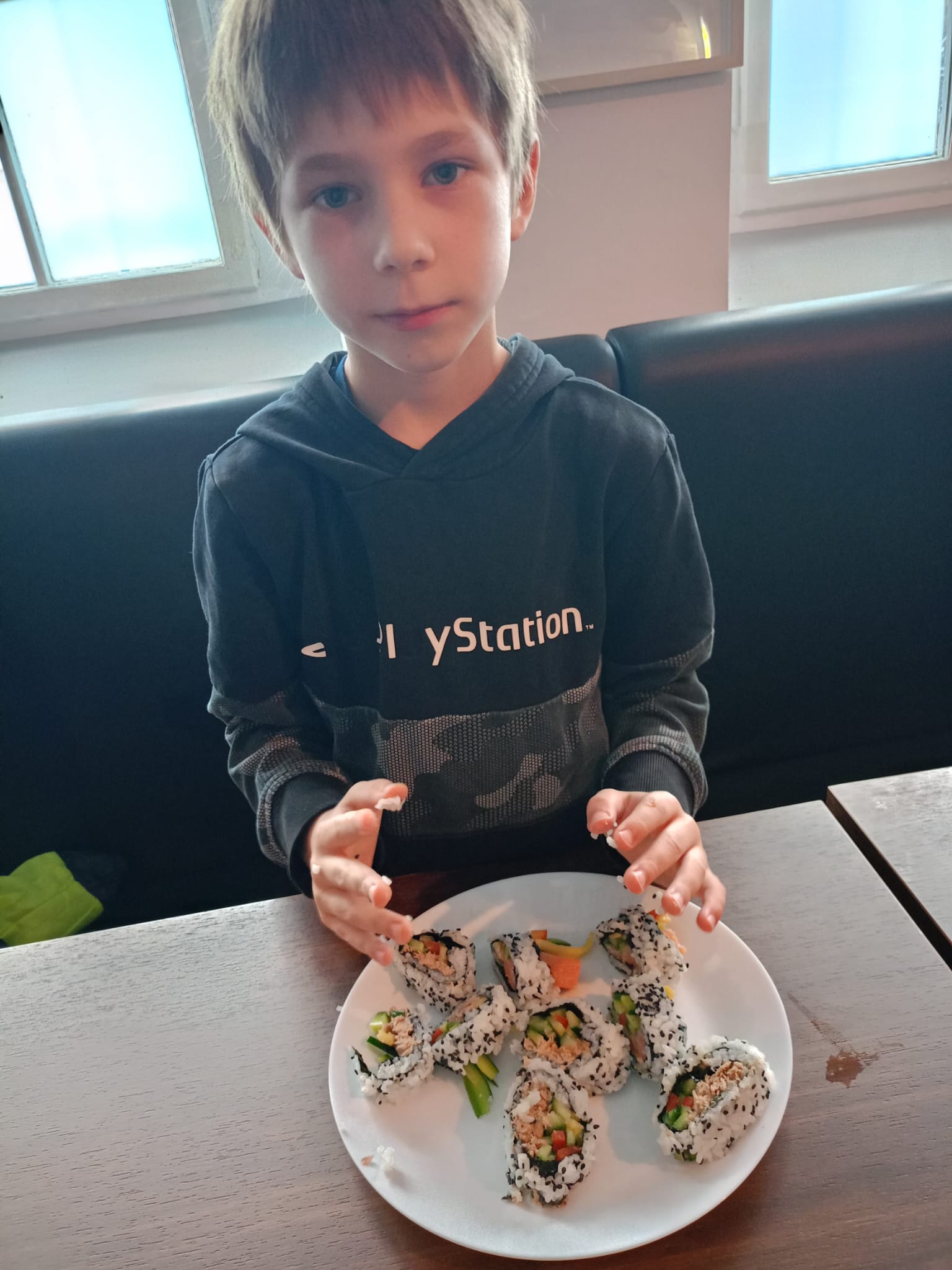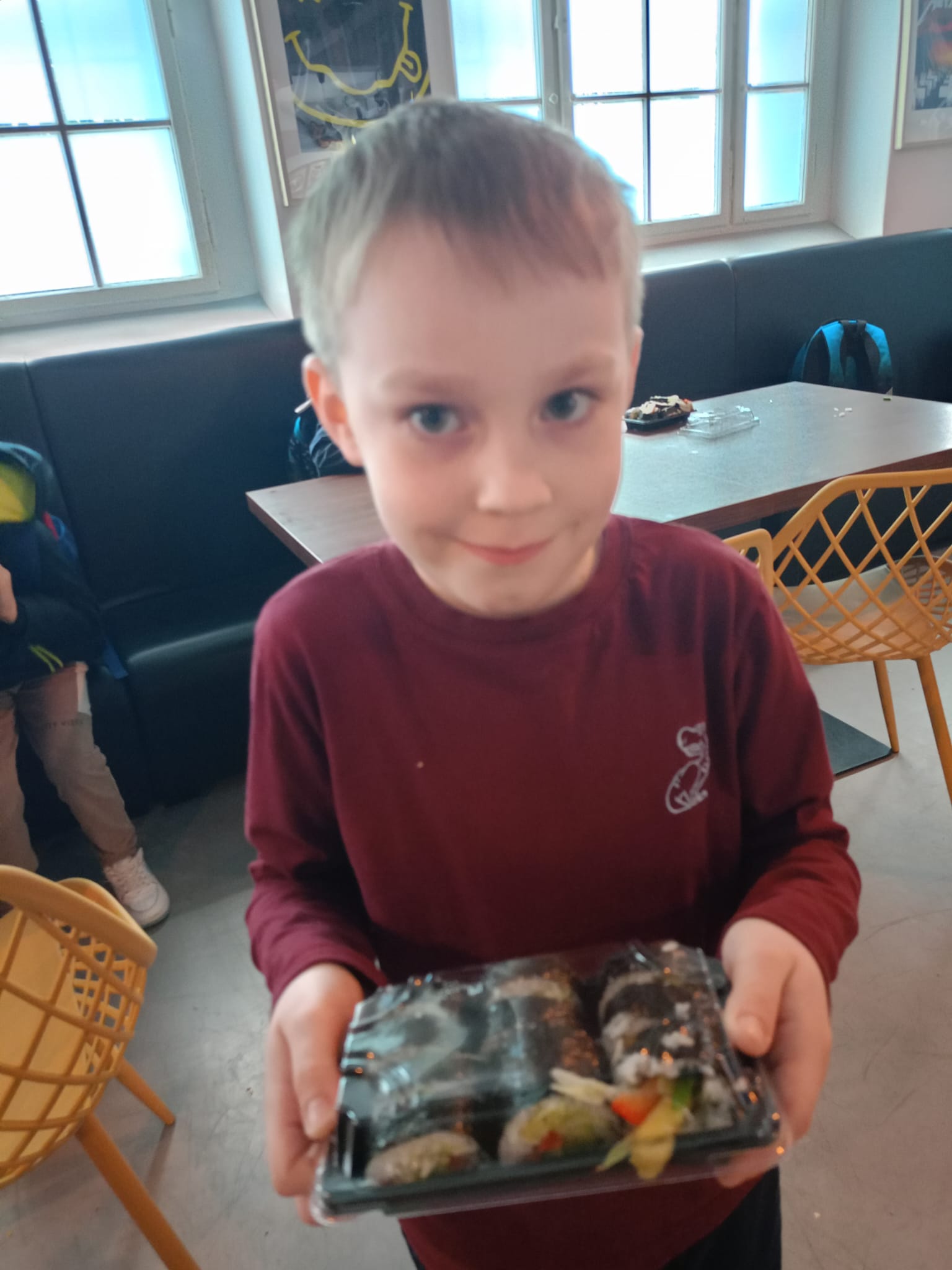 Klasa 1a wybrała się dzisiaj na warsztaty kulinarne do "CieKawa KluboKawiarnia". Uczniowie zapoznali się ze składnikami, z których przyrządza się sushi, a następnie każdy przygotował swoją rolkę. Dzieci z wielkim zaciekawieniem i zaangażowaniem uczestniczyły w zajęciach. Nie tylko warsztaty okazały się jednak wielką atrakcją, ale również wspólny przejazd komunikacją miejską ?