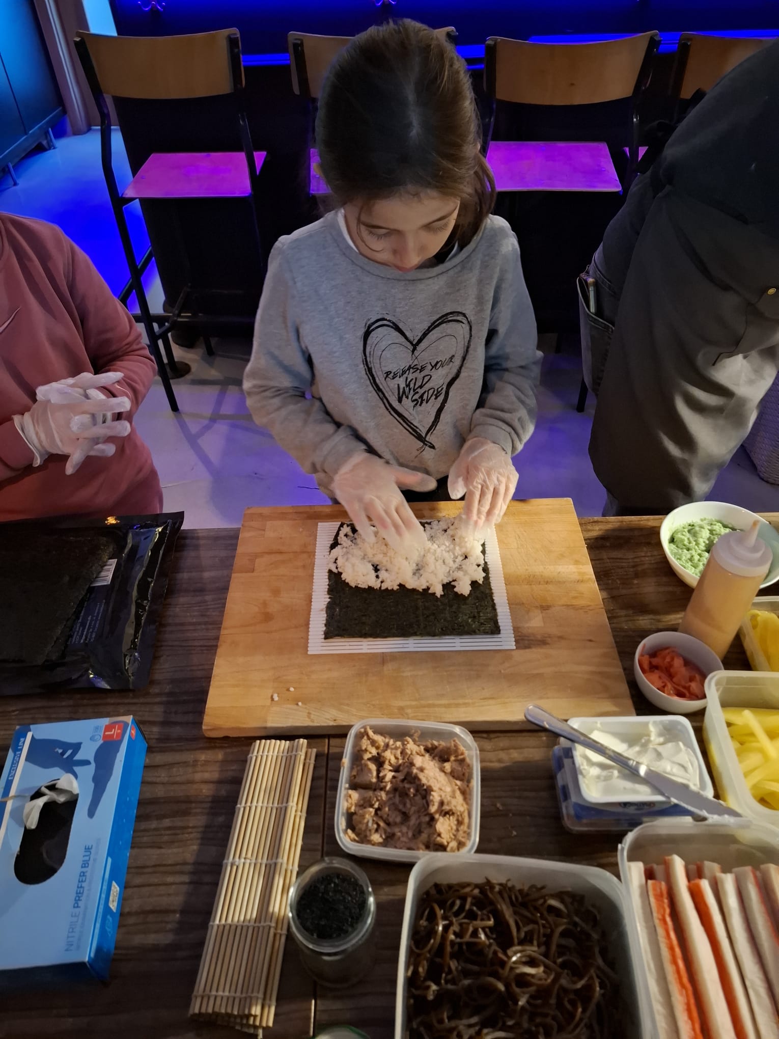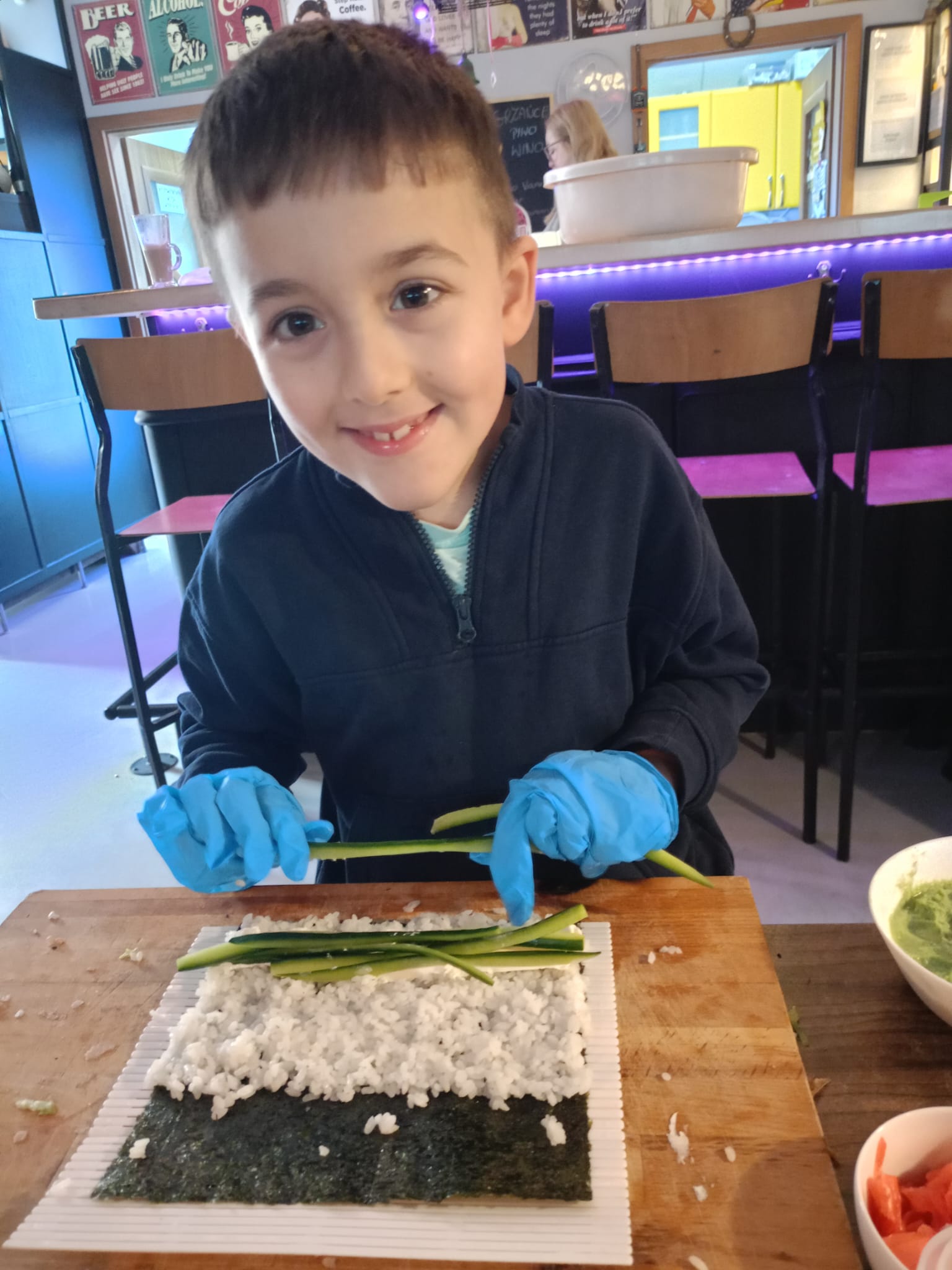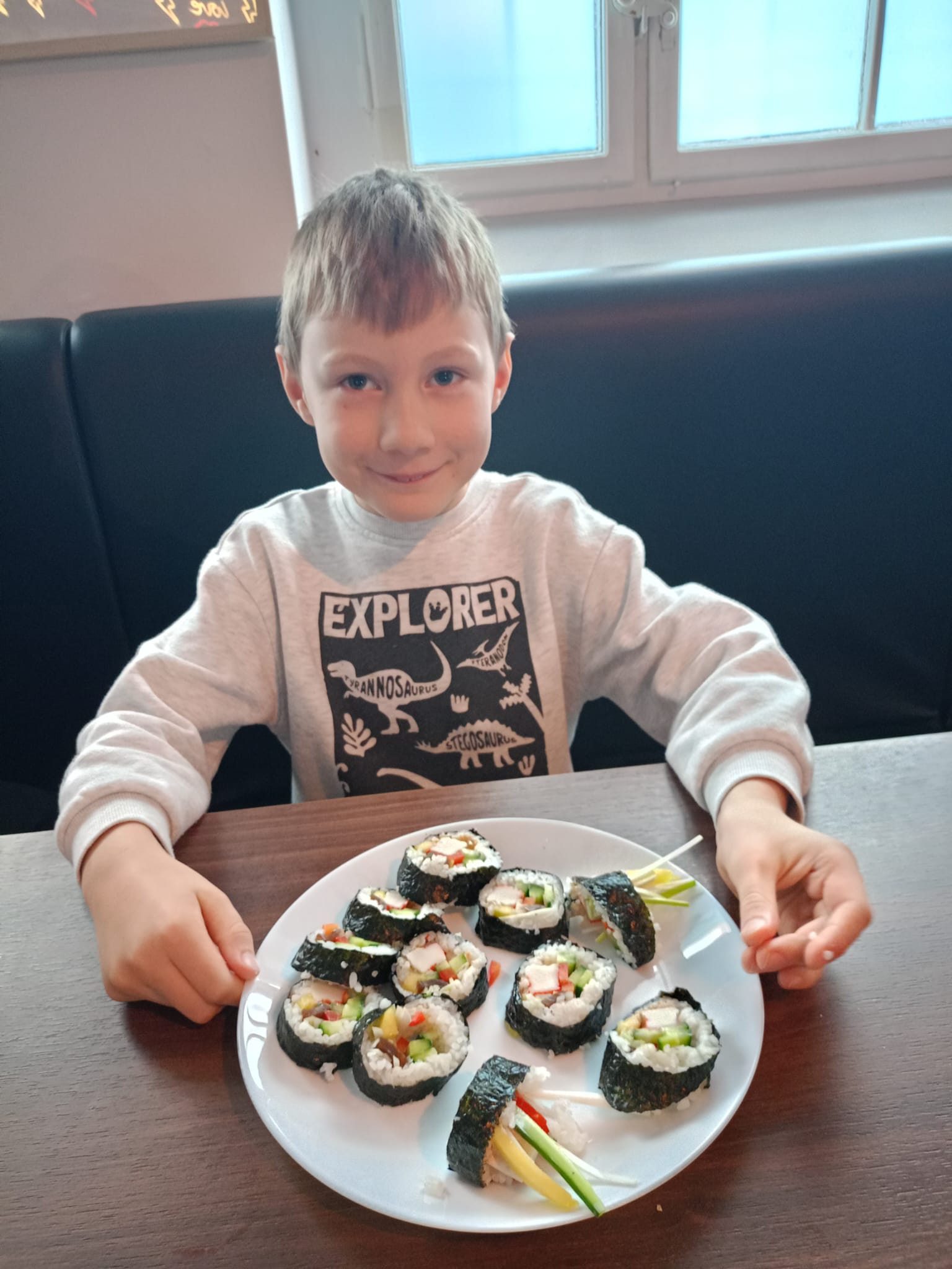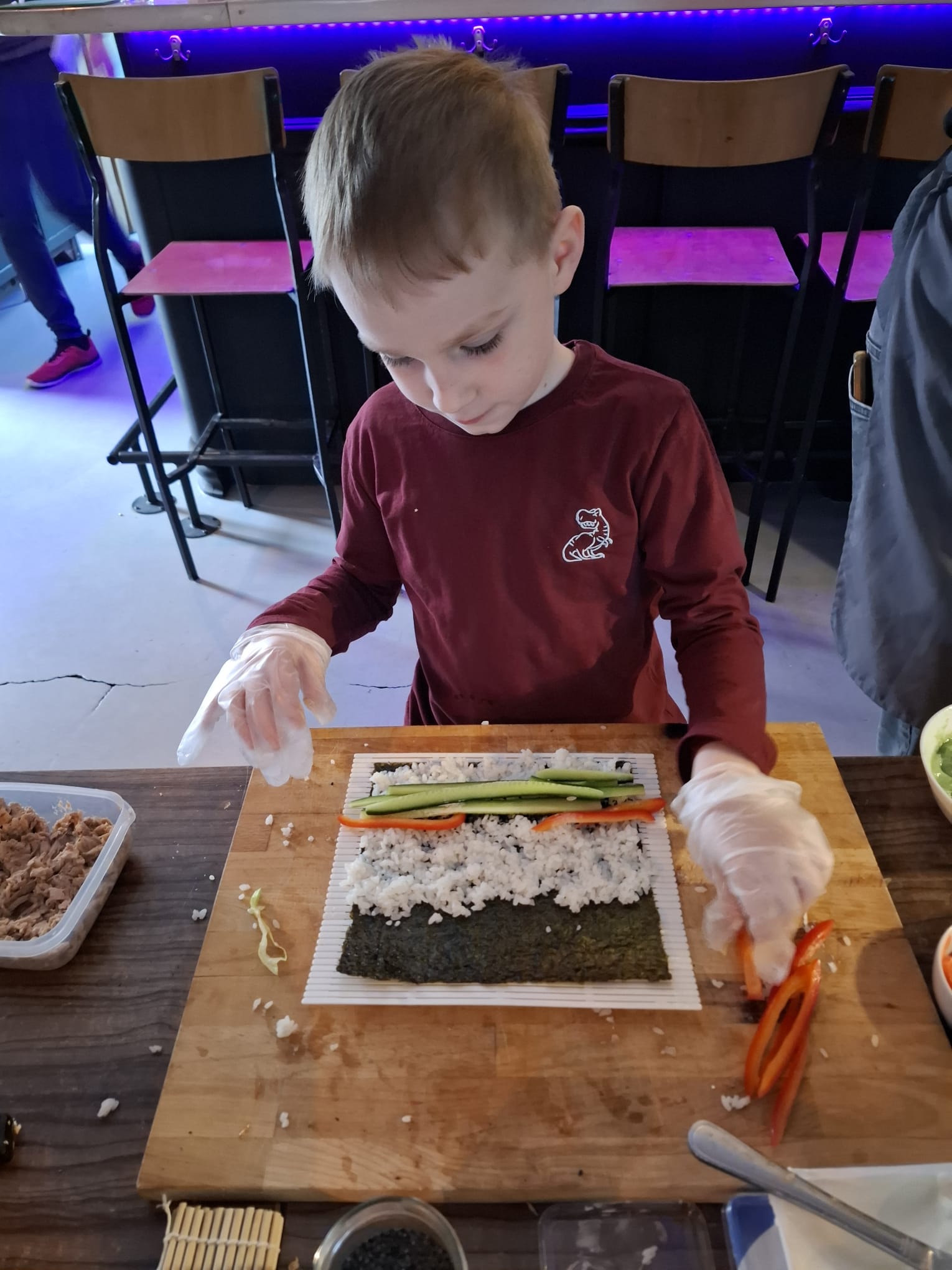 Klasa 1a wybrała się dzisiaj na warsztaty kulinarne do "CieKawa KluboKawiarnia". Uczniowie zapoznali się ze składnikami, z których przyrządza się sushi, a następnie każdy przygotował swoją rolkę. Dzieci z wielkim zaciekawieniem i zaangażowaniem uczestniczyły w zajęciach. Nie tylko warsztaty okazały się jednak wielką atrakcją, ale również wspólny przejazd komunikacją miejską ?