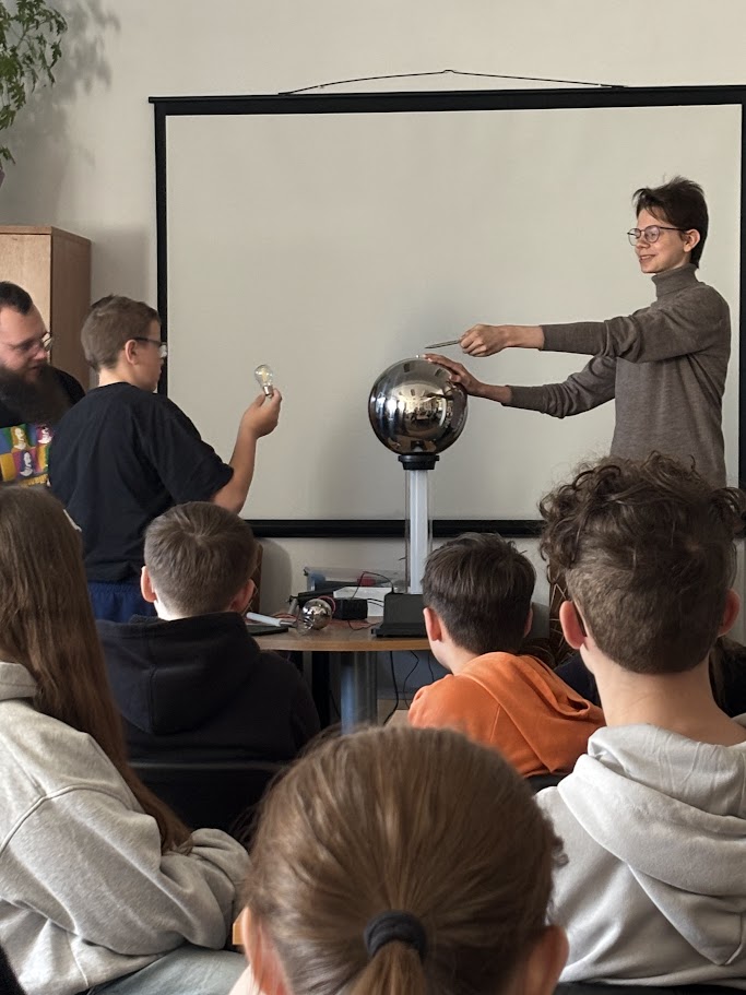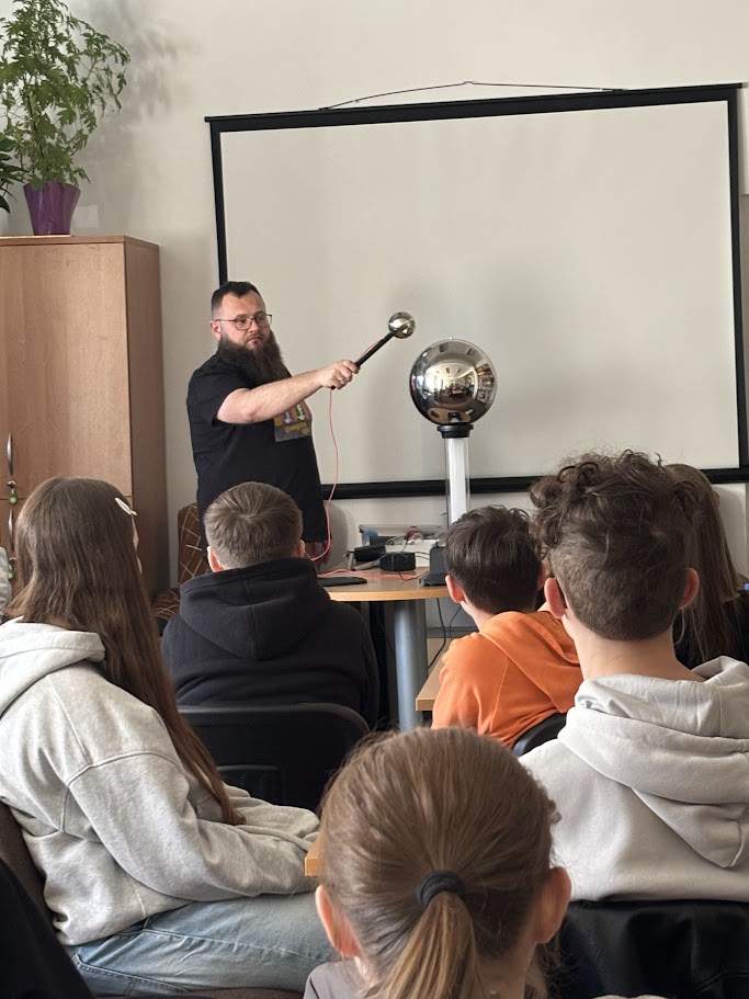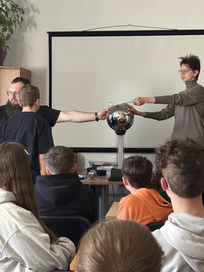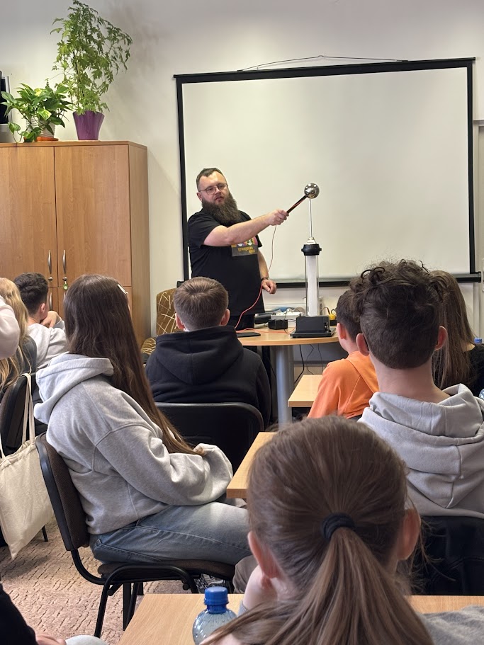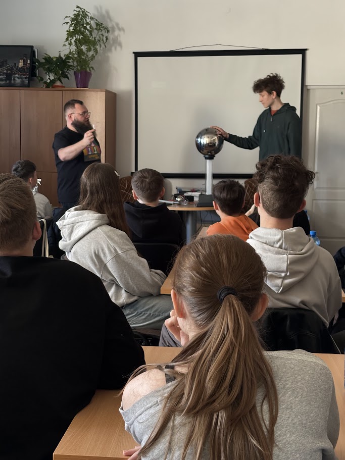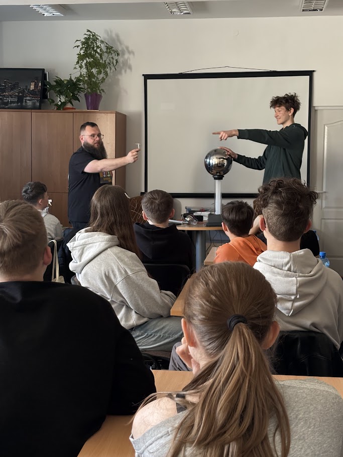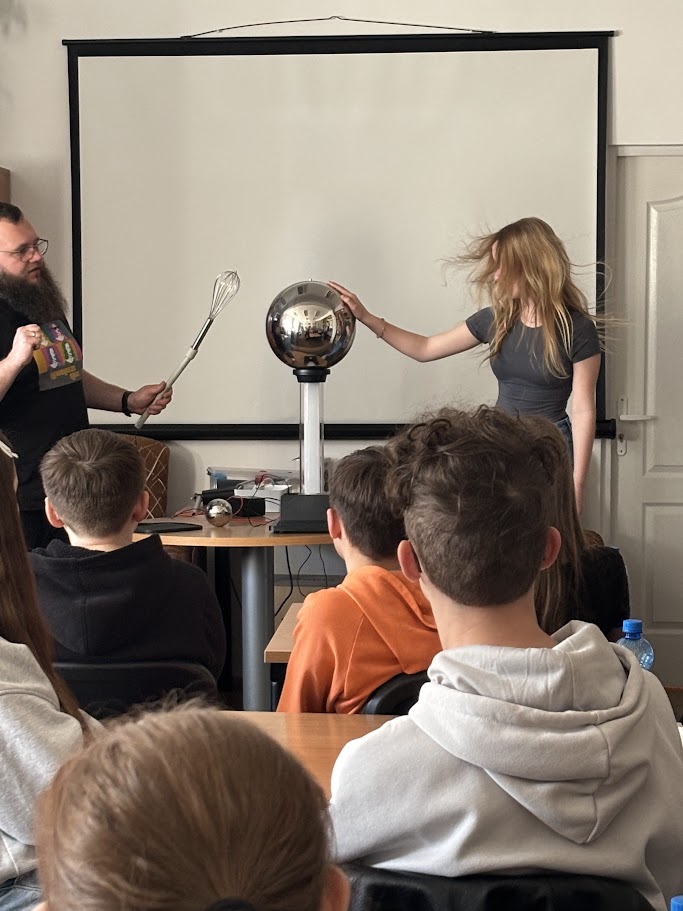 W kolejnej części prowadzący skupili się na fizyce i elektryczności oraz zjawisku naelektryzowania. W tym celu został wykorzystany generator van der Graaffa. Uczestnicy poznali jego budowę i zasadę działania. Przypomnieli sobie też podstawowe prawa fizyki, które stoją za tym zjawiskiem. Na koniec przyszedł czas na praktykę. Uczestnicy obserwowali iskry elektryczności. Mogli też poczuć prąd o niskim natężeniu. Chętni sami korzystali z generatora. Na własnej skórze sprawdzali działanie sił fizyki. Efekt był widoczny od razu – włosy dosłownie stawały dęba.