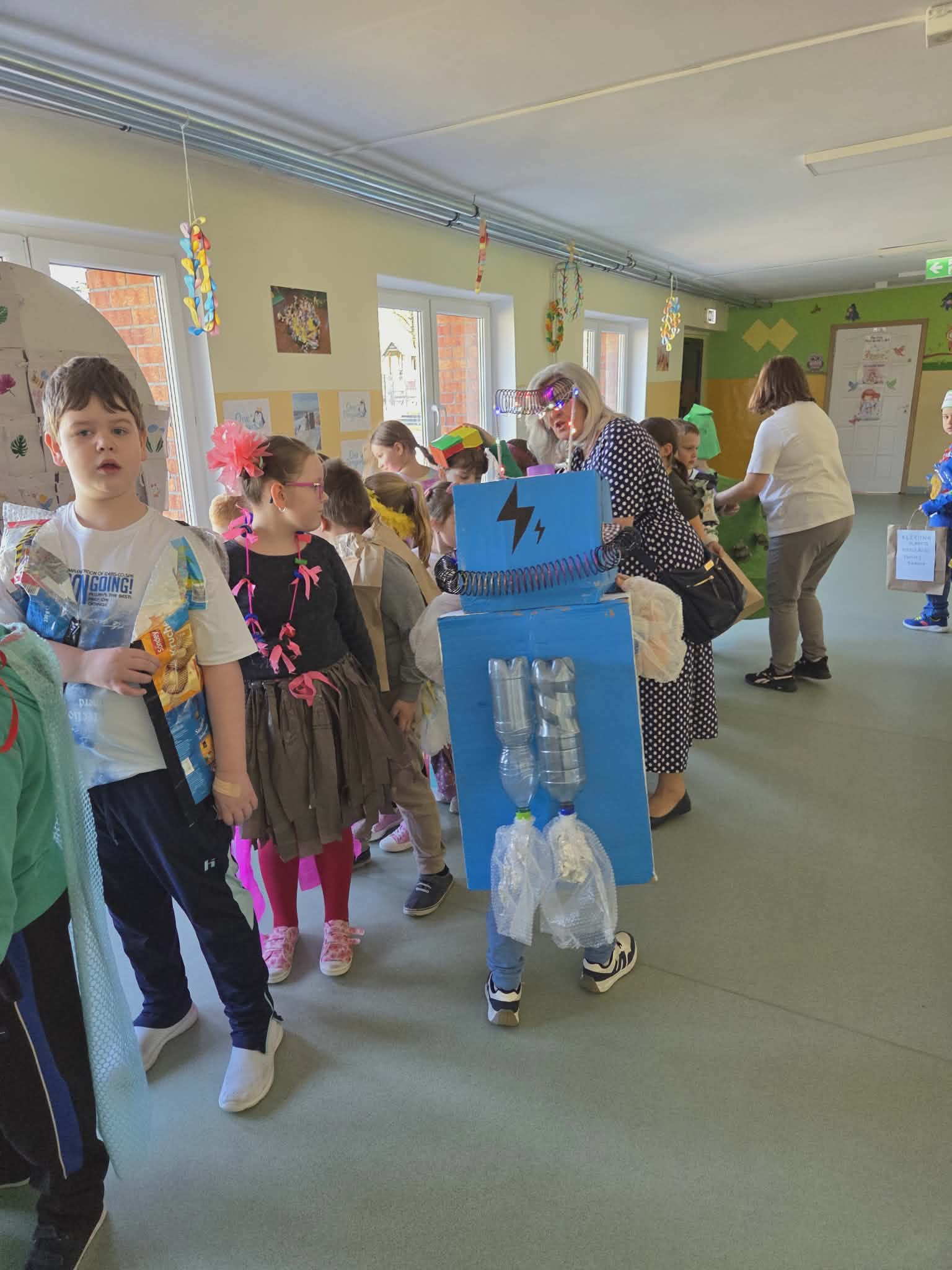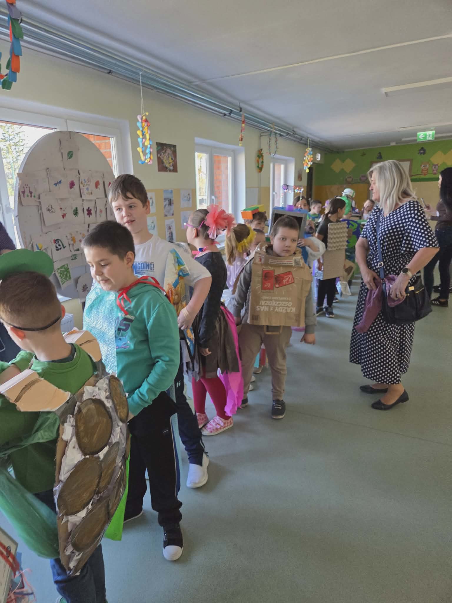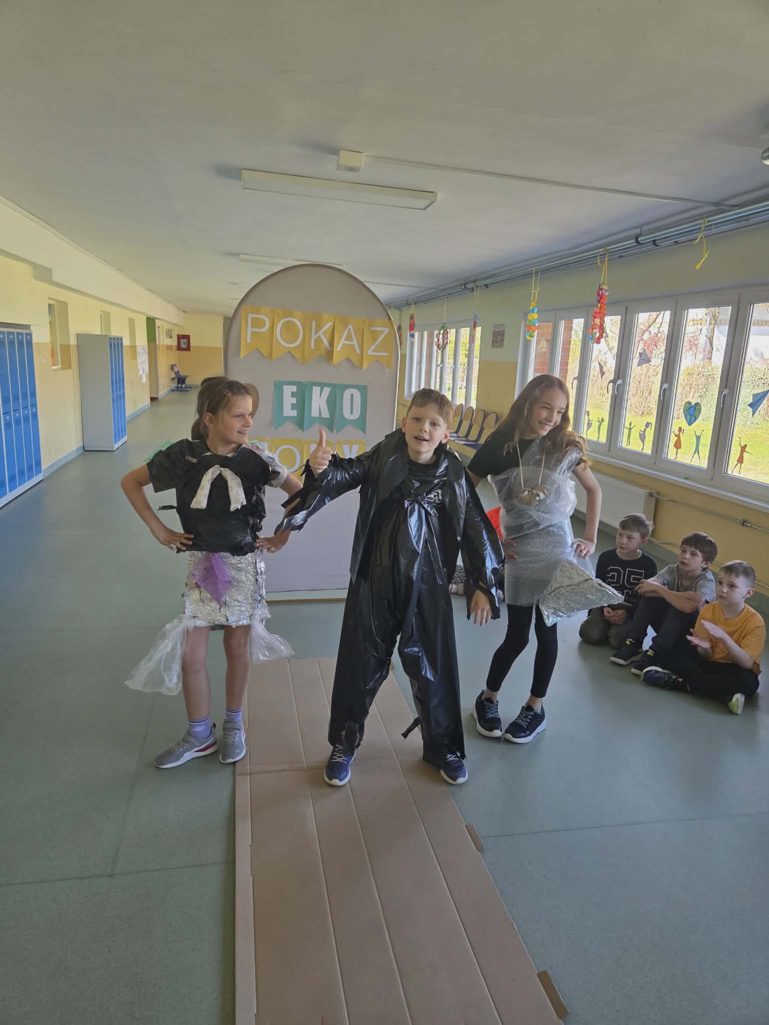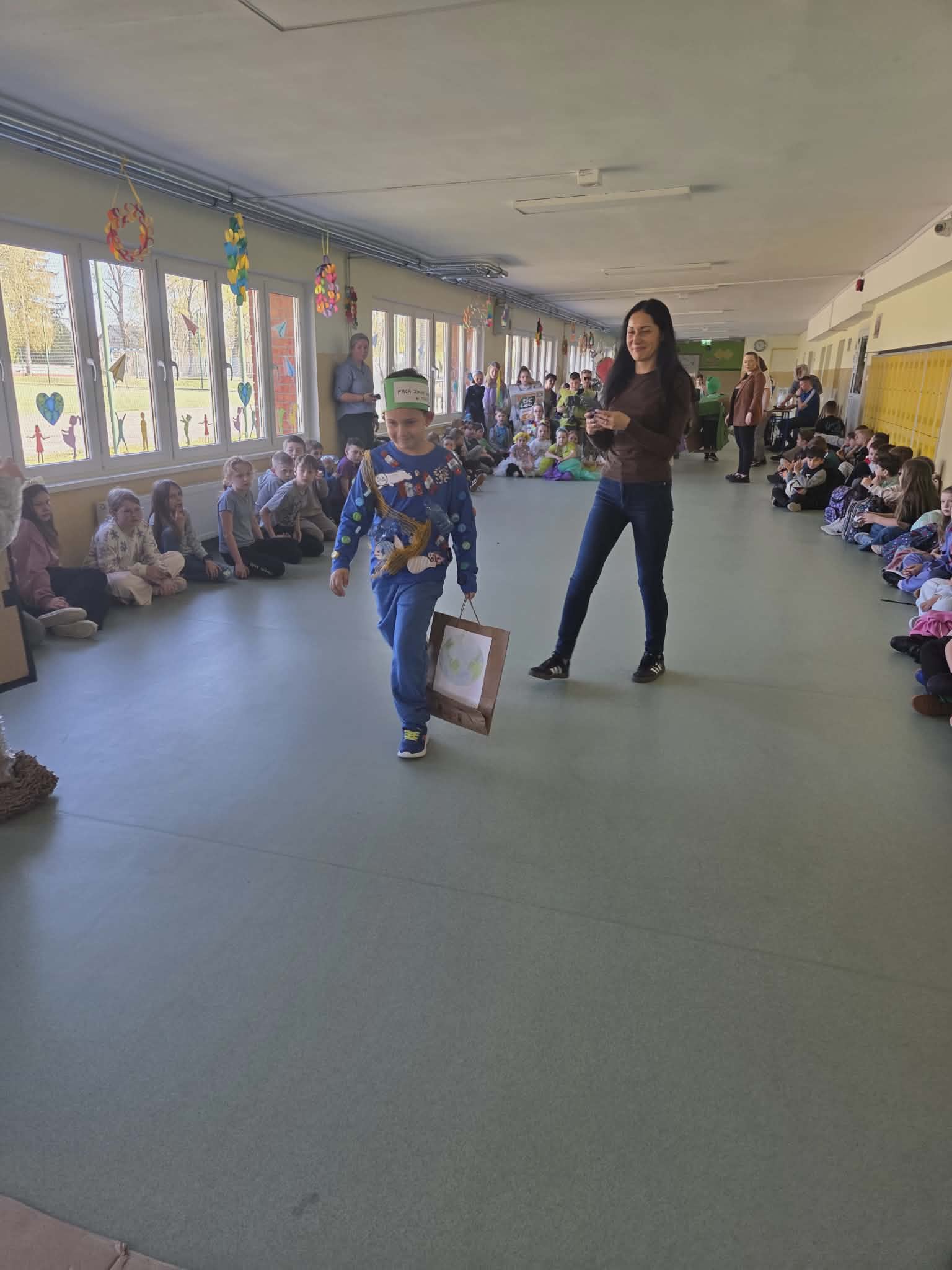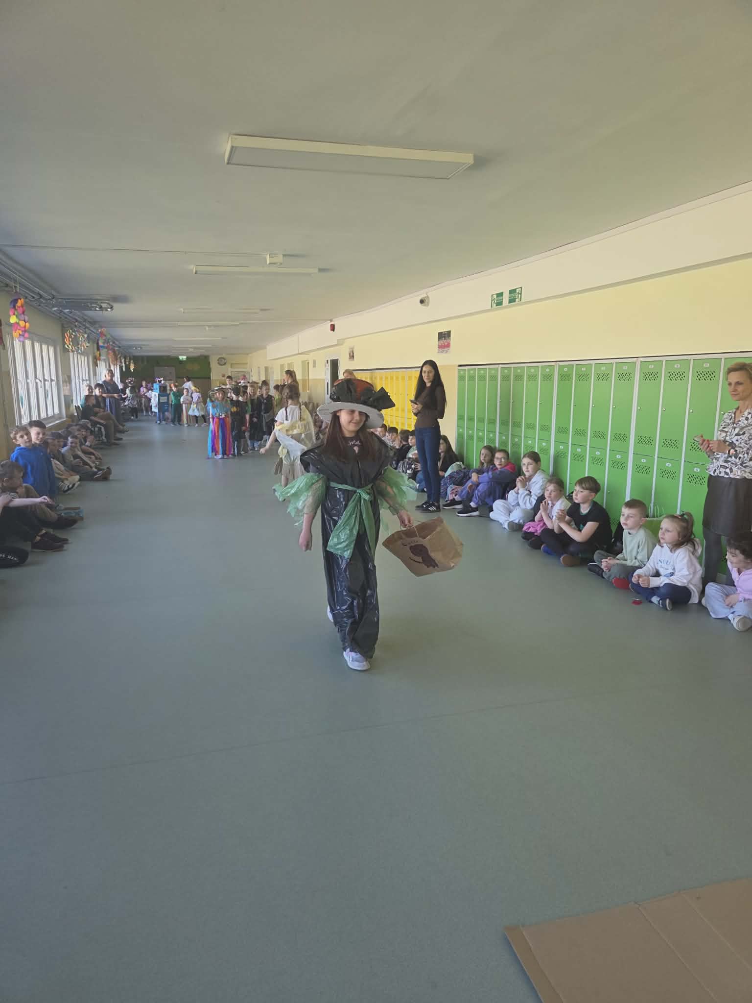 Szkolny korytarz tętnił dziś niezwykłą energią, zamieniając się w kolorowy wybieg pełen pasji, ekologicznej świadomości i dziecięcej radości. Podczas wyjątkowego pokazu eko-mody uczniowie klas 0-3 zaprezentowali niezwykłe stroje, które udowodniły, że wyobraźnia nie zna granic, a to, co potocznie nazywamy odpadem, może zyskać drugie, spektakularne życie. Każda kreacja pojawiająca się na scenie była unikalnym świadectwem kreatywności, łączącym w sobie dbałość o detale z troską o naszą planetę. Patrząc na pewne kroki małych modeli, trudno było wyjść z podziwu nad tym, jak twórczo można wykorzystać materiały z recyklingu, tworząc z nich małe dzieła sztuki.