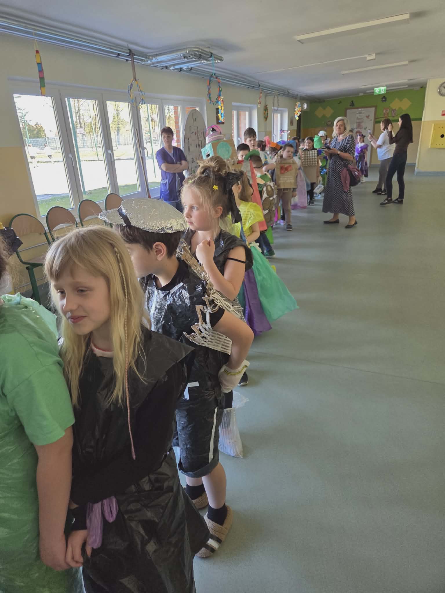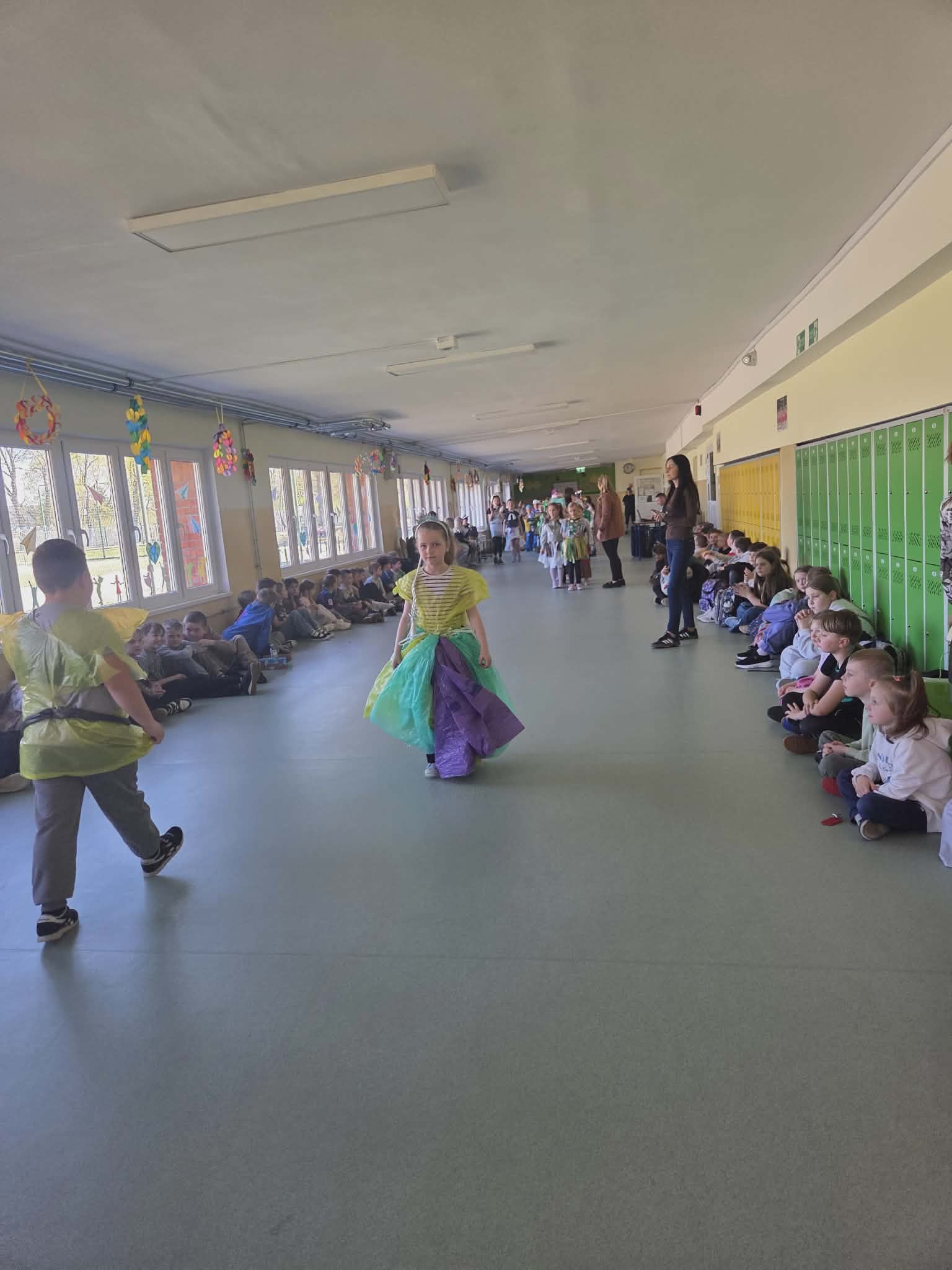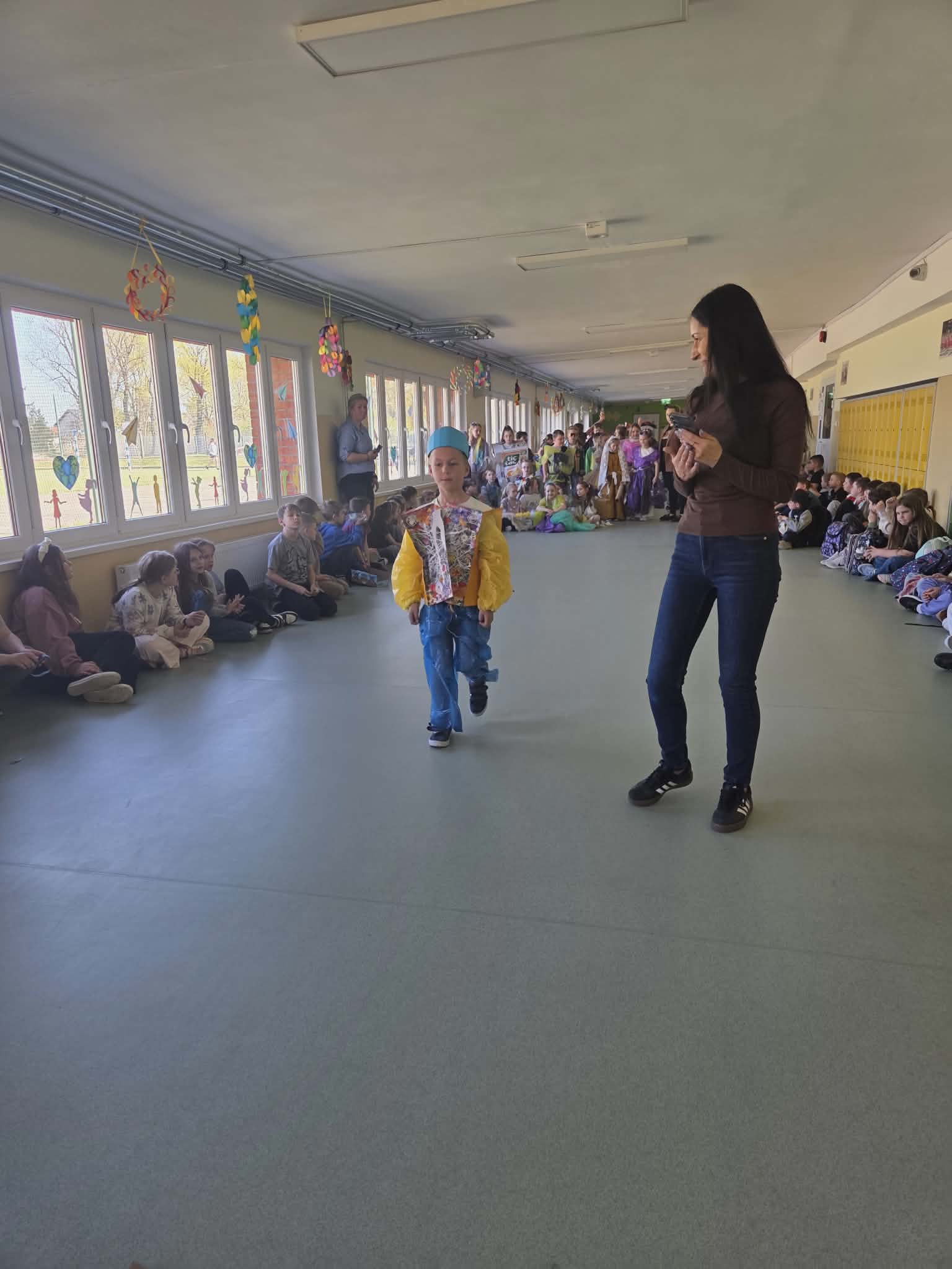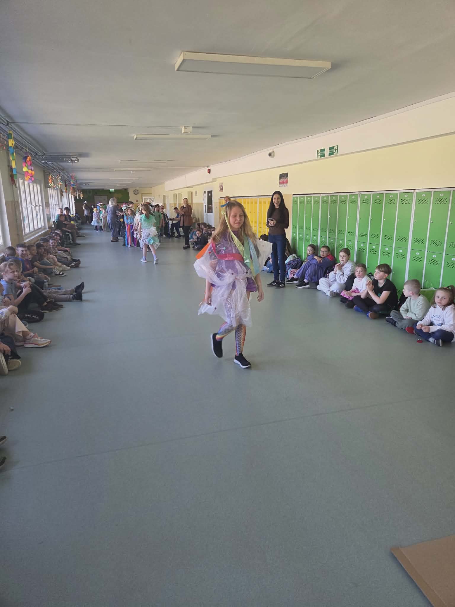 Szkolny korytarz tętnił dziś niezwykłą energią, zamieniając się w kolorowy wybieg pełen pasji, ekologicznej świadomości i dziecięcej radości. Podczas wyjątkowego pokazu eko-mody uczniowie klas 0-3 zaprezentowali niezwykłe stroje, które udowodniły, że wyobraźnia nie zna granic, a to, co potocznie nazywamy odpadem, może zyskać drugie, spektakularne życie. Każda kreacja pojawiająca się na scenie była unikalnym świadectwem kreatywności, łączącym w sobie dbałość o detale z troską o naszą planetę. Patrząc na pewne kroki małych modeli, trudno było wyjść z podziwu nad tym, jak twórczo można wykorzystać materiały z recyklingu, tworząc z nich małe dzieła sztuki.