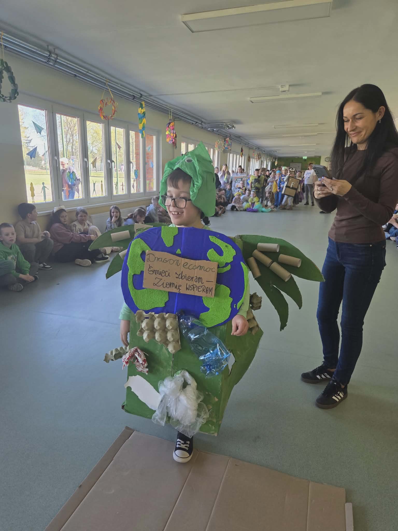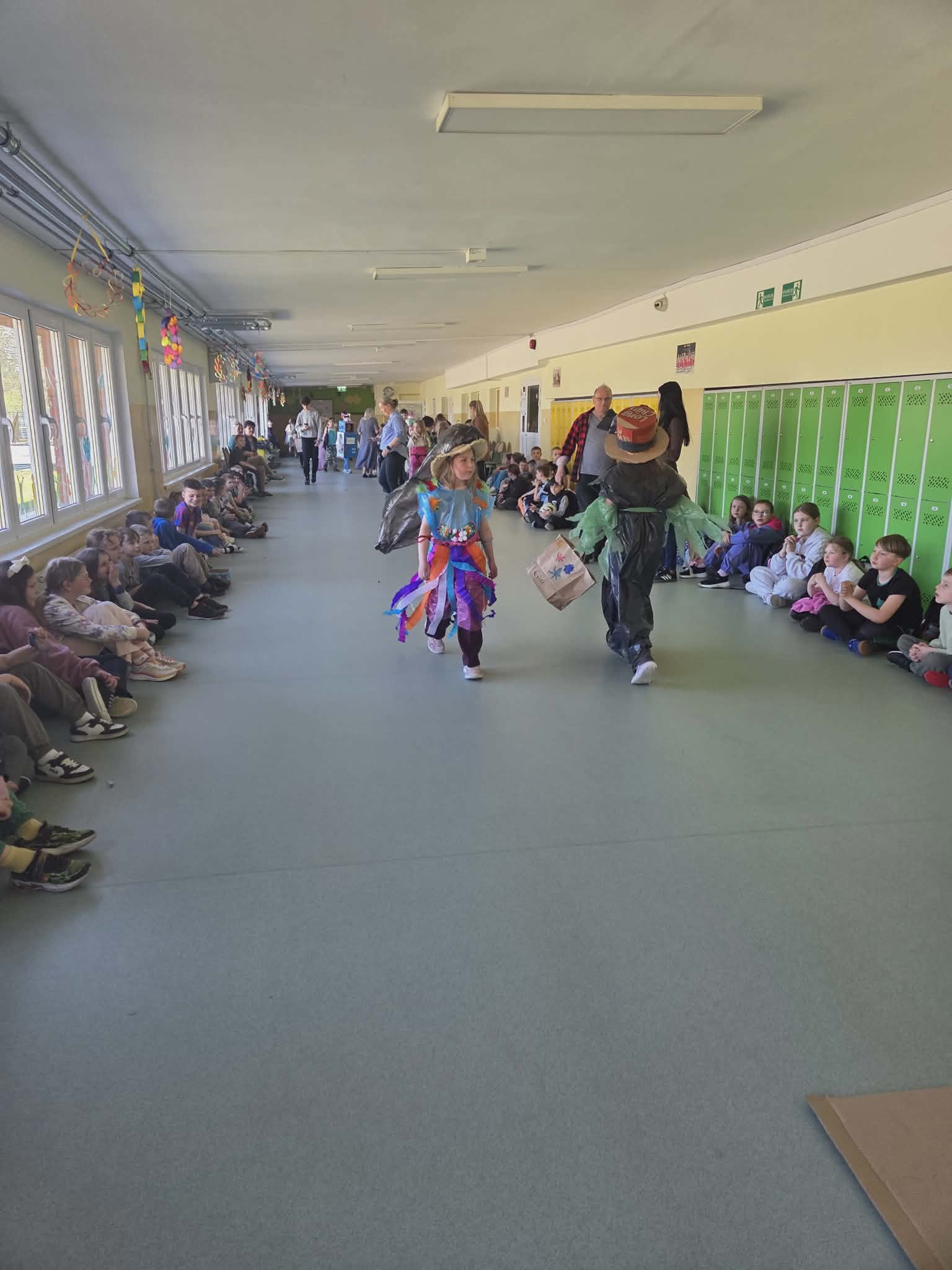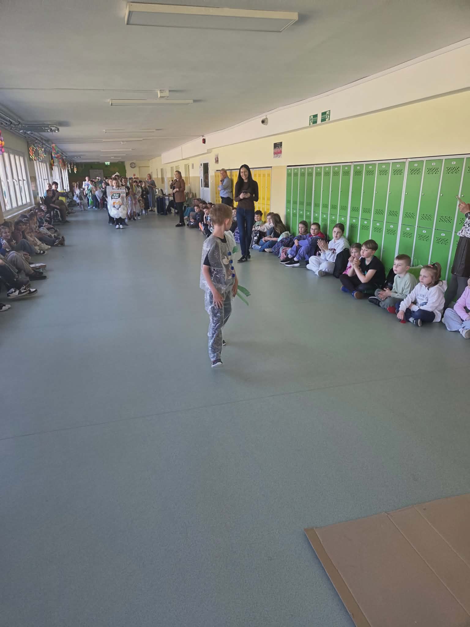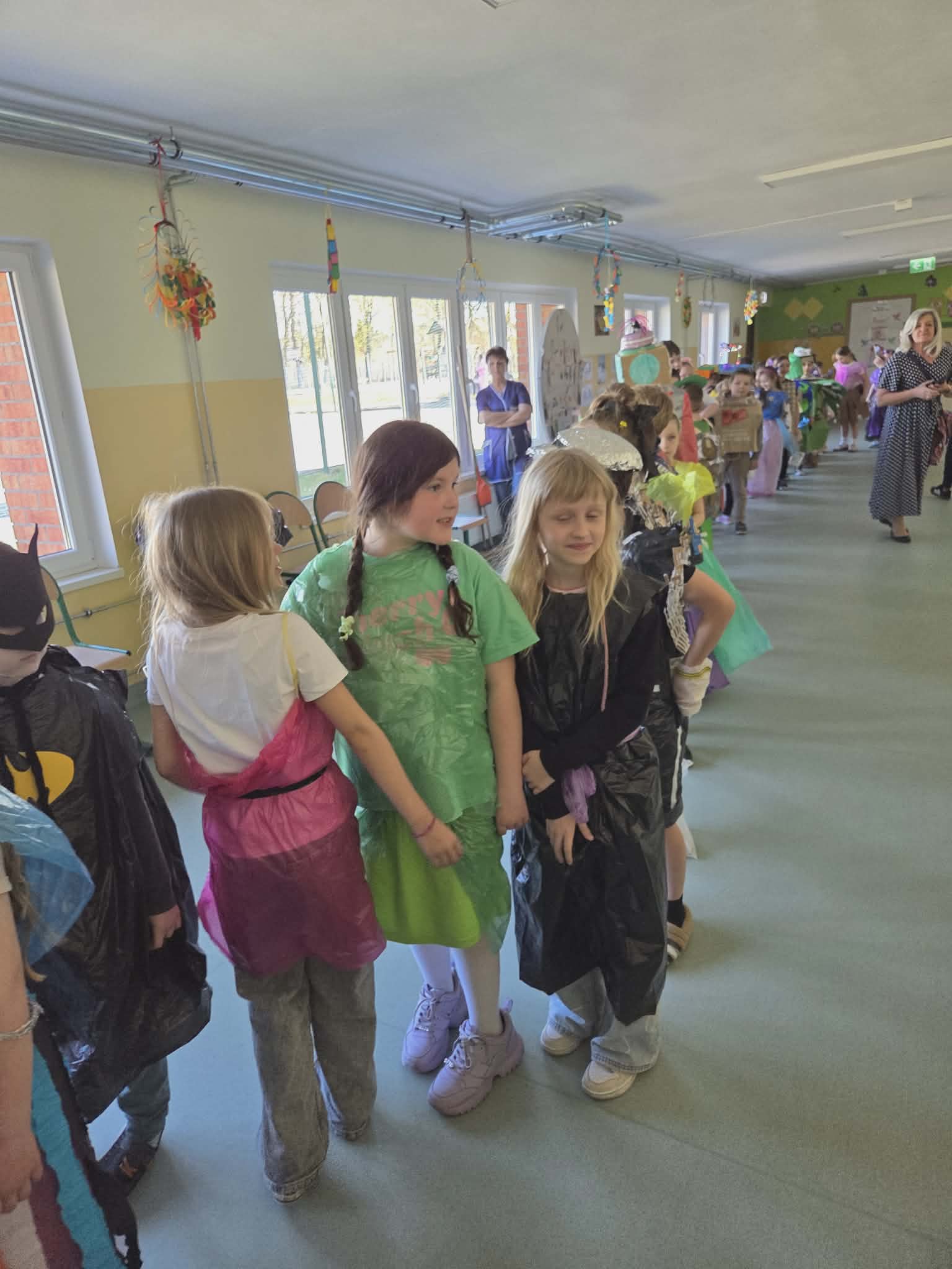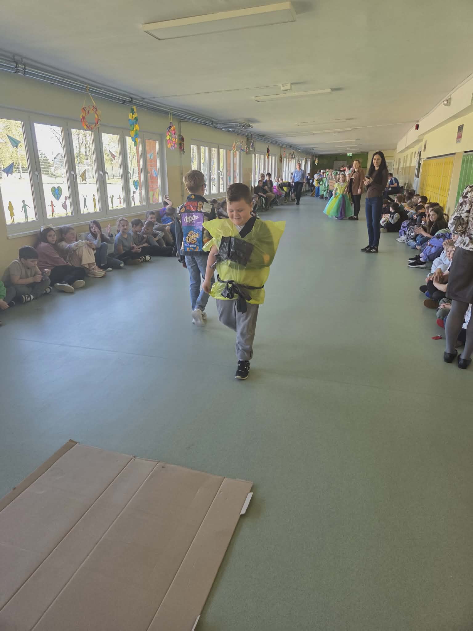Szkolny korytarz tętnił dziś niezwykłą energią, zamieniając się w kolorowy wybieg pełen pasji, ekologicznej świadomości i dziecięcej radości. Podczas wyjątkowego pokazu eko-mody uczniowie klas 0-3 zaprezentowali niezwykłe stroje, które udowodniły, że wyobraźnia nie zna granic, a to, co potocznie nazywamy odpadem, może zyskać drugie, spektakularne życie. Każda kreacja pojawiająca się na scenie była unikalnym świadectwem kreatywności, łączącym w sobie dbałość o detale z troską o naszą planetę. Patrząc na pewne kroki małych modeli, trudno było wyjść z podziwu nad tym, jak twórczo można wykorzystać materiały z recyklingu, tworząc z nich małe dzieła sztuki.