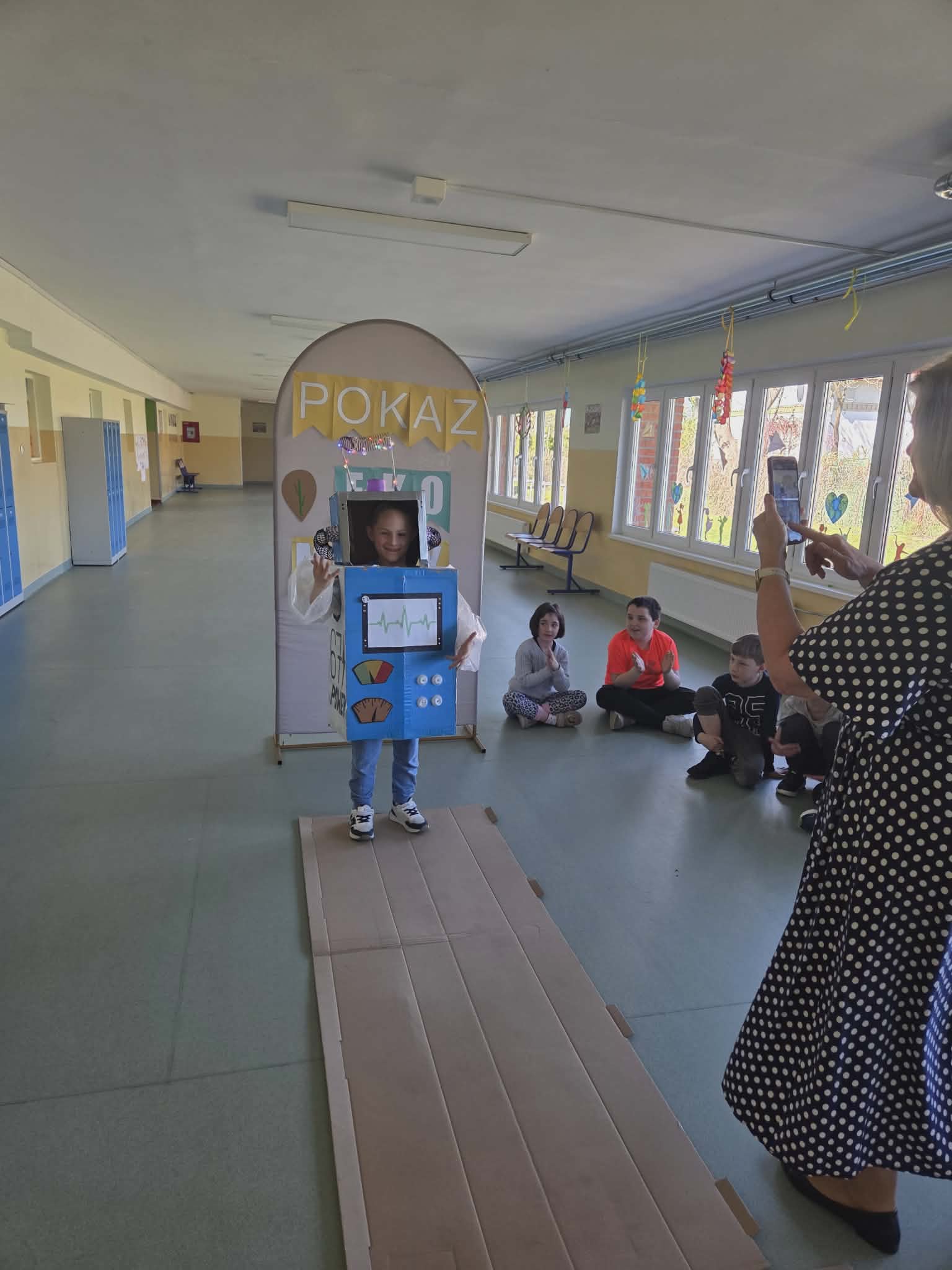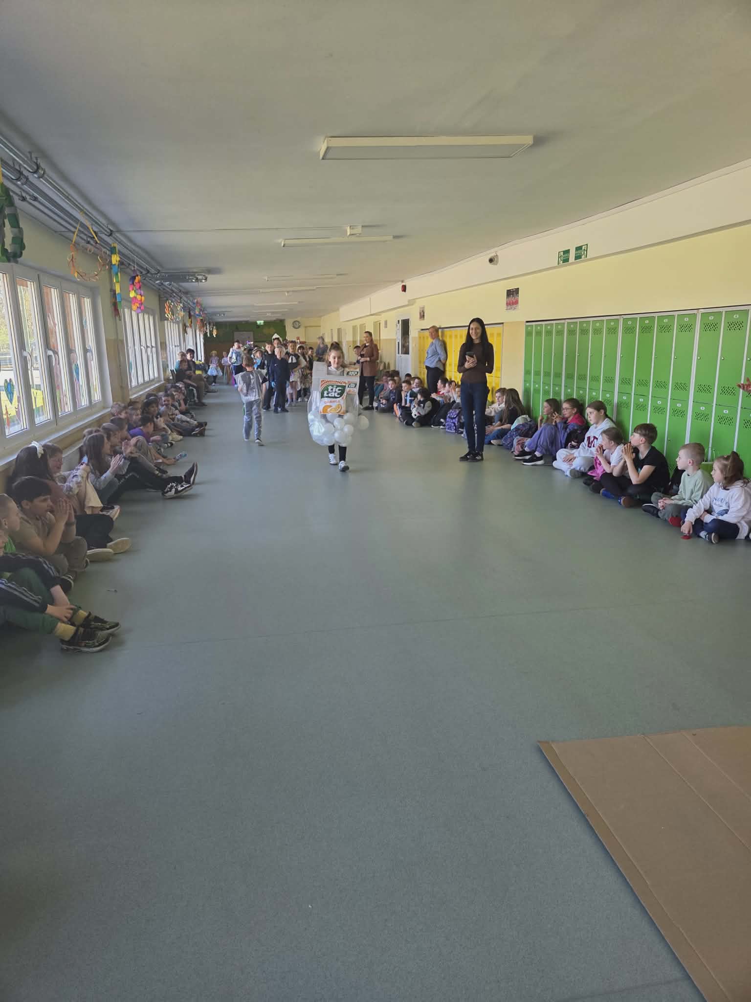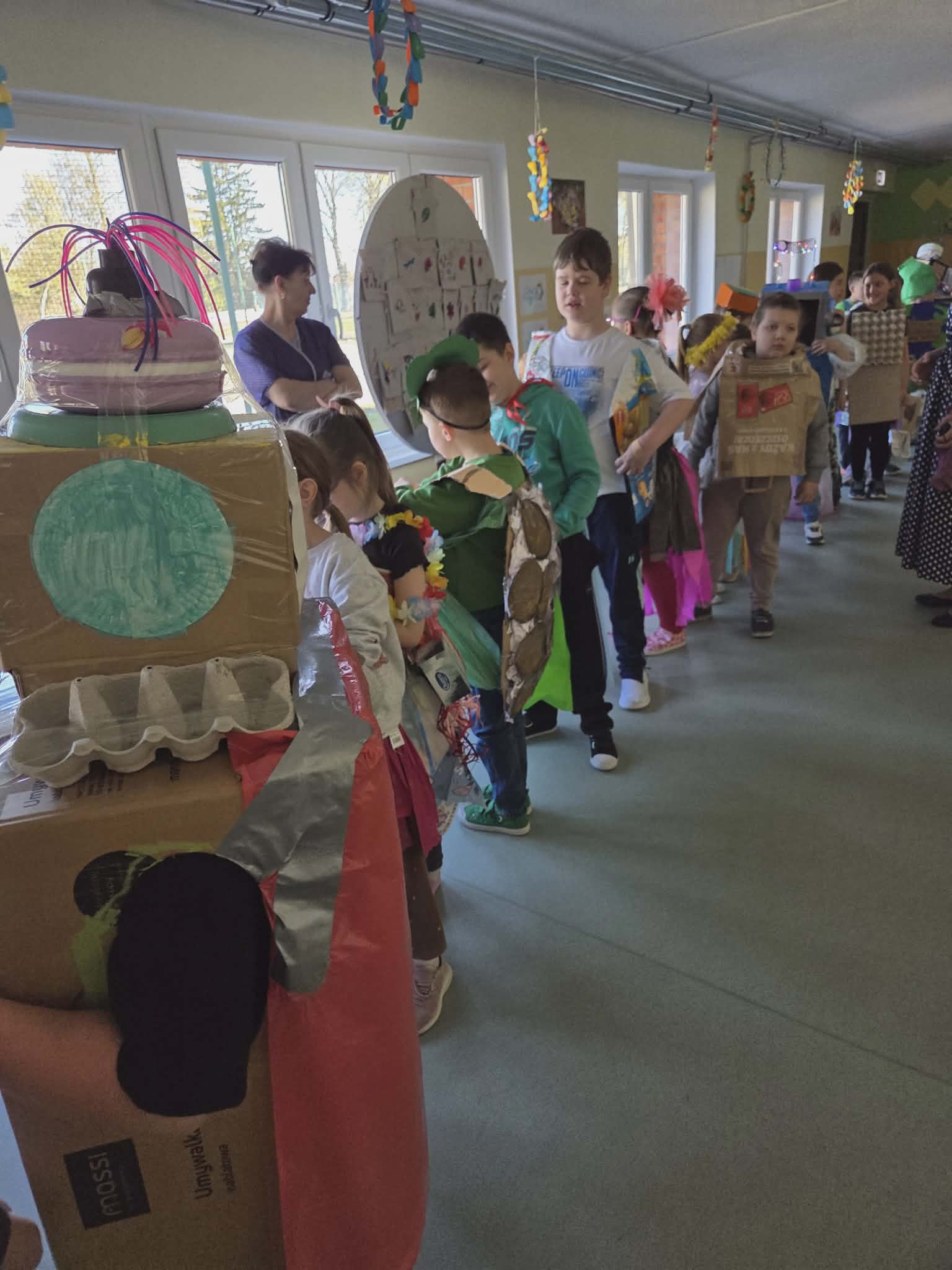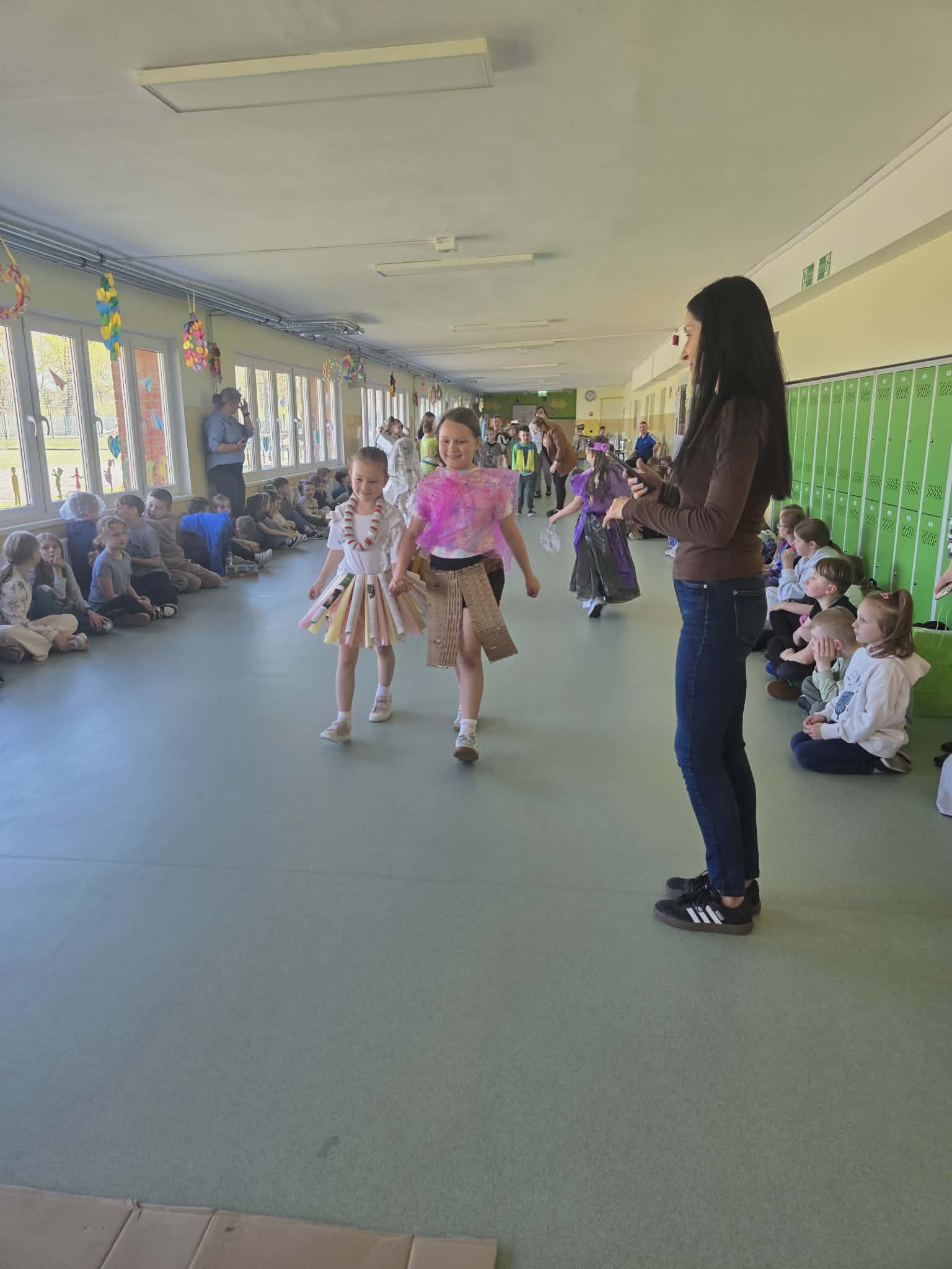 Szkolny korytarz tętnił dziś niezwykłą energią, zamieniając się w kolorowy wybieg pełen pasji, ekologicznej świadomości i dziecięcej radości. Podczas wyjątkowego pokazu eko-mody uczniowie klas 0-3 zaprezentowali niezwykłe stroje, które udowodniły, że wyobraźnia nie zna granic, a to, co potocznie nazywamy odpadem, może zyskać drugie, spektakularne życie. Każda kreacja pojawiająca się na scenie była unikalnym świadectwem kreatywności, łączącym w sobie dbałość o detale z troską o naszą planetę. Patrząc na pewne kroki małych modeli, trudno było wyjść z podziwu nad tym, jak twórczo można wykorzystać materiały z recyklingu, tworząc z nich małe dzieła sztuki.