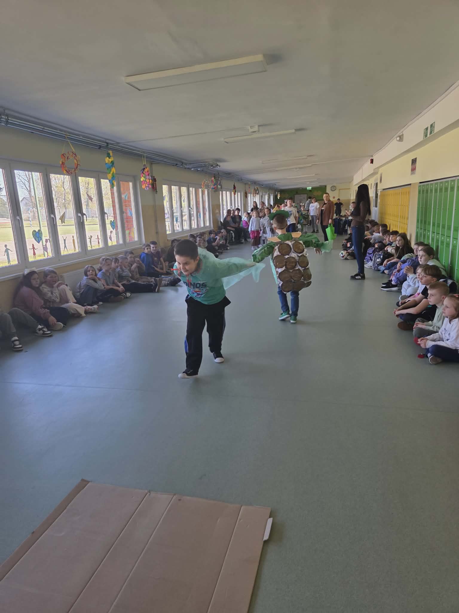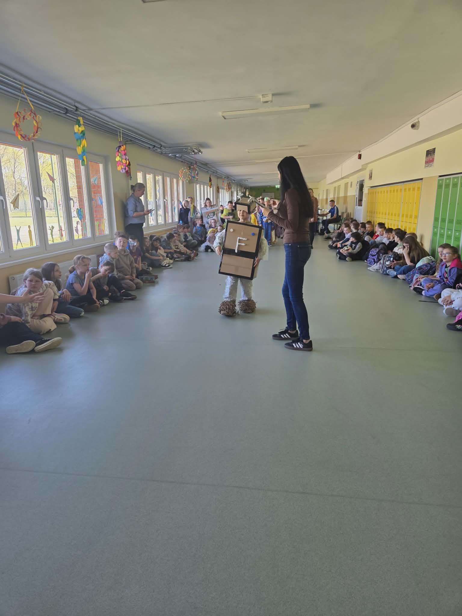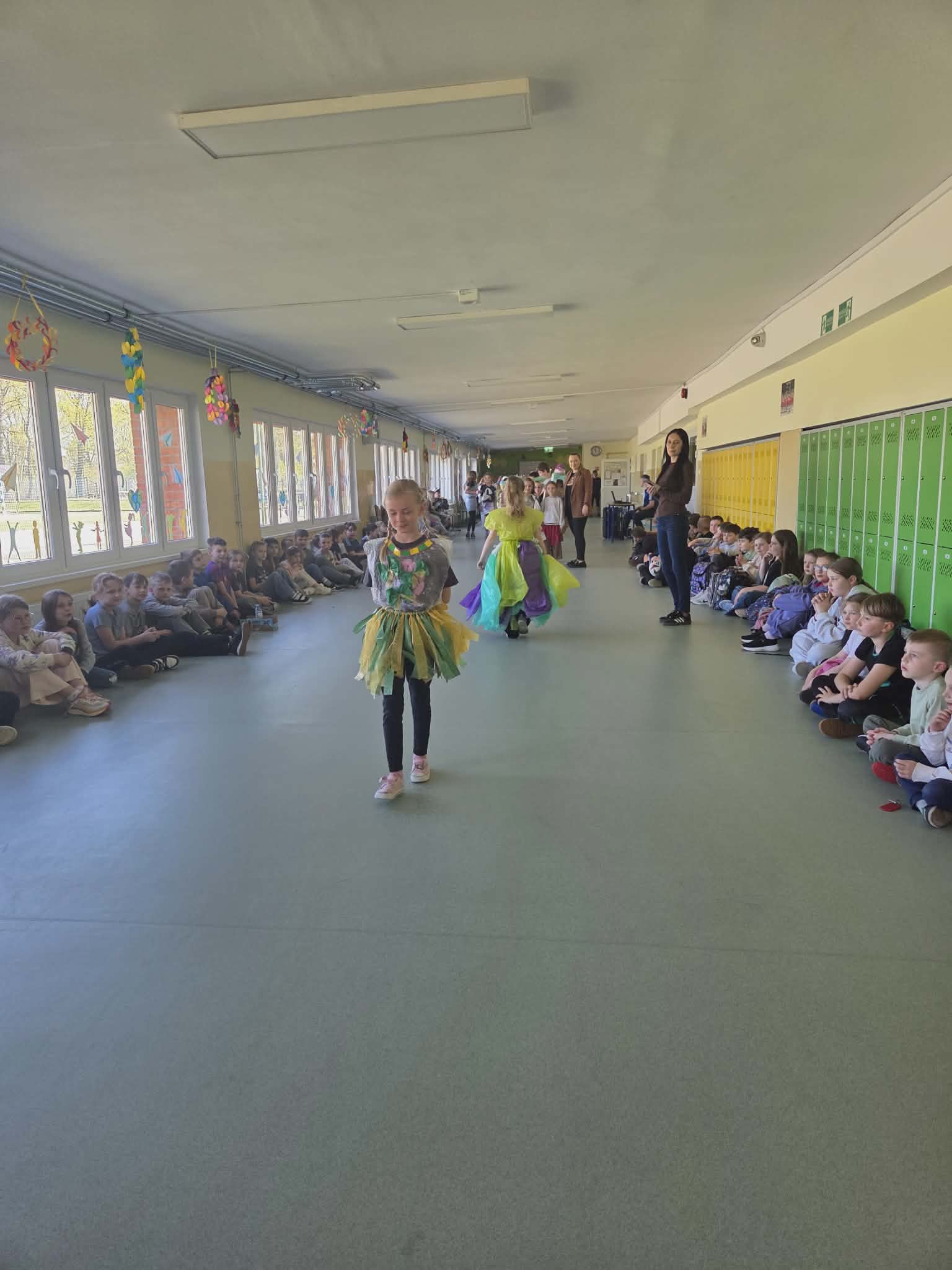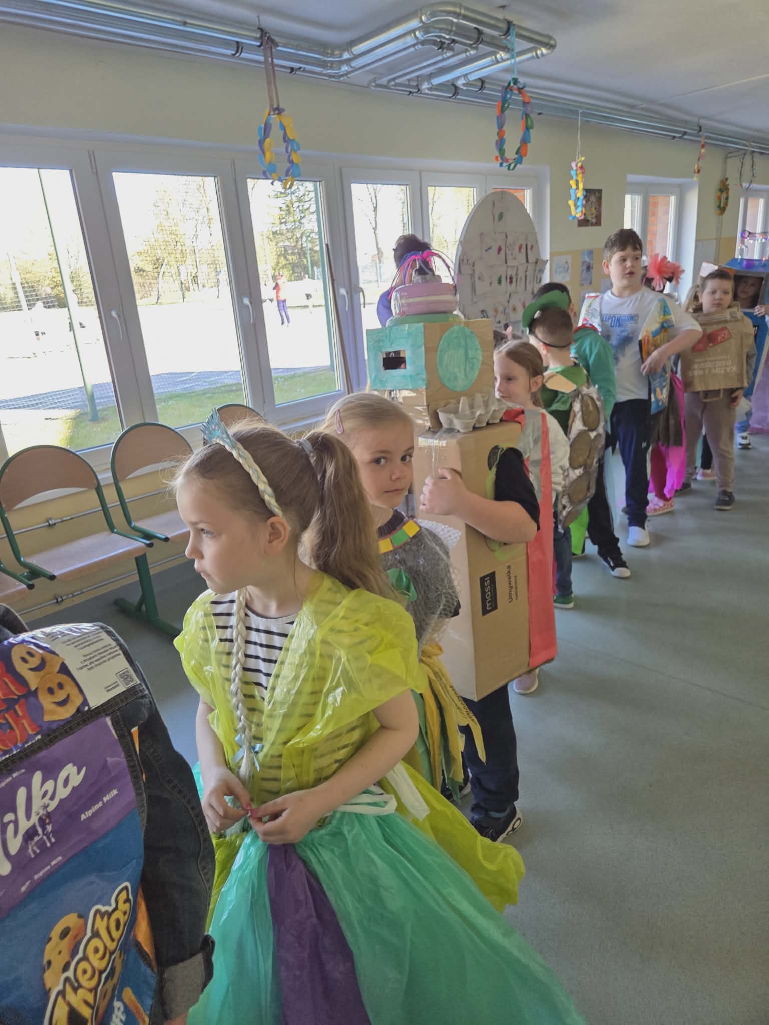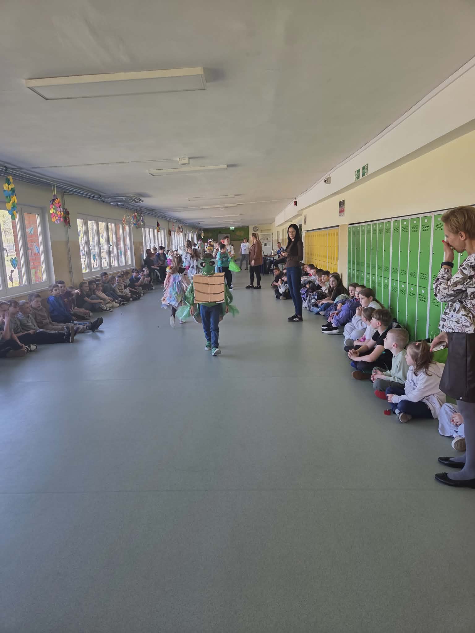 Szkolny korytarz tętnił dziś niezwykłą energią, zamieniając się w kolorowy wybieg pełen pasji, ekologicznej świadomości i dziecięcej radości. Podczas wyjątkowego pokazu eko-mody uczniowie klas 0-3 zaprezentowali niezwykłe stroje, które udowodniły, że wyobraźnia nie zna granic, a to, co potocznie nazywamy odpadem, może zyskać drugie, spektakularne życie. Każda kreacja pojawiająca się na scenie była unikalnym świadectwem kreatywności, łączącym w sobie dbałość o detale z troską o naszą planetę. Patrząc na pewne kroki małych modeli, trudno było wyjść z podziwu nad tym, jak twórczo można wykorzystać materiały z recyklingu, tworząc z nich małe dzieła sztuki.