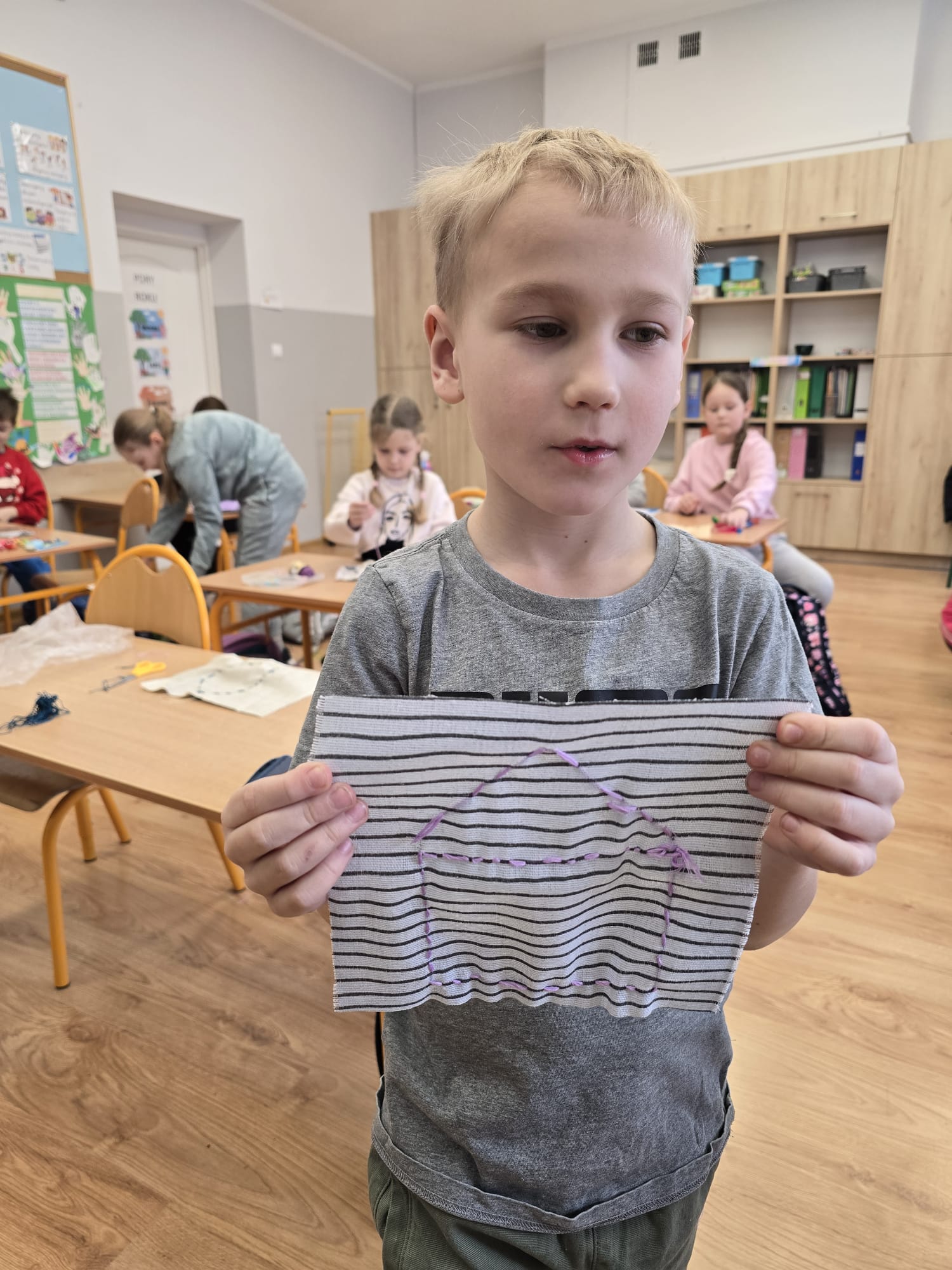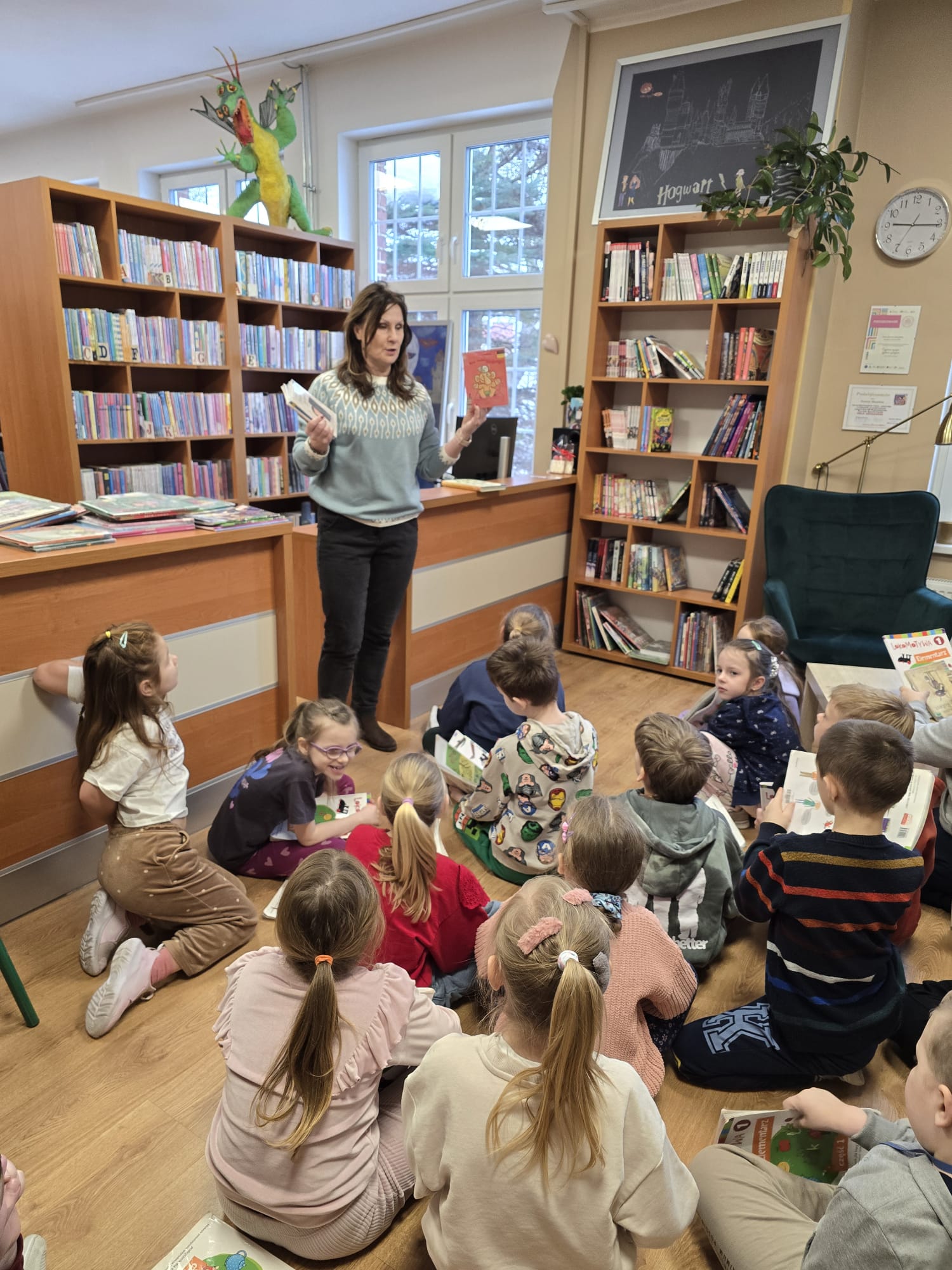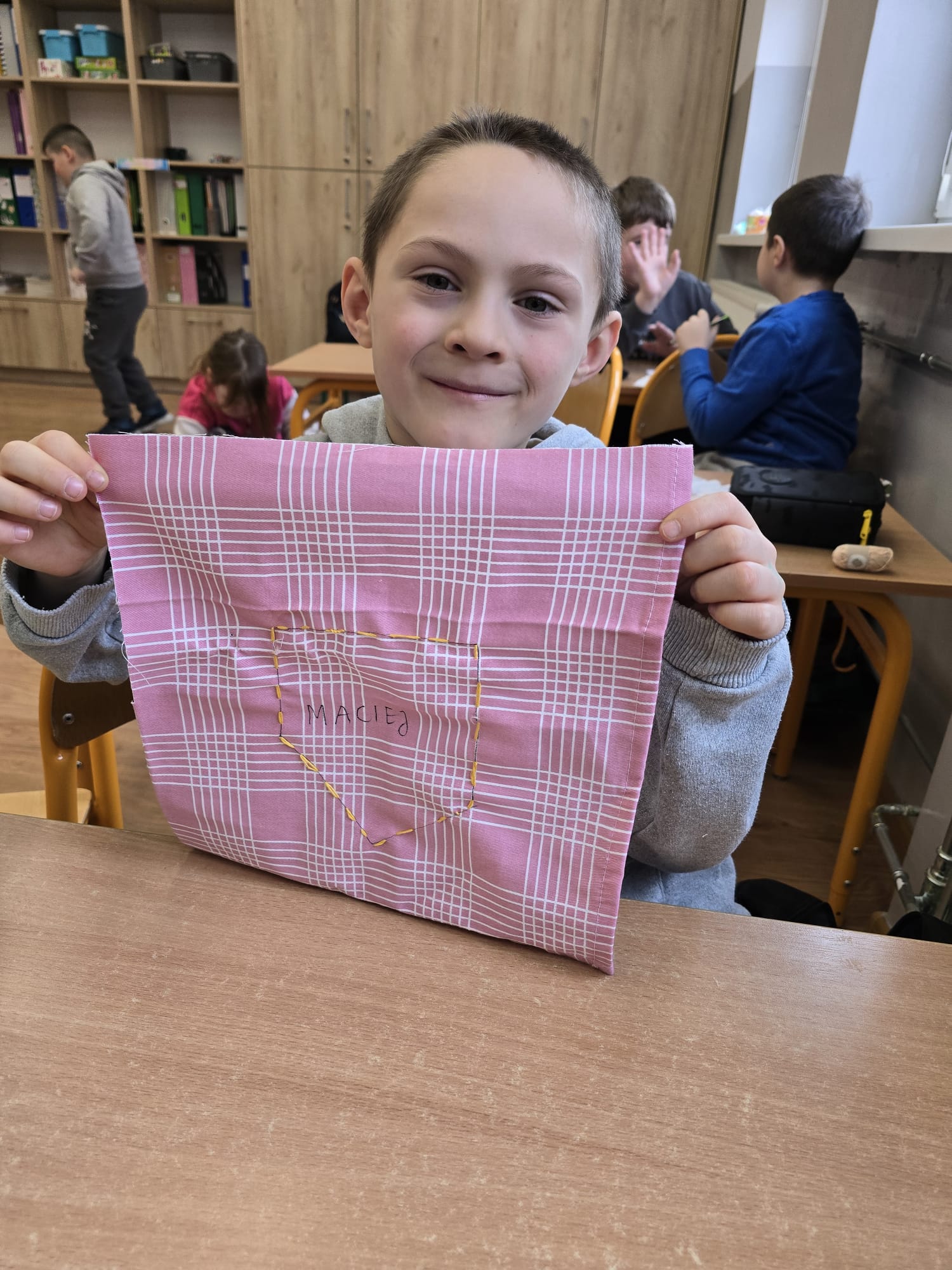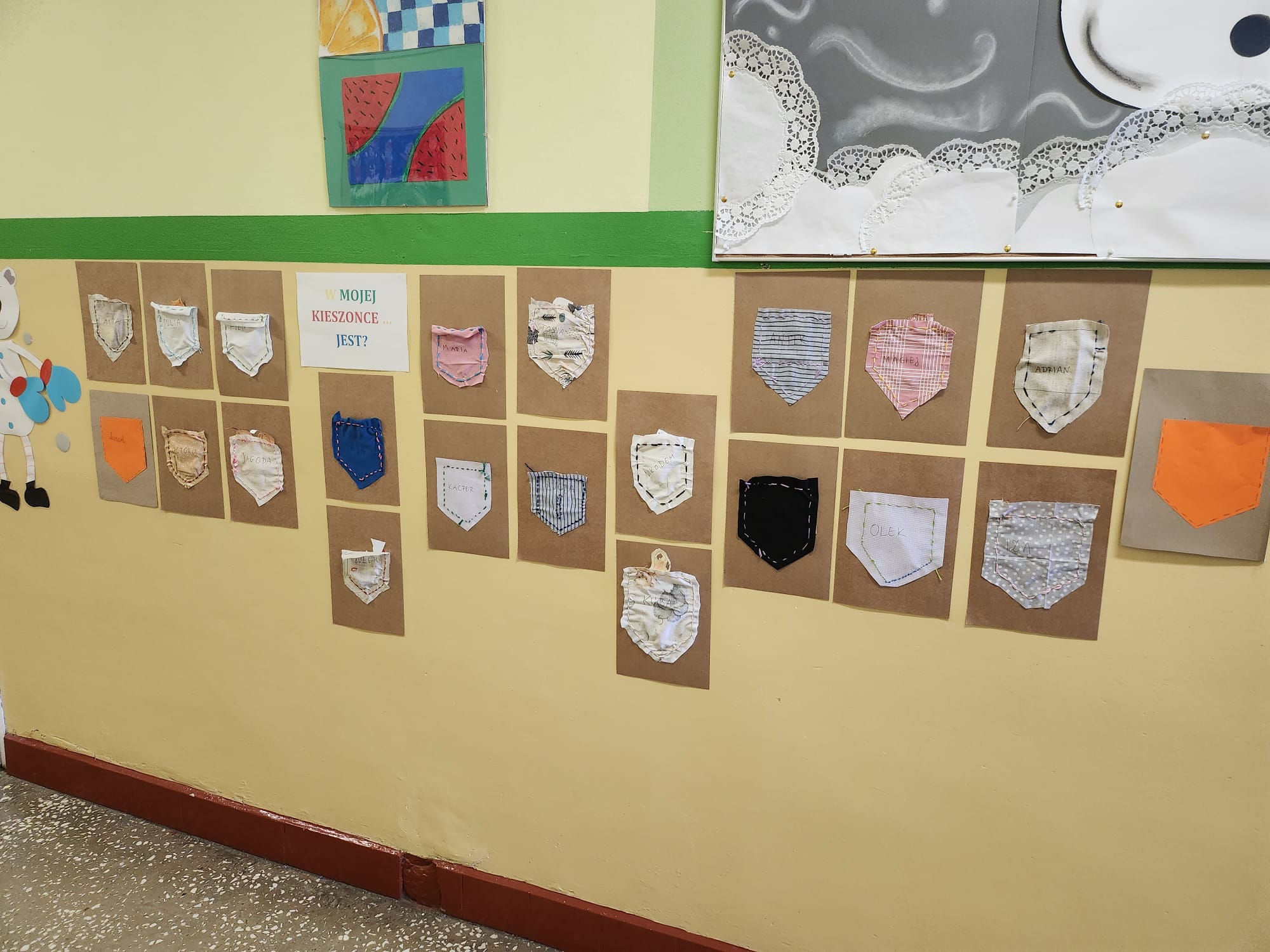 W minionym tygodniu uczniowie klasy I b wzięli udział w zajęciach bibliotecznych inspirowanych książkami dostosowanymi do ich wieku. Podczas spotkania dzieci rozwijały swoją wyobraźnię,oraz rozbudzały swoje zainteresowania. Po powrocie do klasy, zapoznanały się z książką Iwony Chmielewskiej pt. "W kieszonce" po czym tworzyły haftowane kieszonki, do których chowały rysunki kojarzące im się z czymś miłym i ważnym. Następnie wzajemnie odgadywały co ukryło się w kieszonce kolegi/koleżanki.Zajęcia zachęcały do twórczego myślenia, rozmów o emocjach oraz uważnego czytania i słuchania.