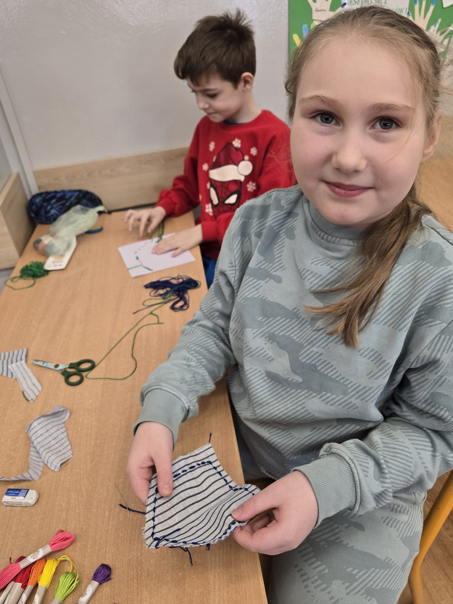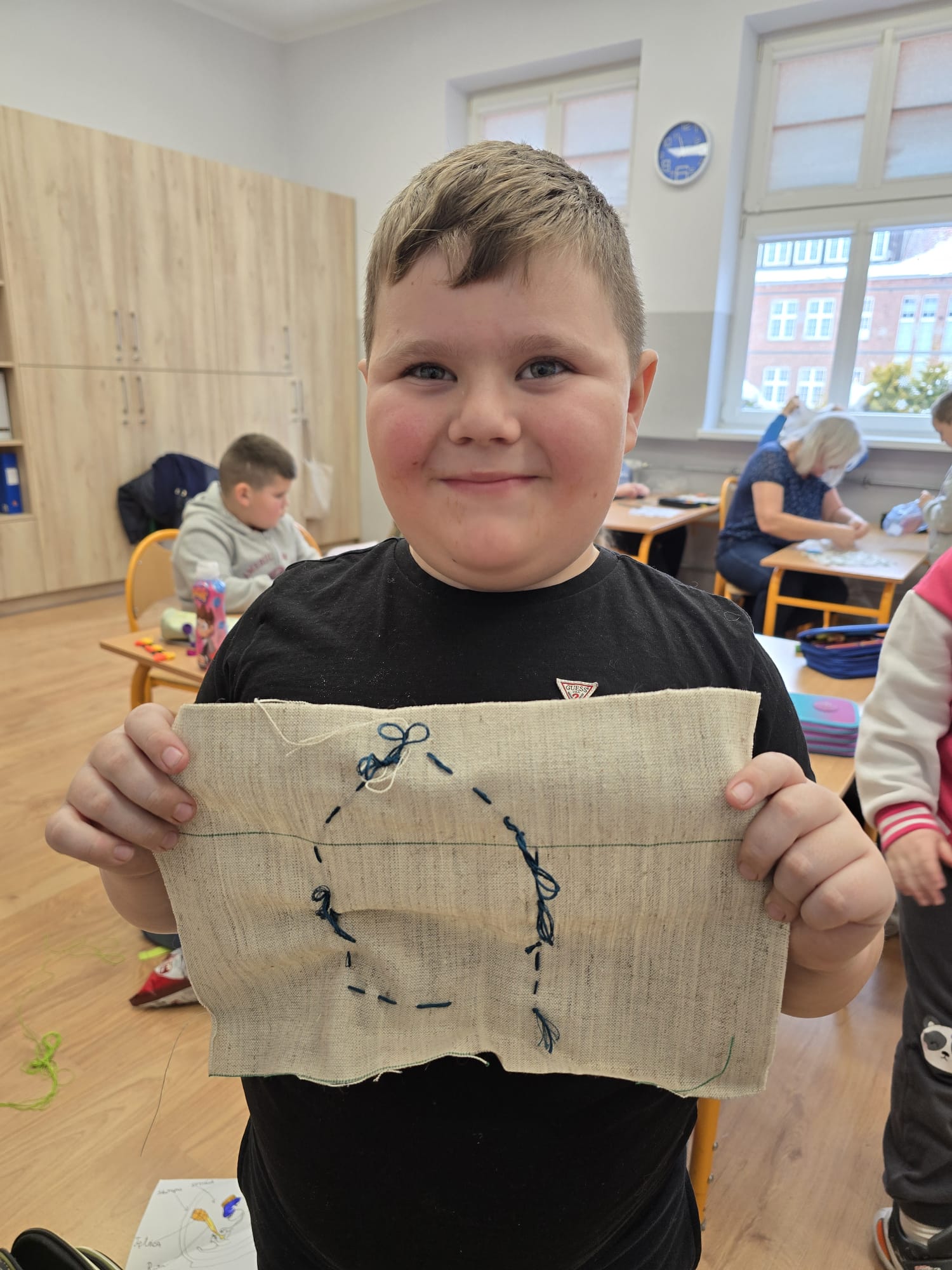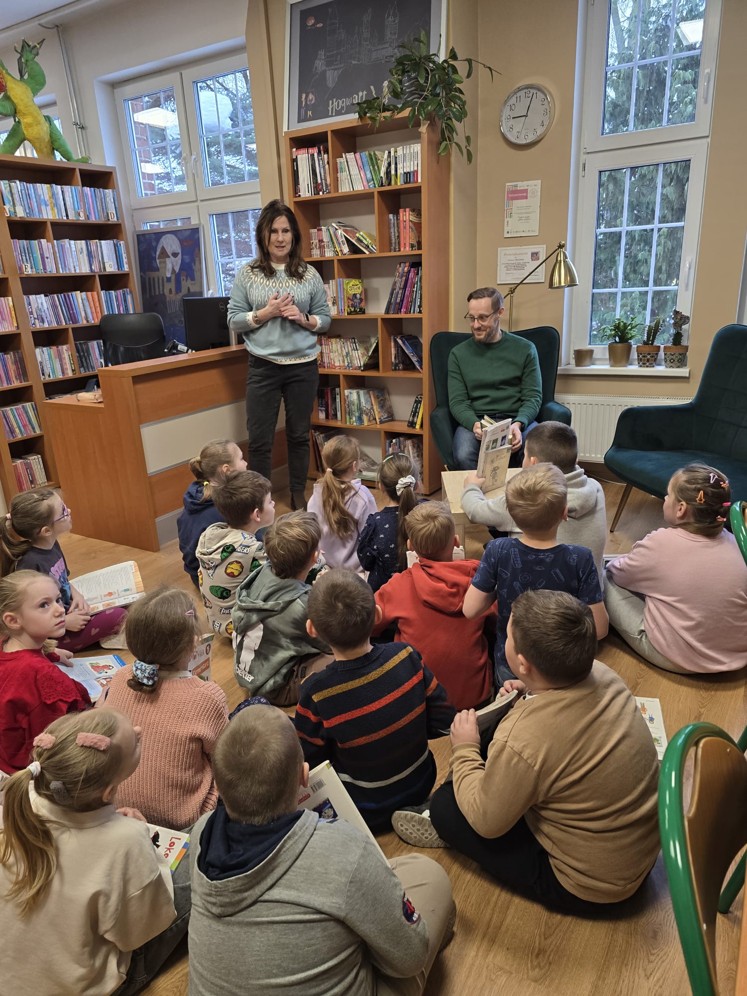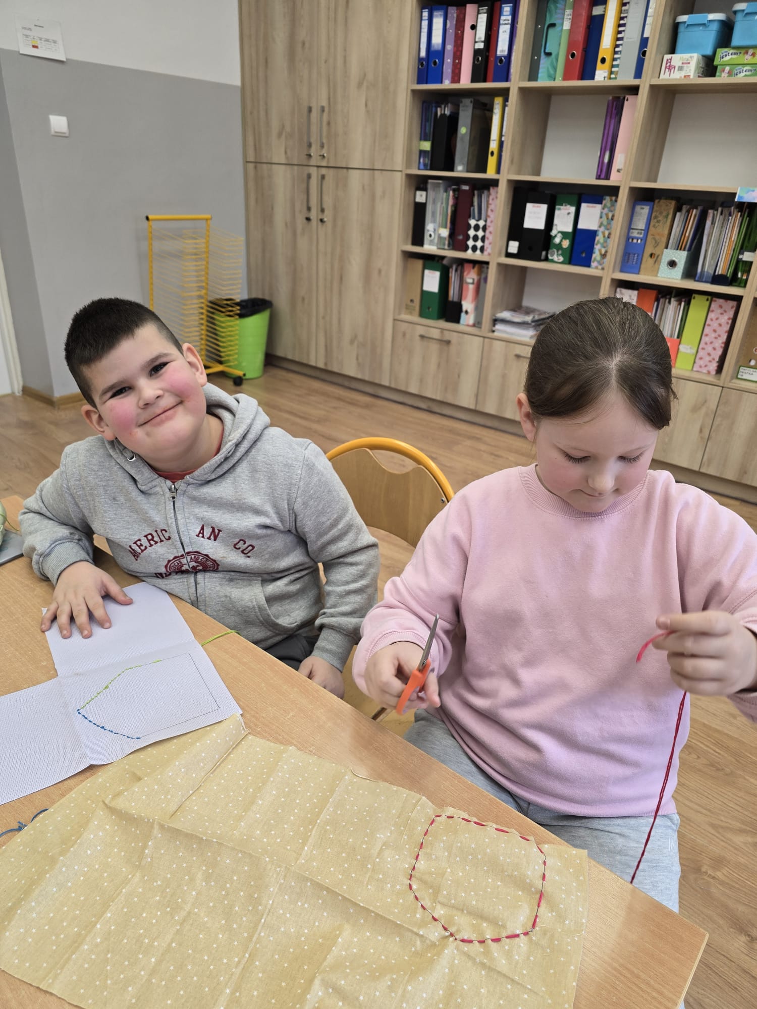 W minionym tygodniu uczniowie klasy I b wzięli udział w zajęciach bibliotecznych inspirowanych książkami dostosowanymi do ich wieku. Podczas spotkania dzieci rozwijały swoją wyobraźnię,oraz rozbudzały swoje zainteresowania. Po powrocie do klasy, zapoznanały się z książką Iwony Chmielewskiej pt. "W kieszonce" po czym tworzyły haftowane kieszonki, do których chowały rysunki kojarzące im się z czymś miłym i ważnym. Następnie wzajemnie odgadywały co ukryło się w kieszonce kolegi/koleżanki.Zajęcia zachęcały do twórczego myślenia, rozmów o emocjach oraz uważnego czytania i słuchania.