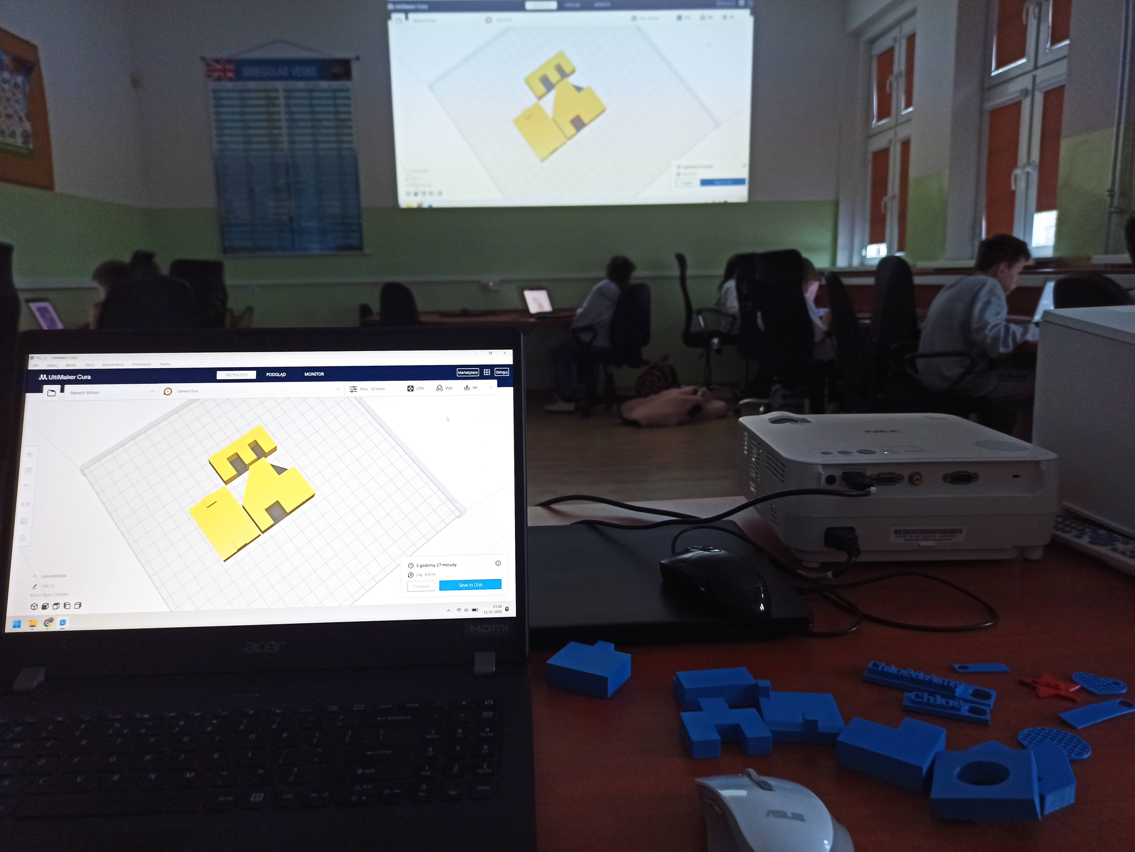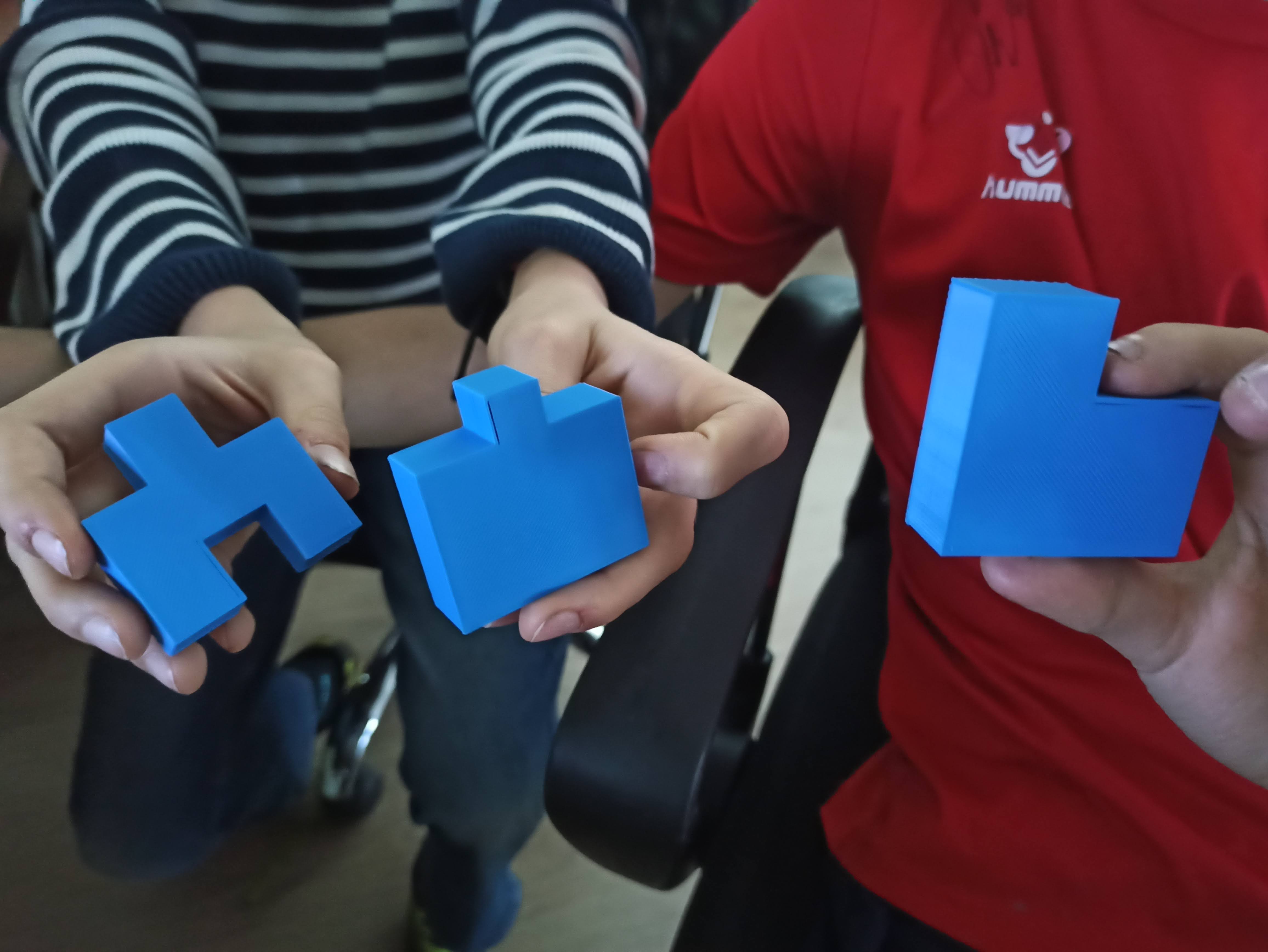 Tworzymy i drukujemy również dla naszej szkoły. Zaprojektowaliśmy figury, które będą służyły jako pomoce dydaktyczne na zajęciach technicznych.