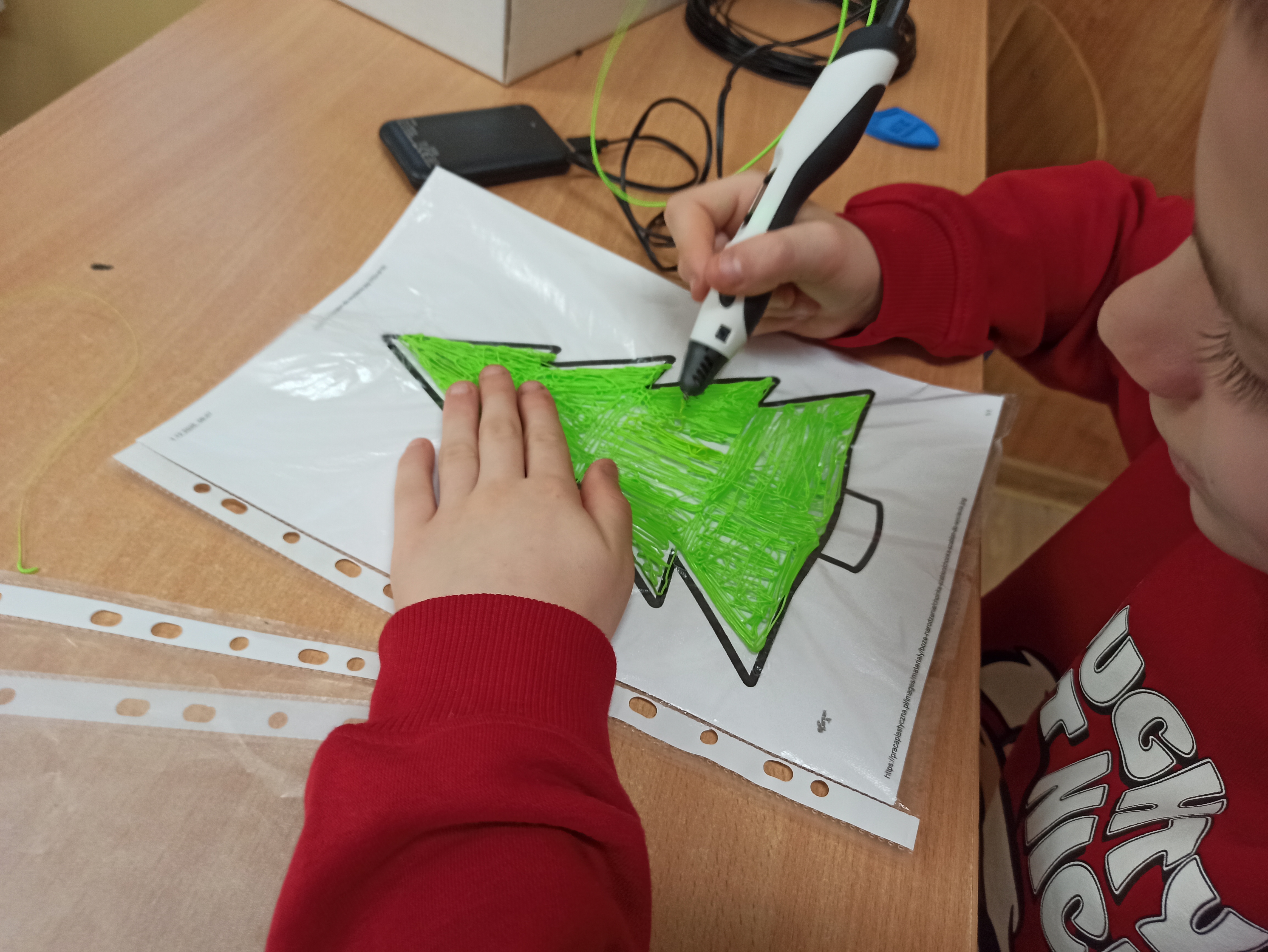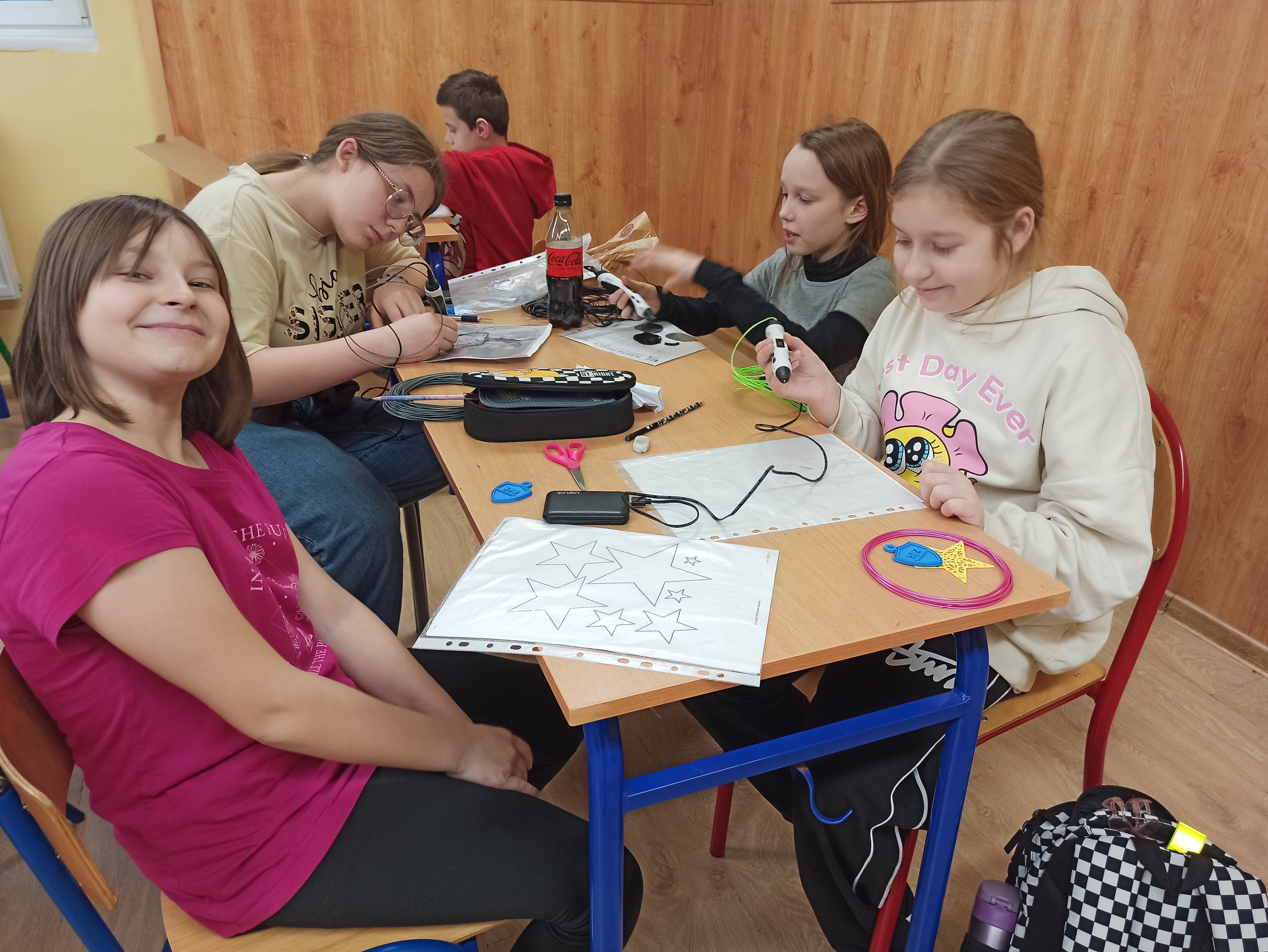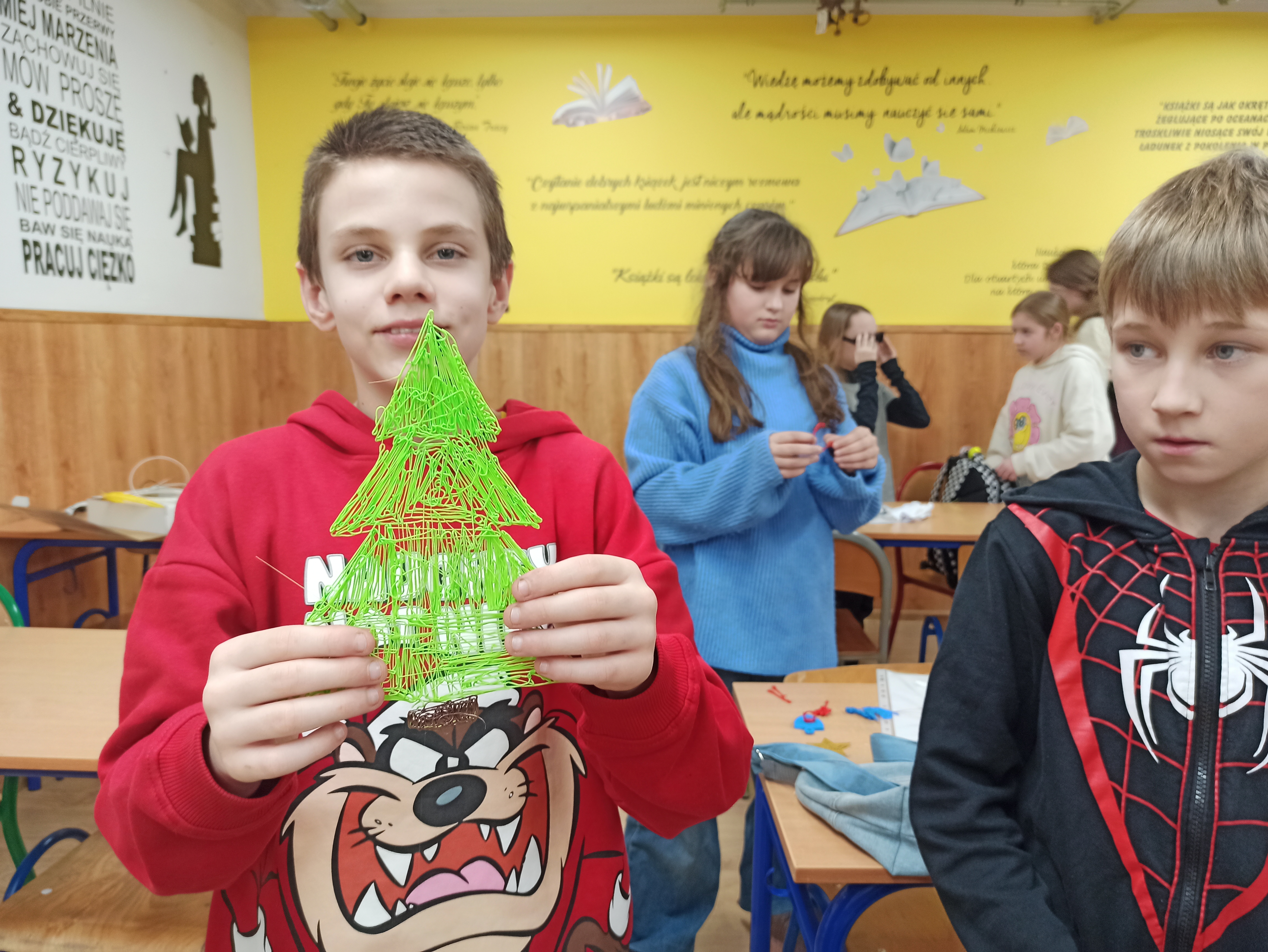 Tym razem tematyką zajęć był druk 3D. Po krótkim szkoleniu BHP, uczniowie zapoznali się z różnymi technikami druku 3d oraz poznali narzędzia i materiały potrzebne do tworzenia trójwymiarowych figur. Najciekawszym punktem zajęć była jednak samodzielna praca, podczas której można było stworzyć oryginalne dekoracje świąteczne, wykorzystując dostępne szablony lub projektując własne. Uczniowie ćwiczyli kreatywność, wyobraźnię przestrzenną i koordynację wzrokowo-ruchową. Przede wszystkim jednak świetnie się bawili w miłej atmosferze.