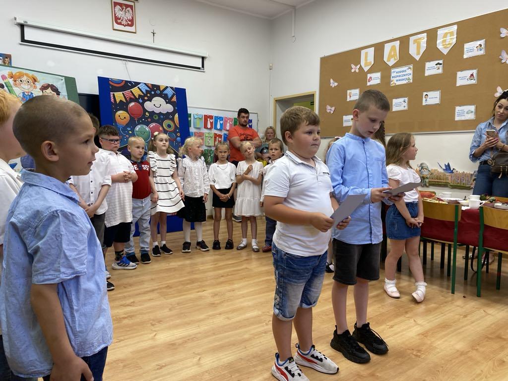 Pożegnanie zerówki to wyjątkowy moment w życiu każdego dziecka. To chwile pełne wzruszeń, dumy i radości. Okres przedszkola to ważny czas, w którym dzieci nabywają wiele nowych umiejętności, budują swoje pierwsze relacje, uczą się pracy zespołowej, stawiają pod skrzydłami swoich pań pierwsze kroki w nauce czytania, pisania, liczenia. Przejście z przedszkola do szkoły to ważny etap w życiu maluchów. Wkrótce po wakacjach dzieci staną się uczniami, rozejdą do różnych klas, czeka ich duży krok w stronę samodzielności. Po raz ostatni dzieci z oddziału przedszkolnego spotkały się na uroczystości pożegnalnej, na której nie zabrakło rymowanych życzeń i wierszyków a także piosenek i tańców, które podsumowały czas spędzony w przedszkolu. Każdy podopieczny otrzymał od wychowawcy dyplomy na zakończenie zerówki oraz pamiątkowe książeczki.Ten ostatni wspólnie spędzony czas dostarczył wielu wzruszeń i z pewnością na długo pozostanie w pamięci maluchów, rodziców i nauczycieli.